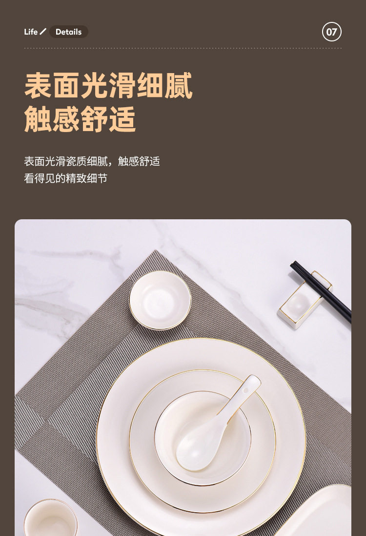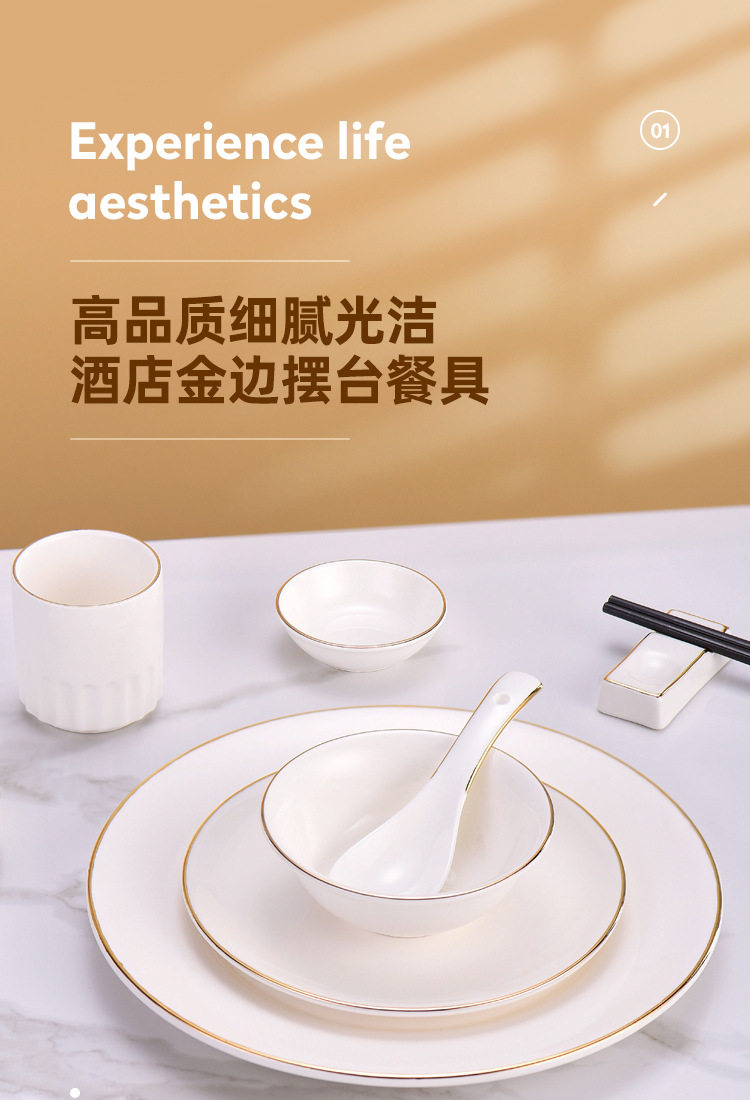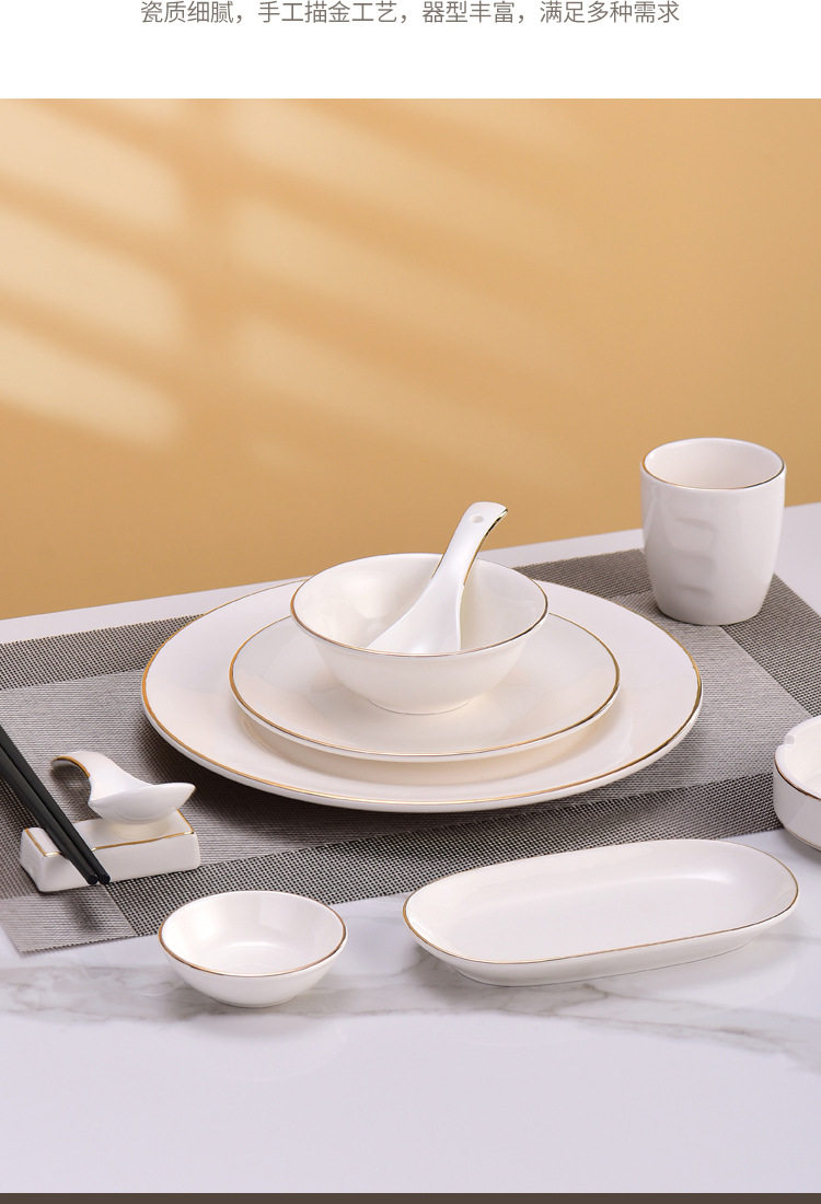 Hotel high-end club golden edge table decoration tableware new Chinese ceramic plate Bowl Bone dish suit three-piece set four-piece set