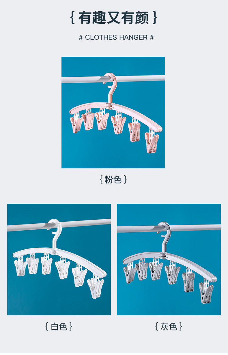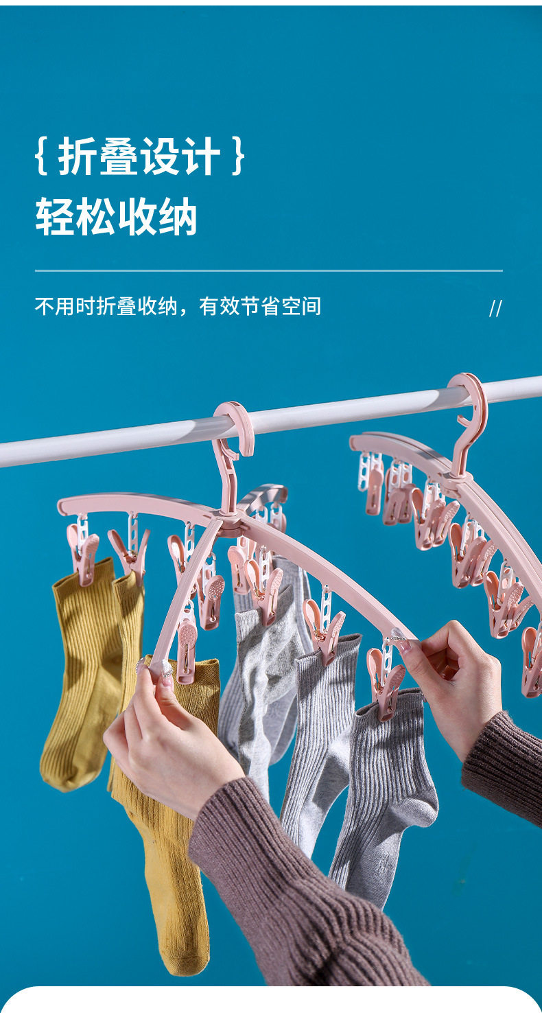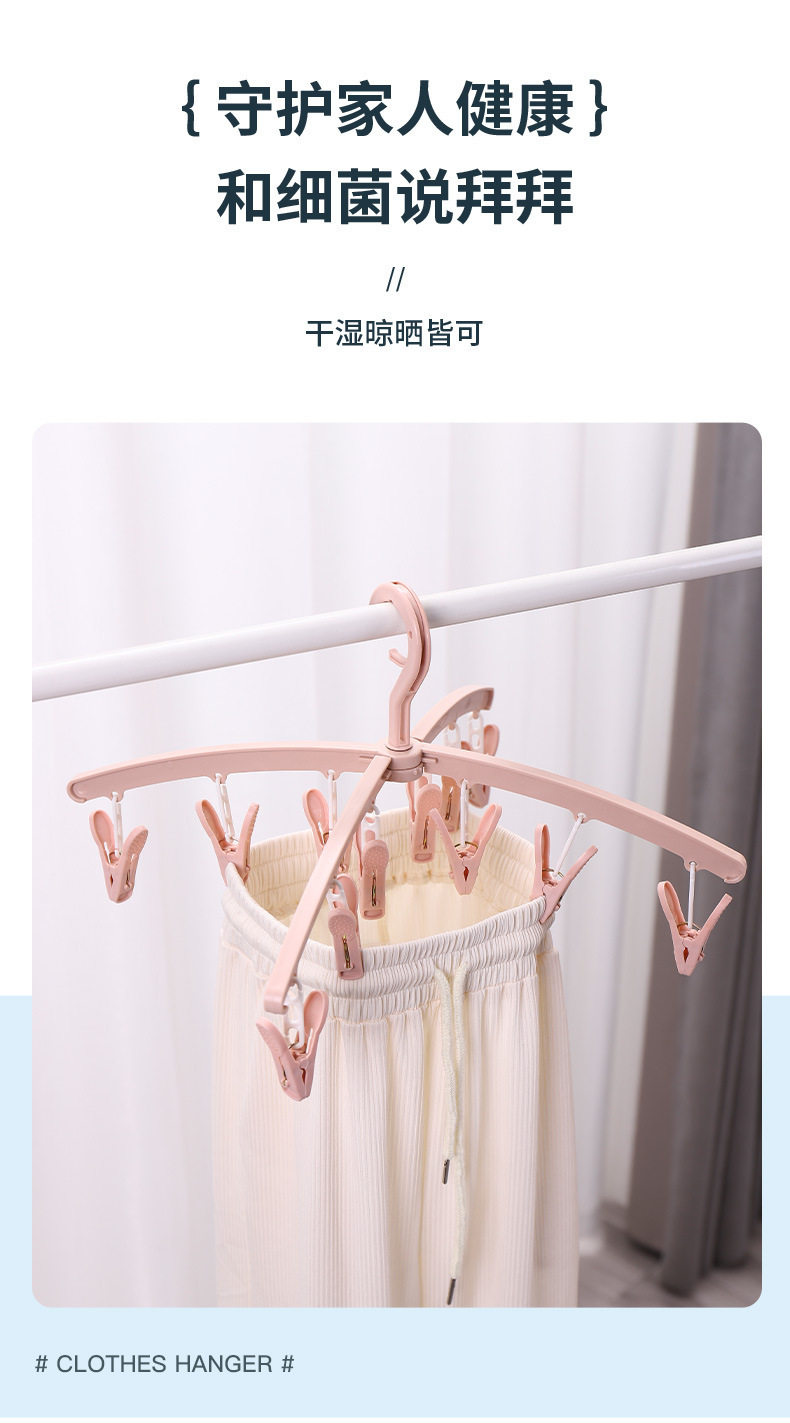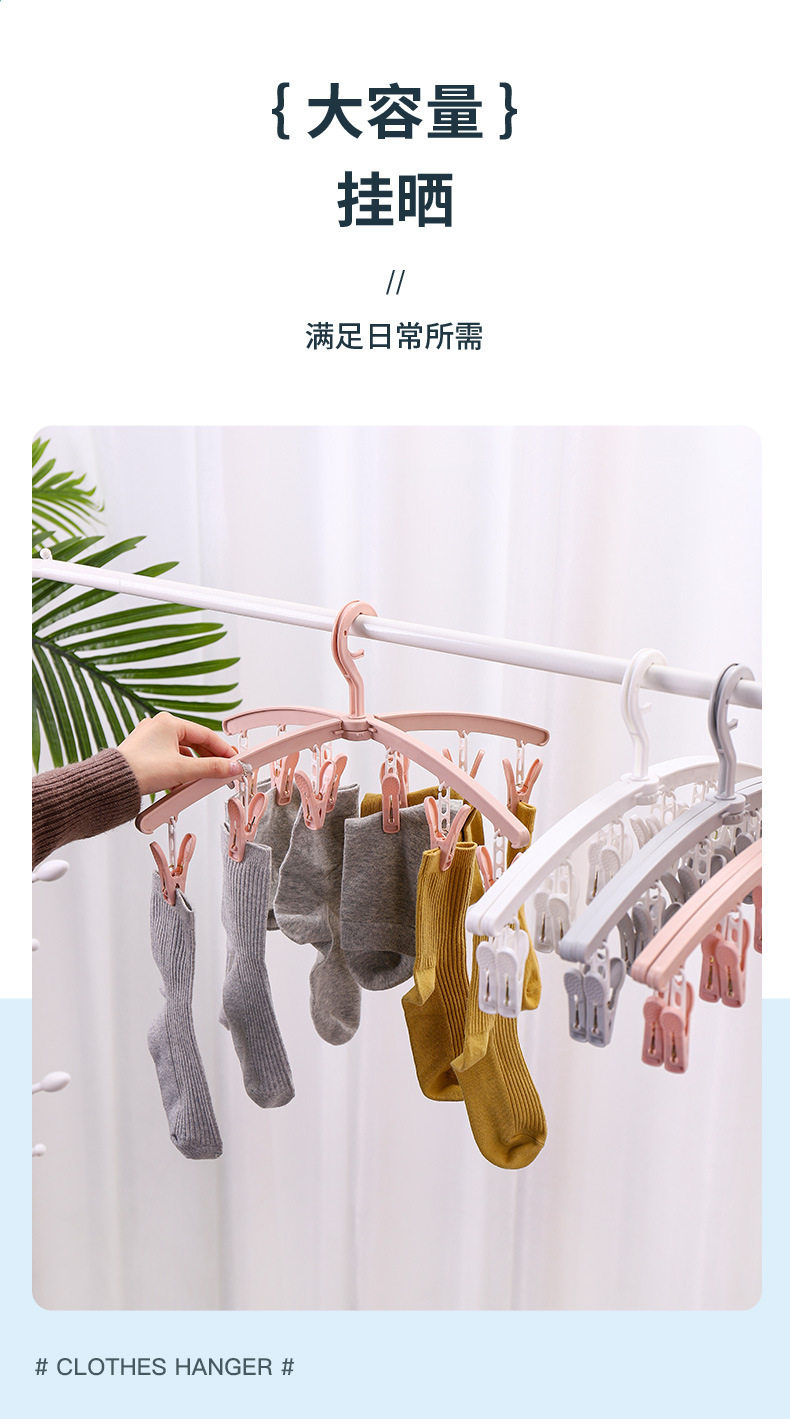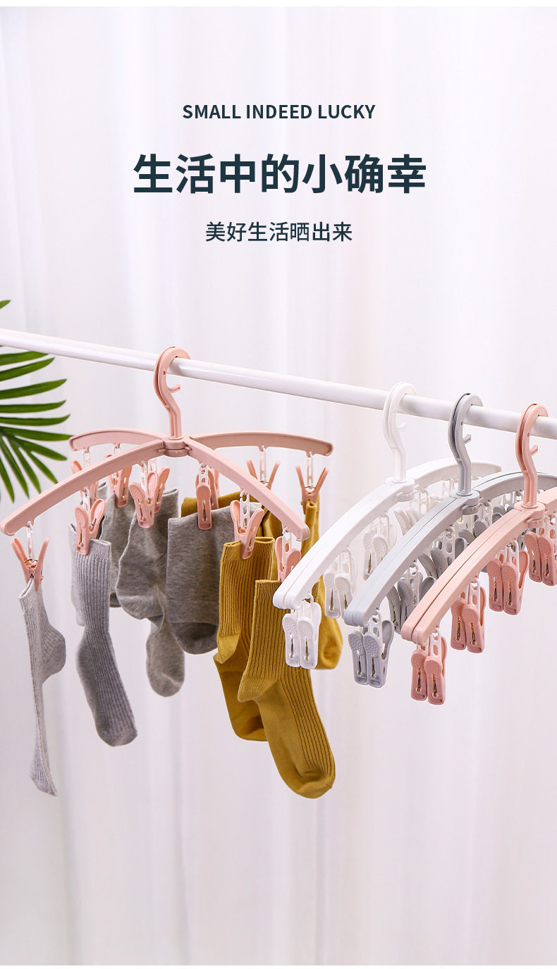 Multifunctional 12-clip Clothes Hanger Student Dormitory Windproof Plastic Thickeneded Intimates Drying Sock Clip Clothes Hanger Household Clothes Drying Rack