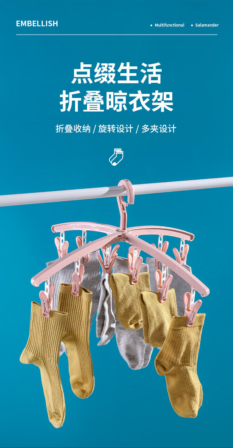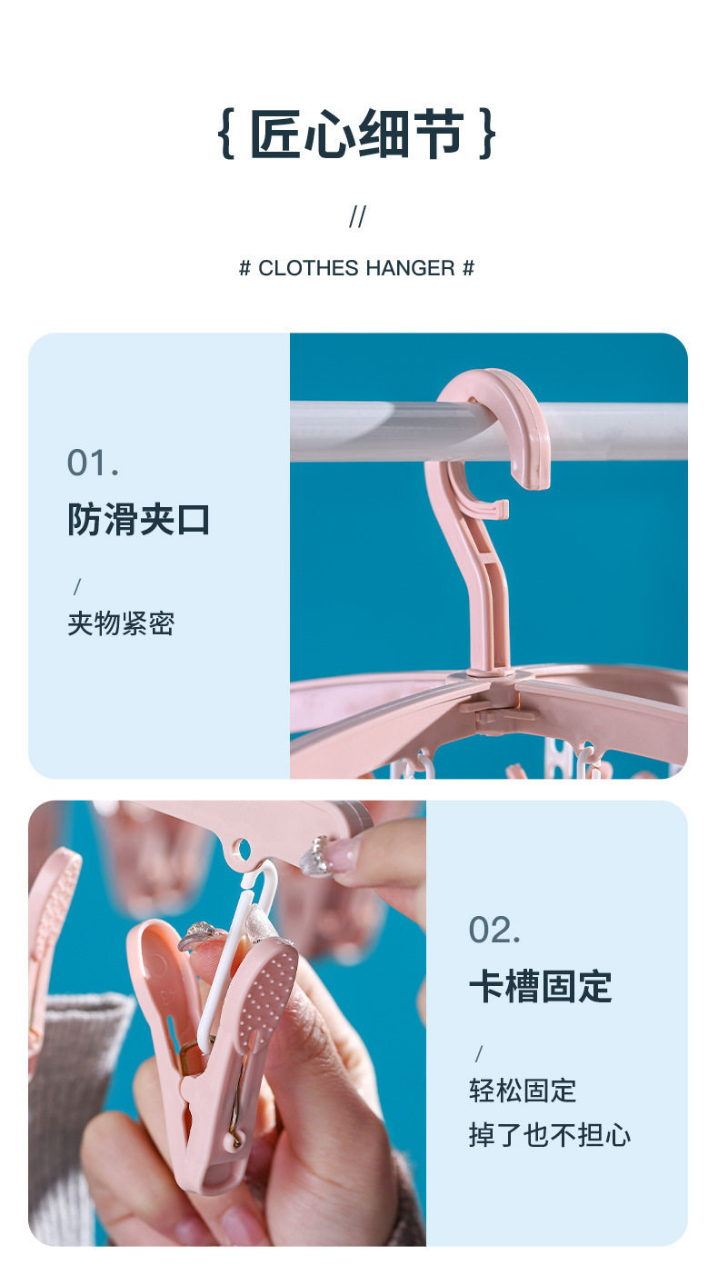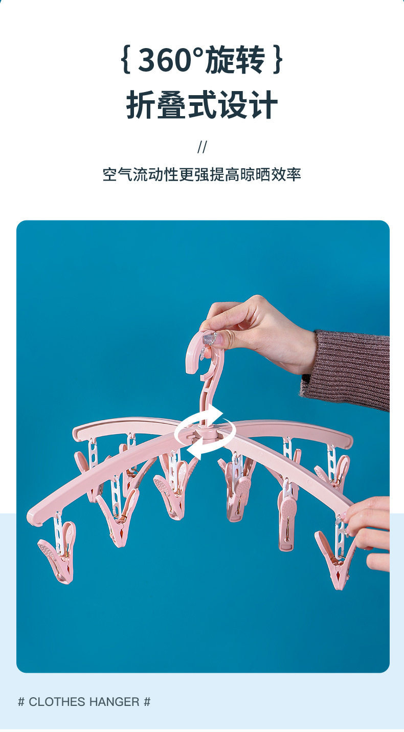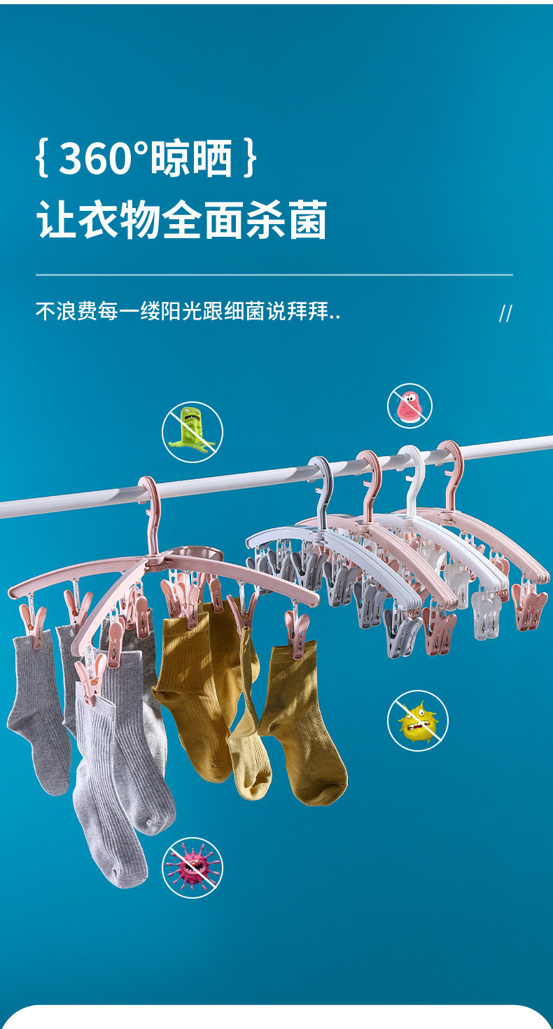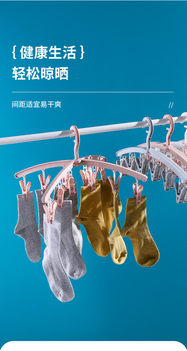 Multifunctional 12-clip Clothes Hanger Student Dormitory Windproof Plastic Thickeneded Intimates Drying Sock Clip Clothes Hanger Household Clothes Drying Rack