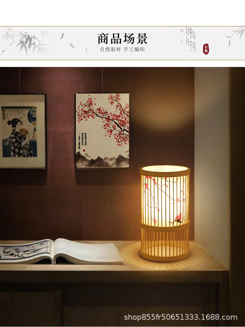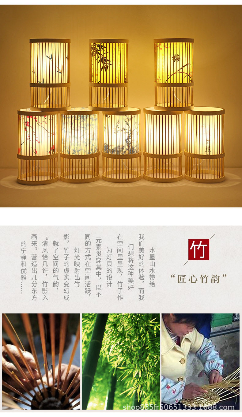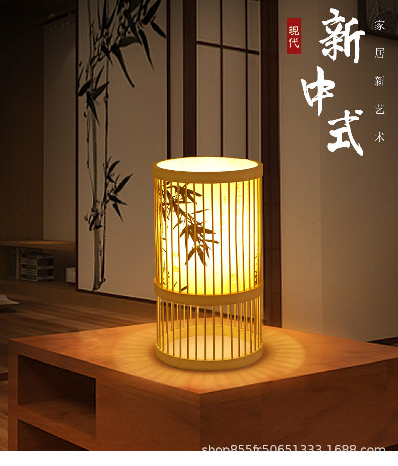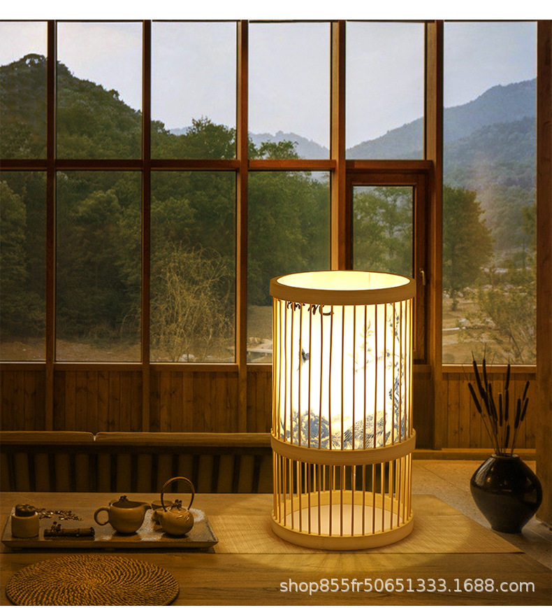 Bamboo Lamp Chinoiserie Tea Room B&B Guest Room Living Room Zen Tea New Chinoiserie Lantern Creative Japanese Bamboo Table Lamp