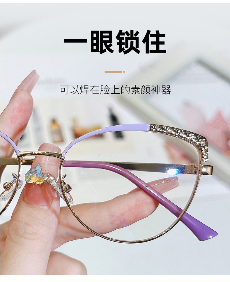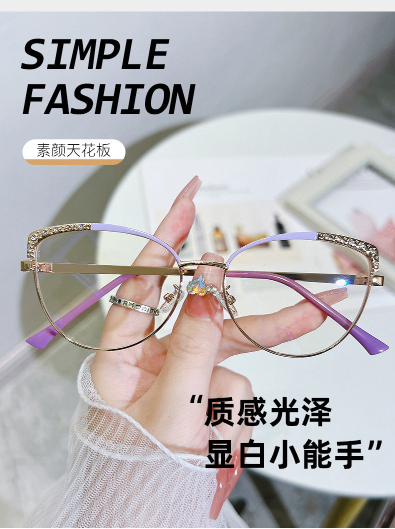 Cross-Border New Fashion Anti-Blue Light Computer Glasses European and American Retro Metal Eyeglass Frames Cat-Eye Optical Flat Glasses Large Frame