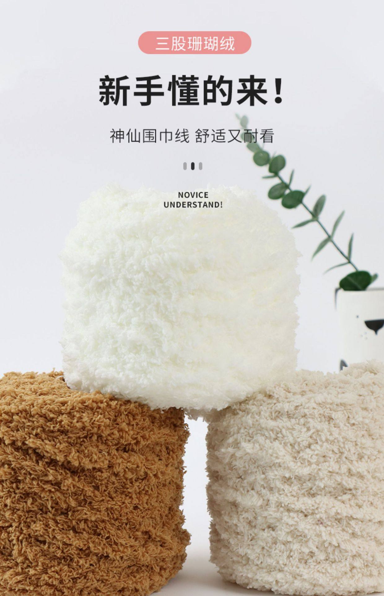 Scarf handmade diy wool coral fleece hand-woven scarf special coarse wool ball velvet ball towel line knitting