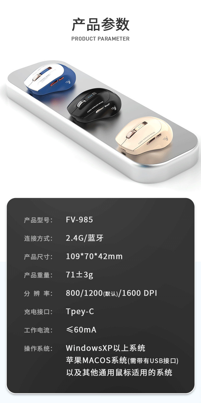 New Bluetooth Dual-mode wireless mouse charging mute computer notebook cross-border office game luminous Wireless Mouse