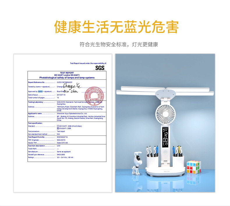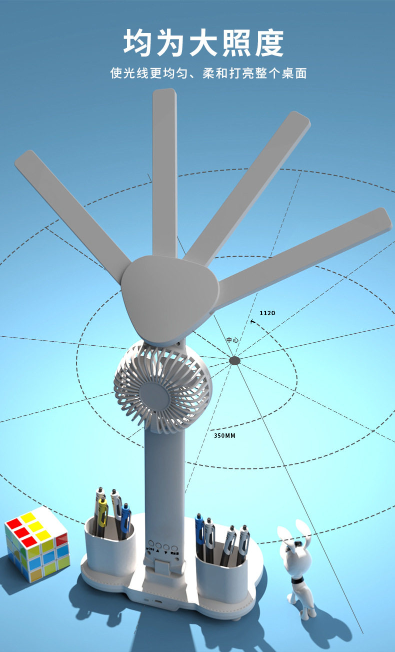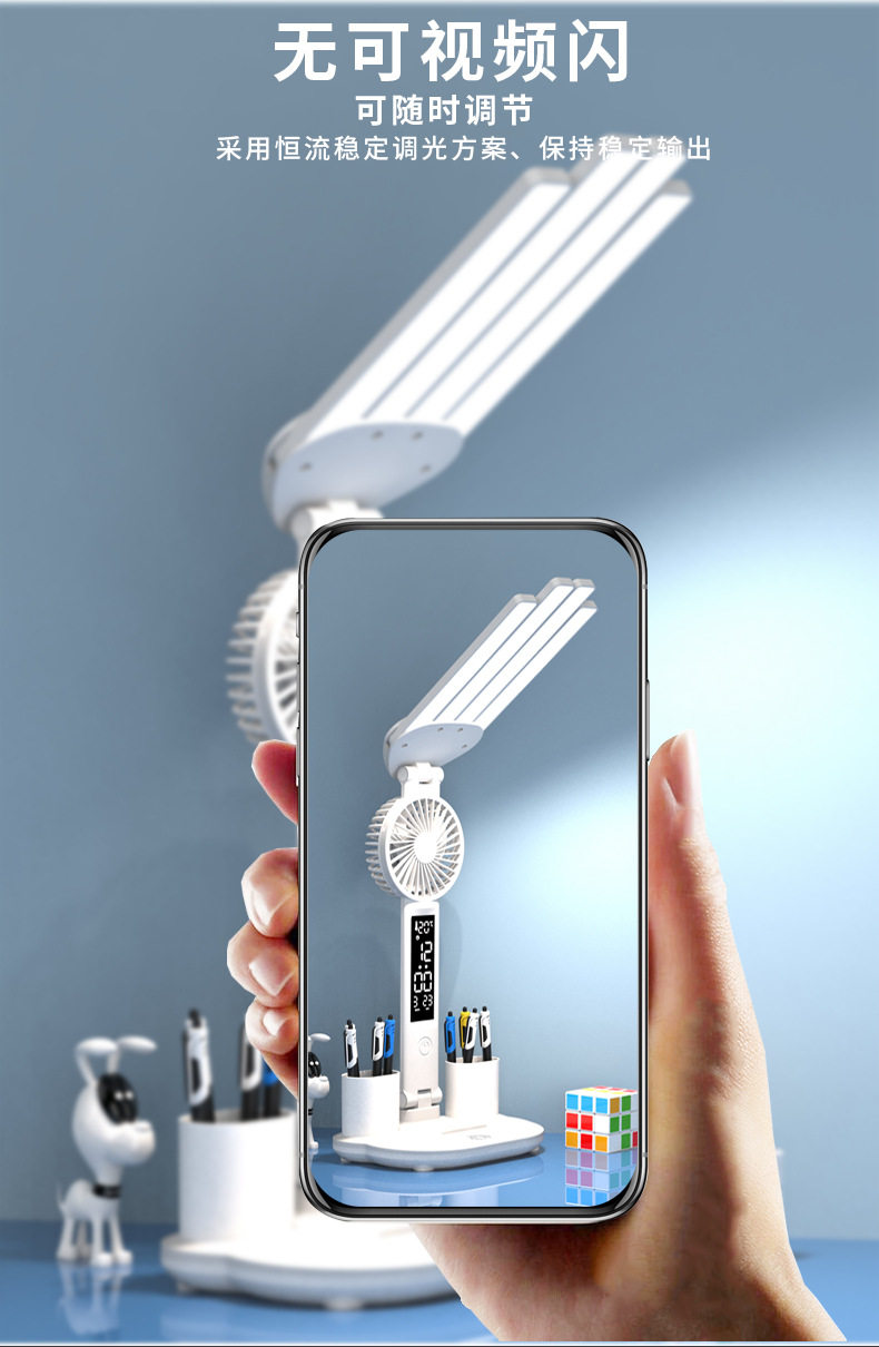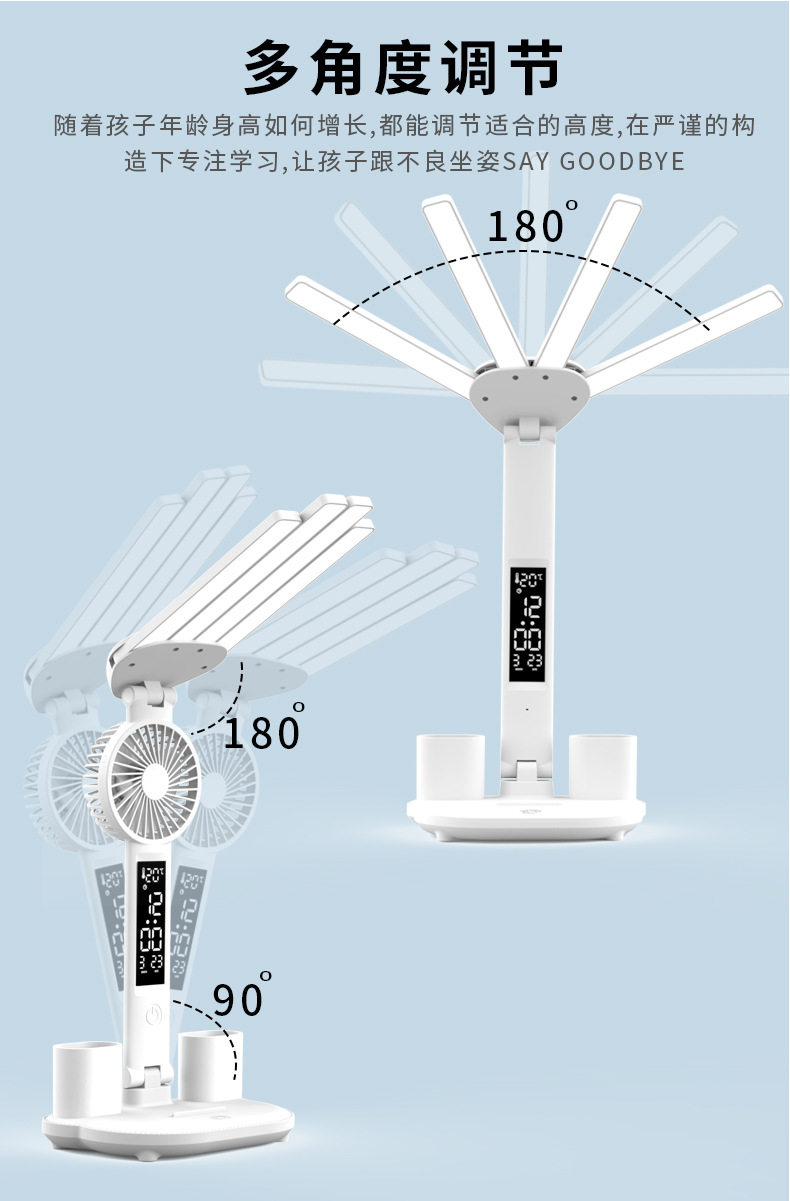 Eye protection desk lamp led folding charging learning 4-head fan student dormitory smart desk lamp desk bedroom reading