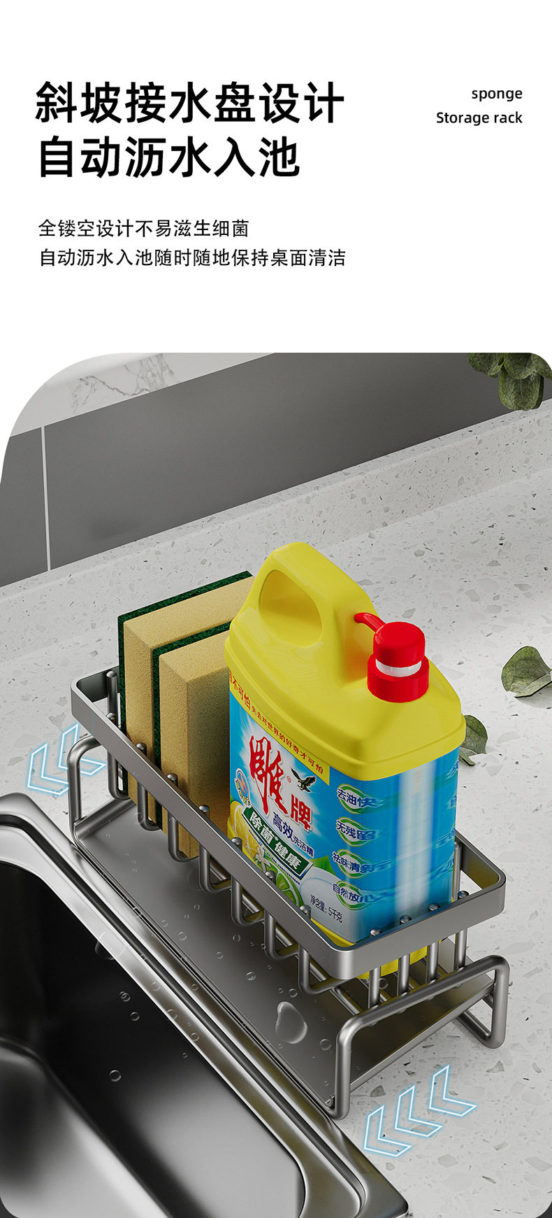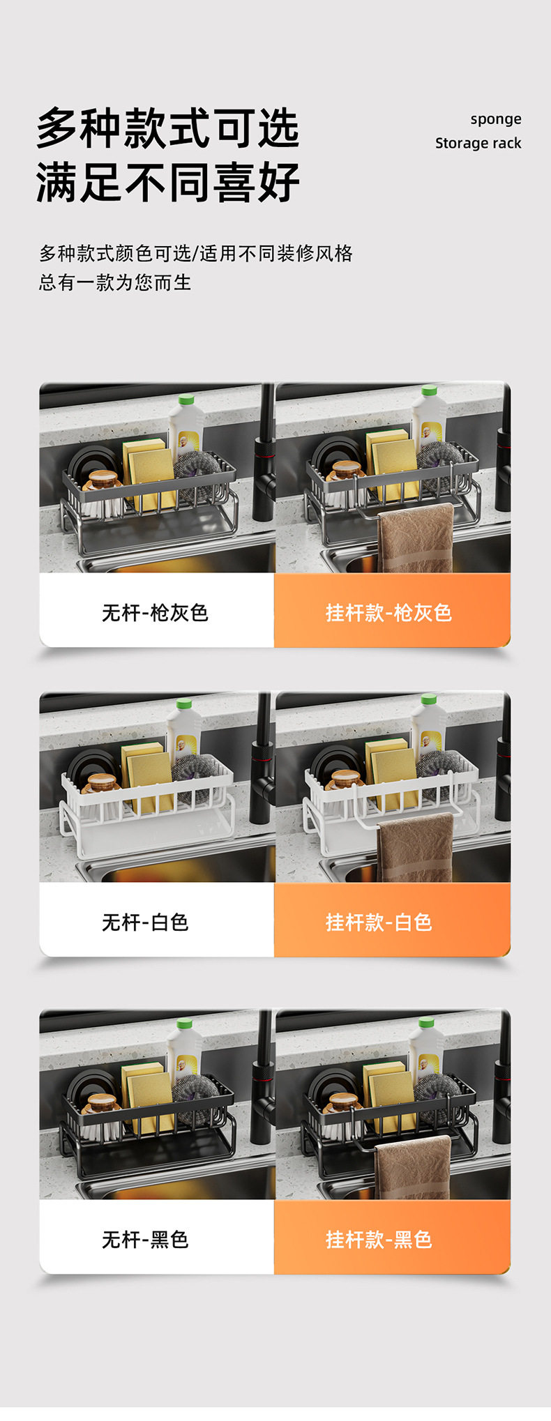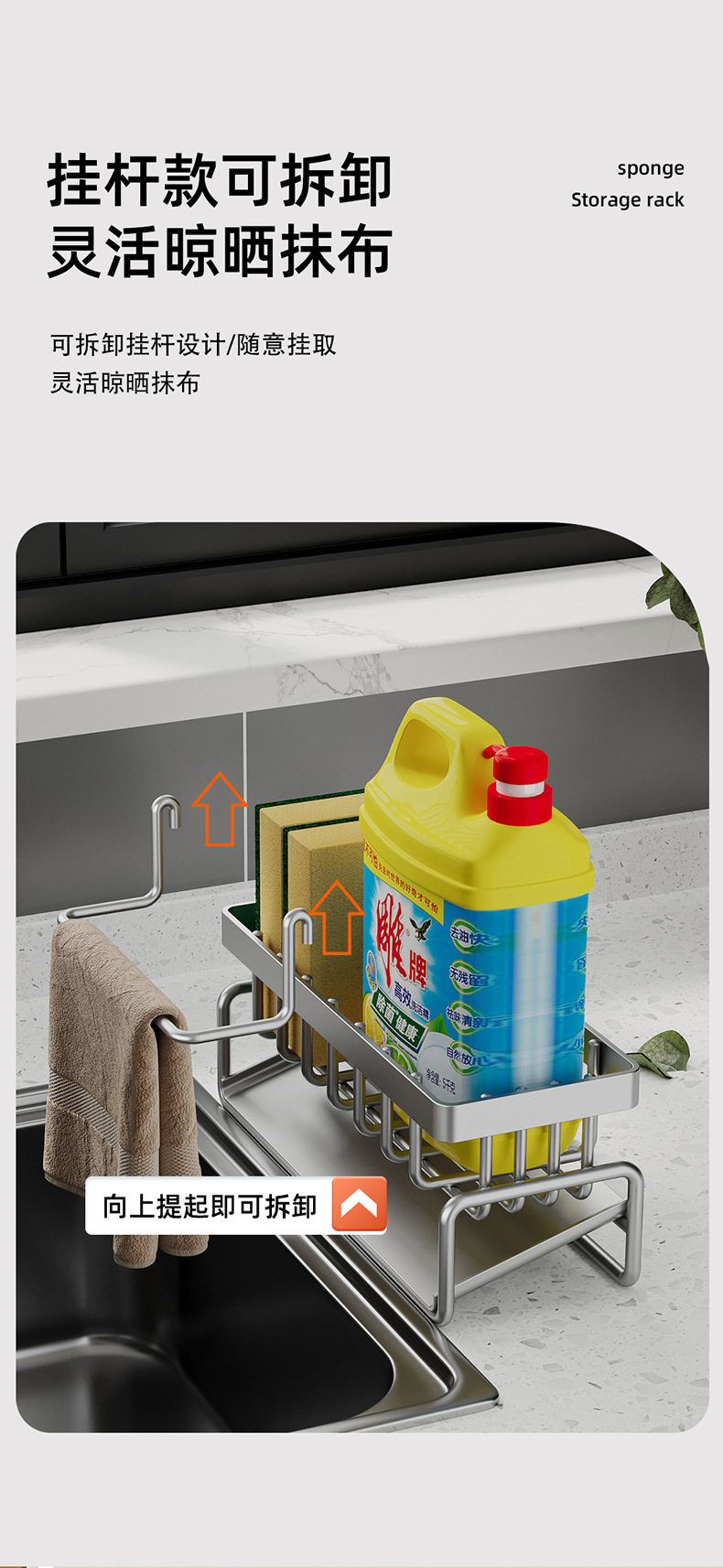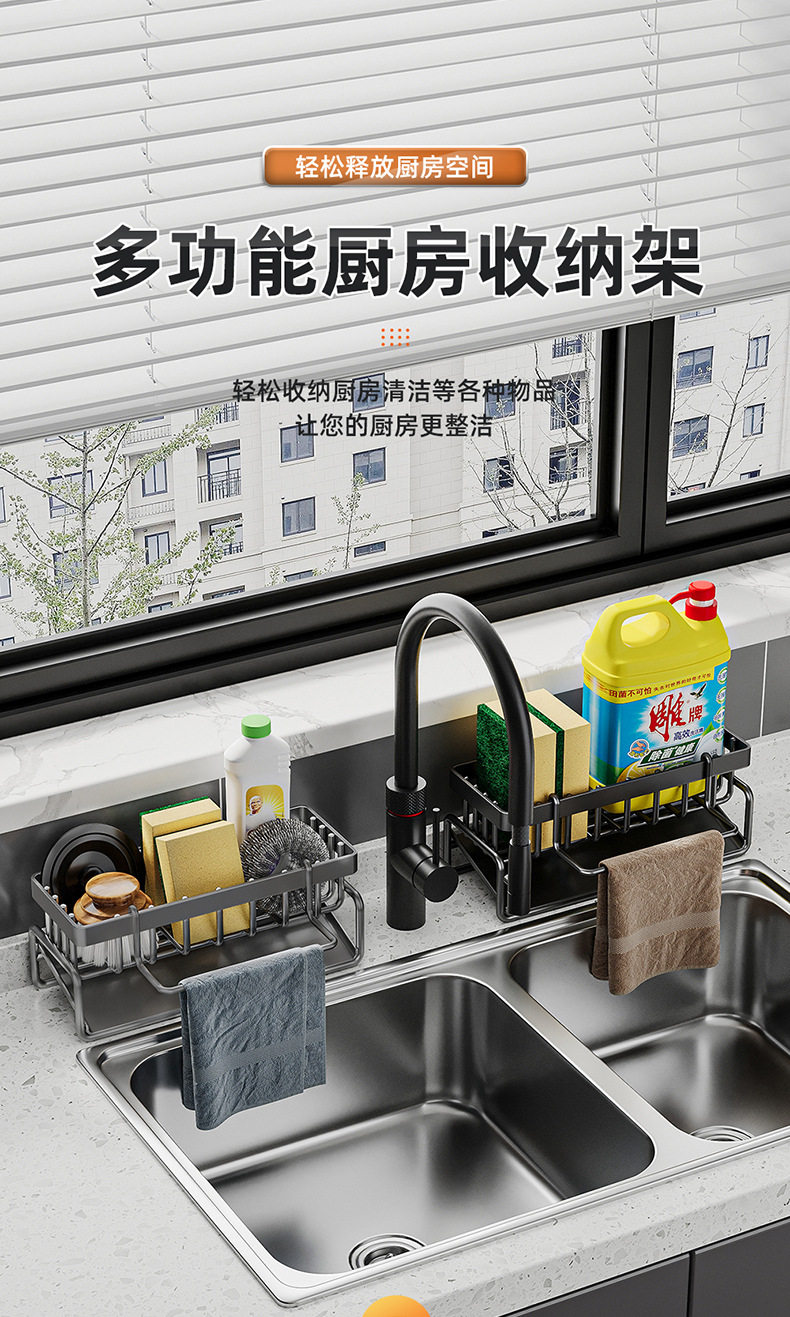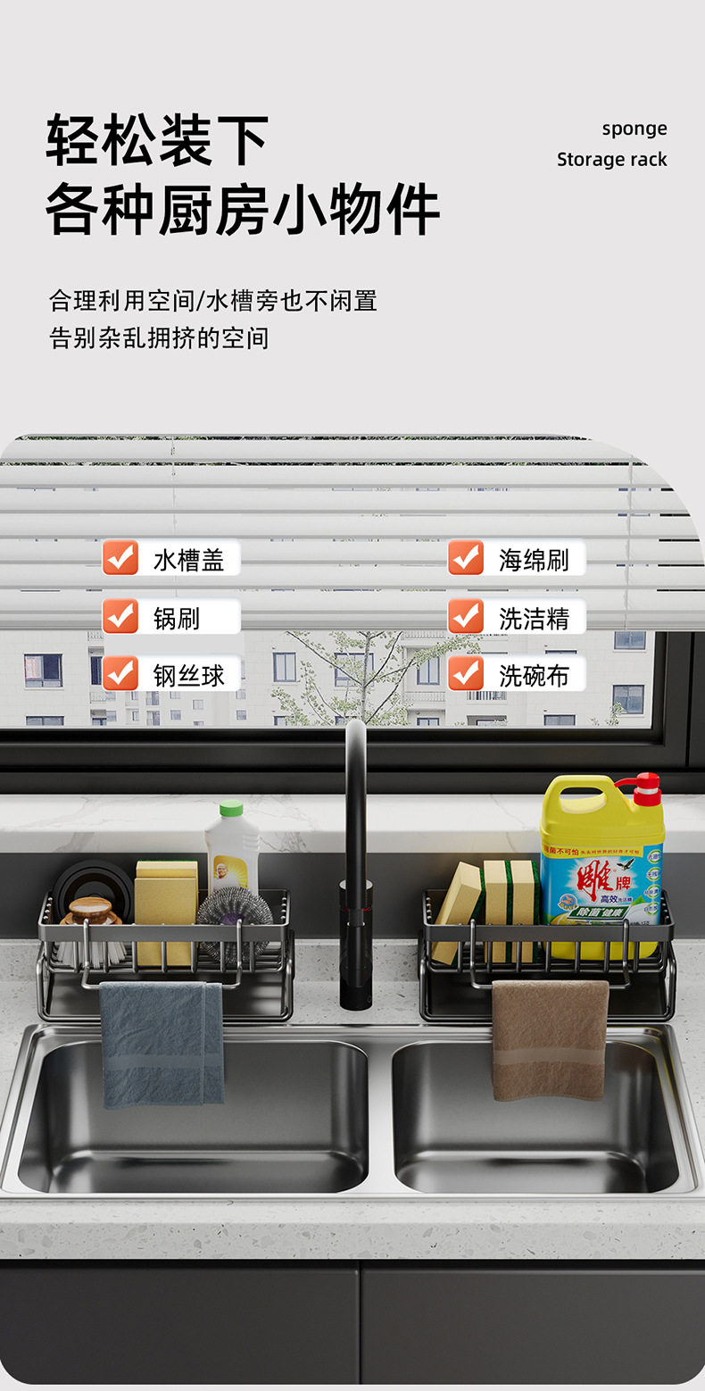Household sink drain basket countertop multi-functional sponge detergent storage rack rag rack kitchen storage rack