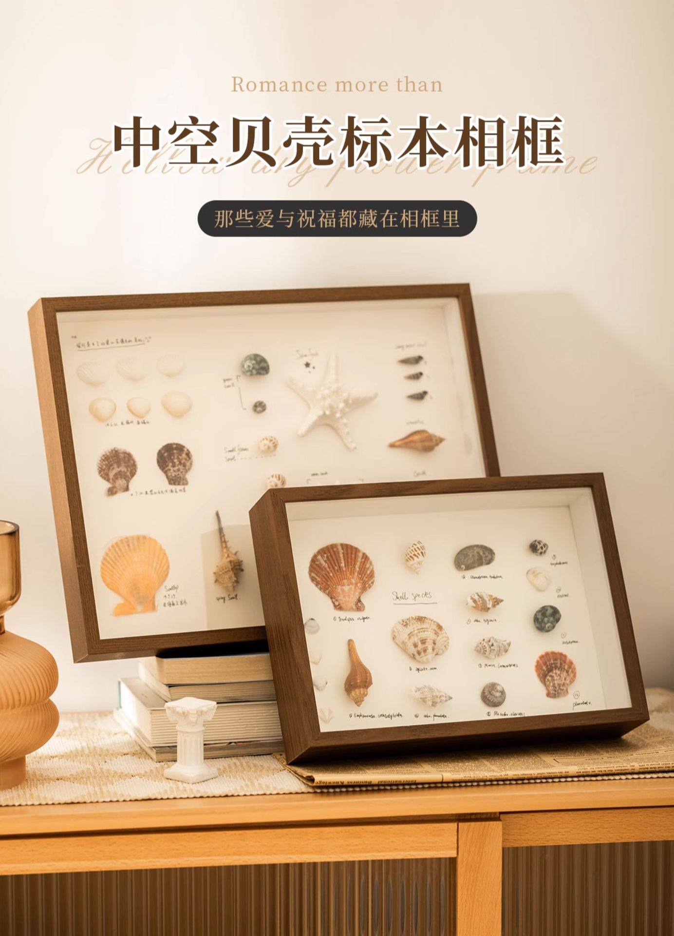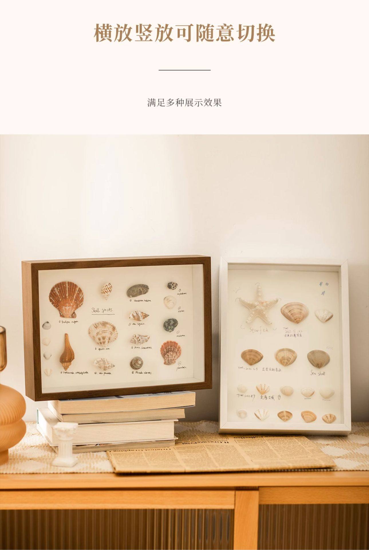 Hollow three-dimensional dried flower photo frame DIY shell conch decorative picture frame manufacturer light painting hollow 5 butterfly specimen frame