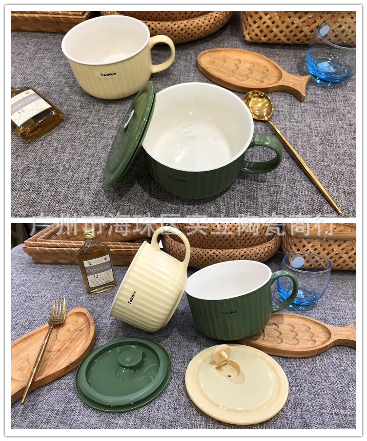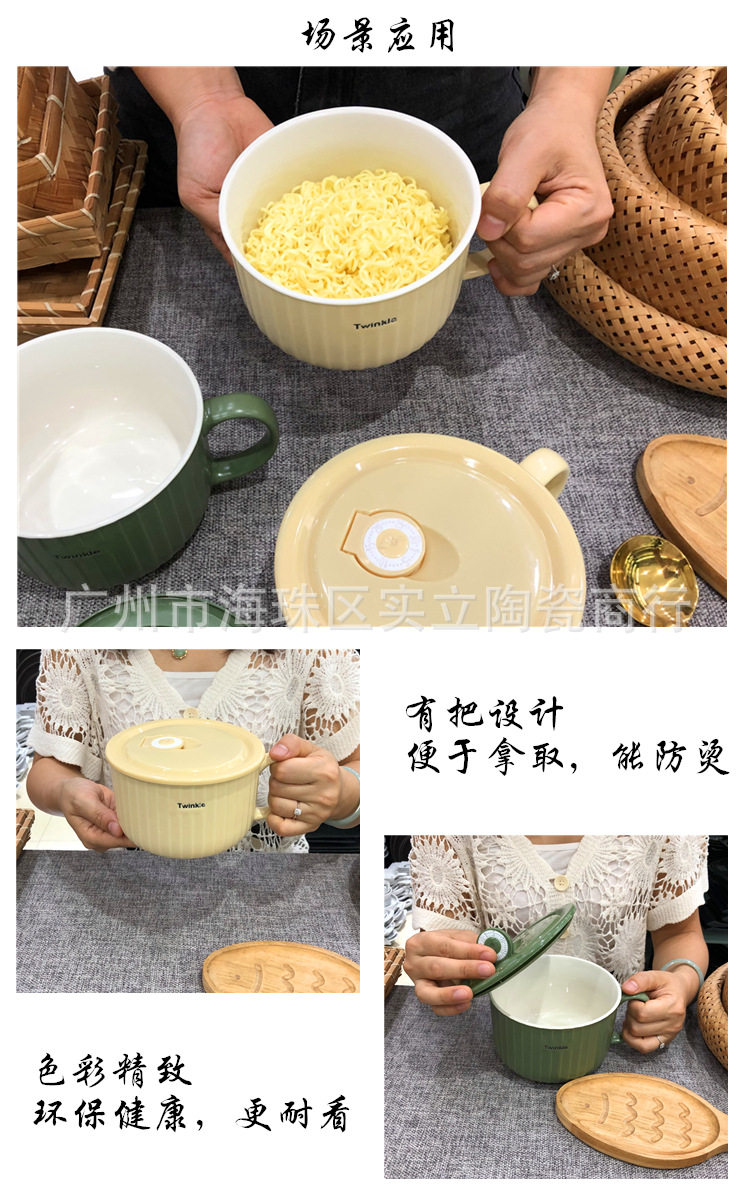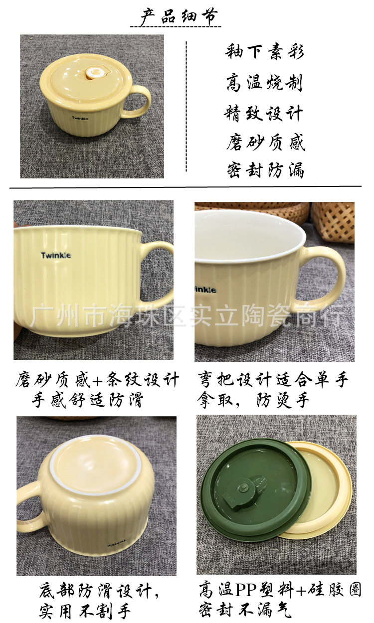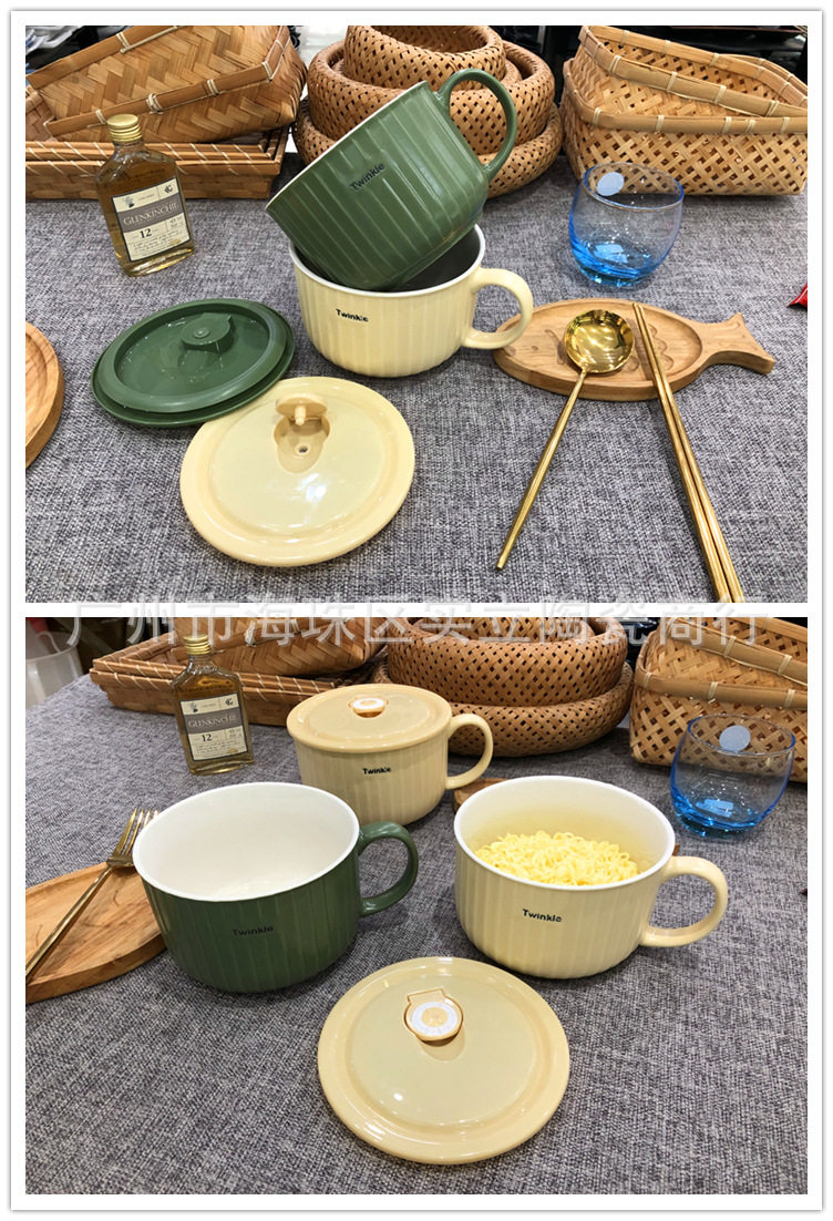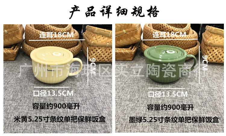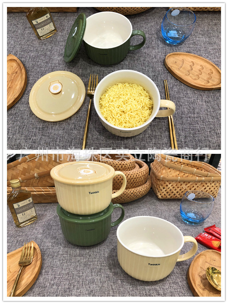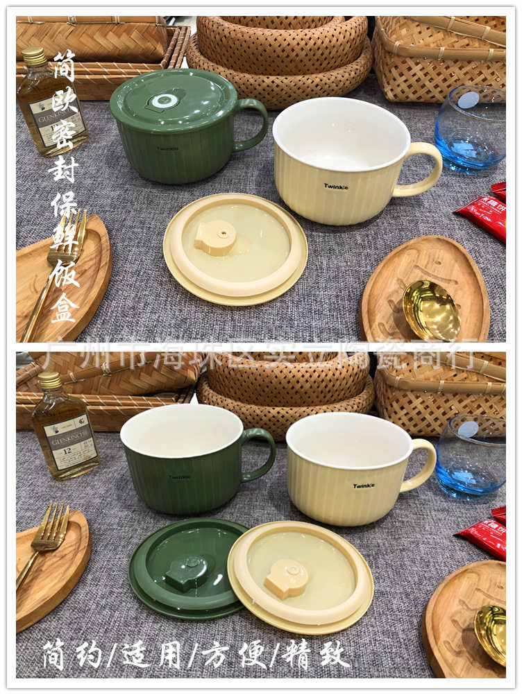 Underglaze color Nordic simple color ceramic sealed fresh-keeping bowl student lunch box fast food bowl instant noodle cup