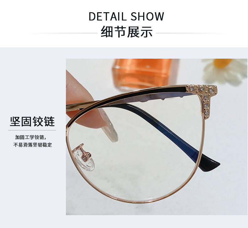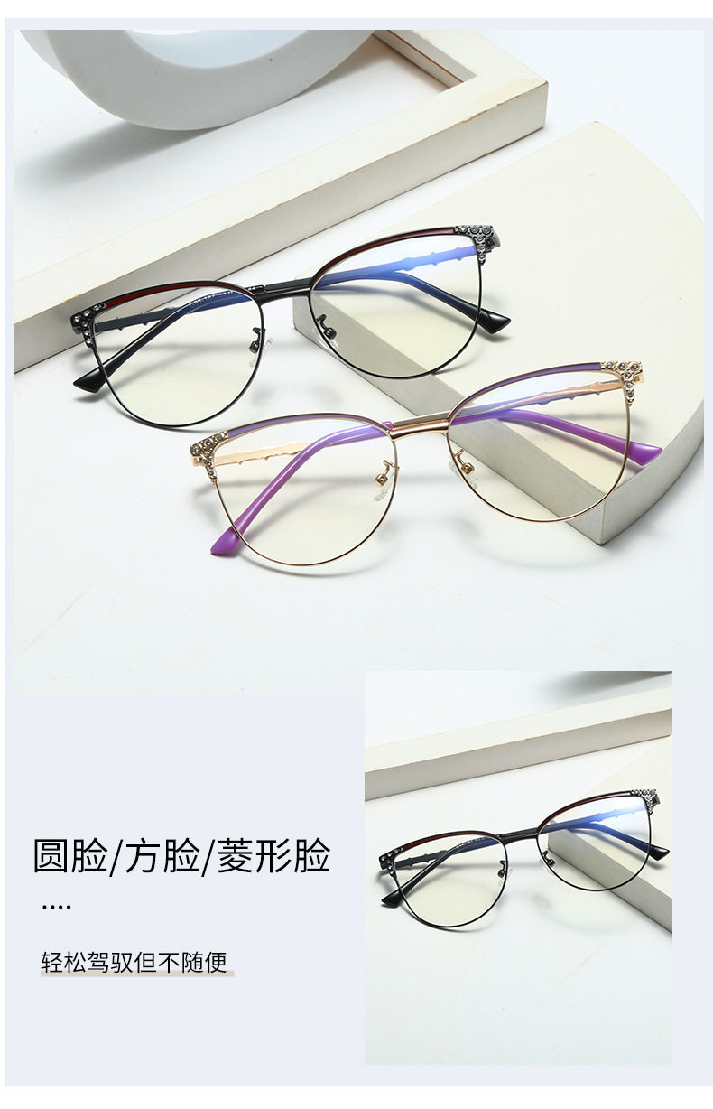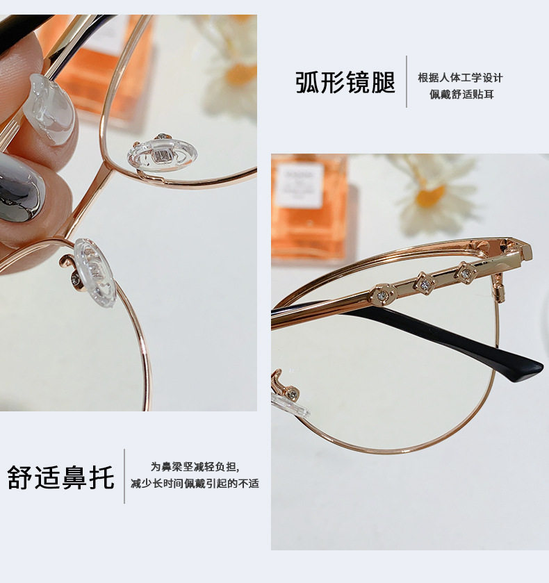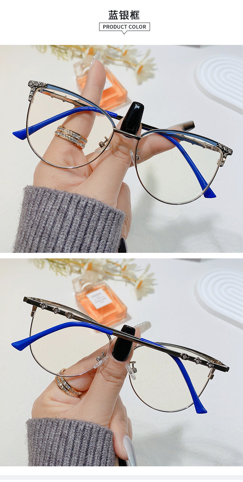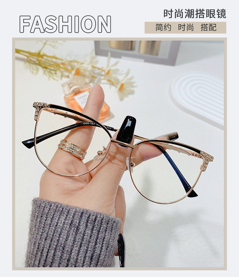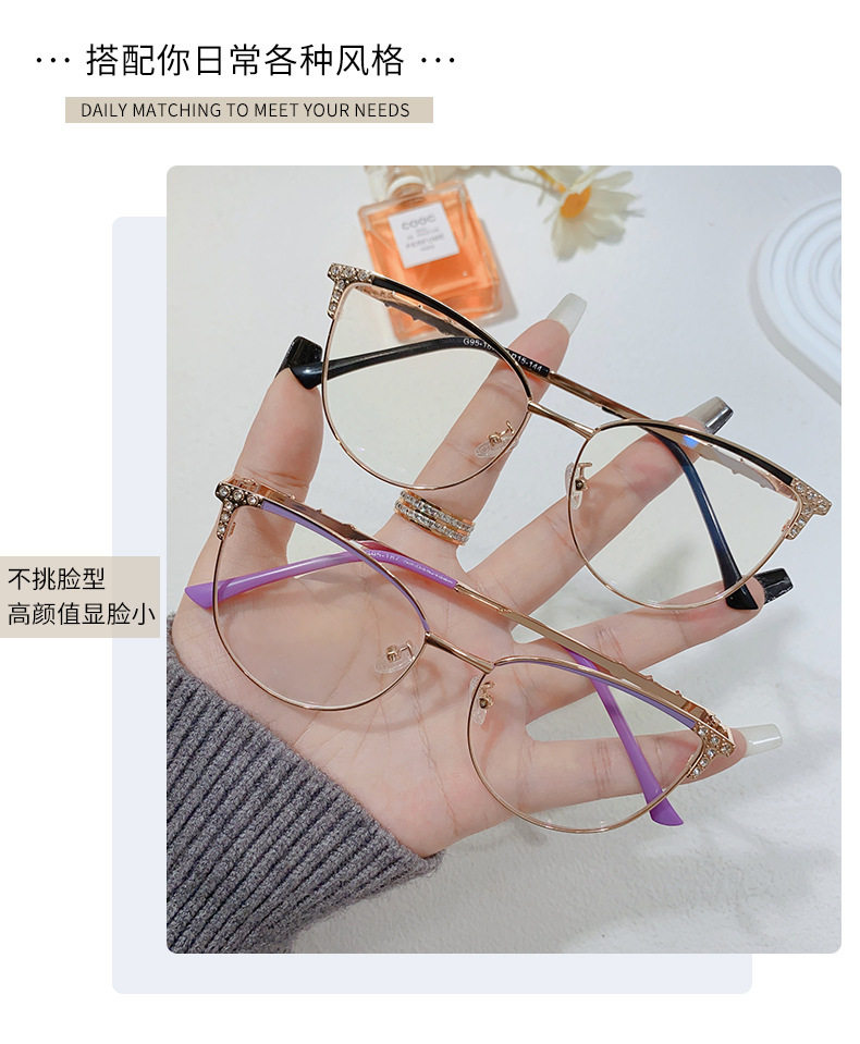 95187 Internet-famous New Diamond Anti-blue Light Cat Glasses Frame Women's European and American Ultra-light Cat-shaped Frame Flat Light Matching Glasses