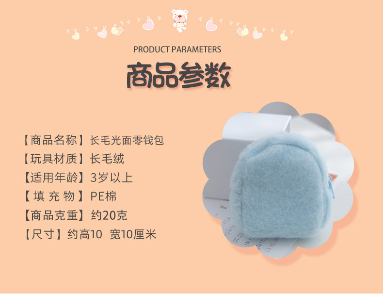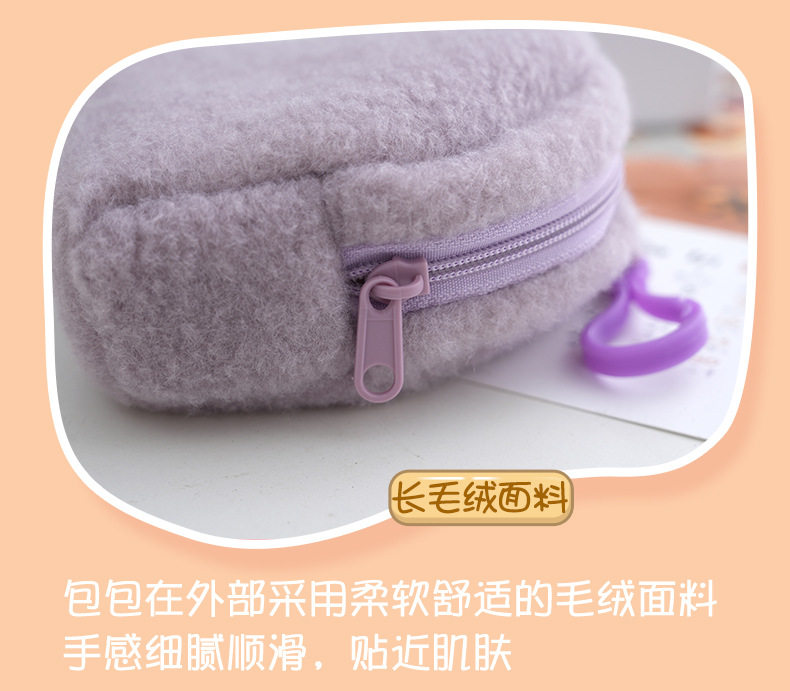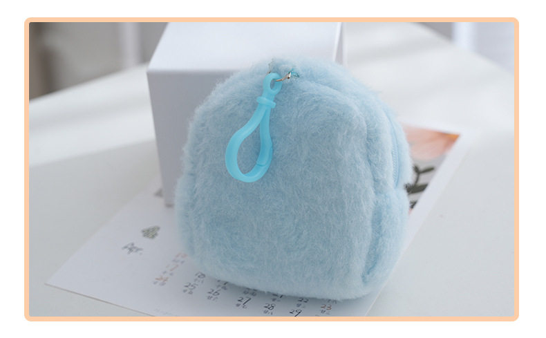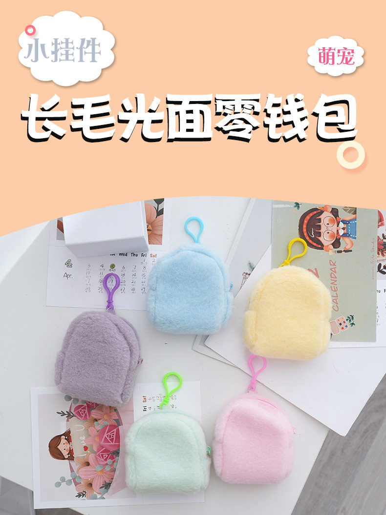Glossy Coin Purse, Solid Color Long-Haired Key Storage Bag, Fresh Macaron Color Zippered Long-Haired Plush Coin Purse
