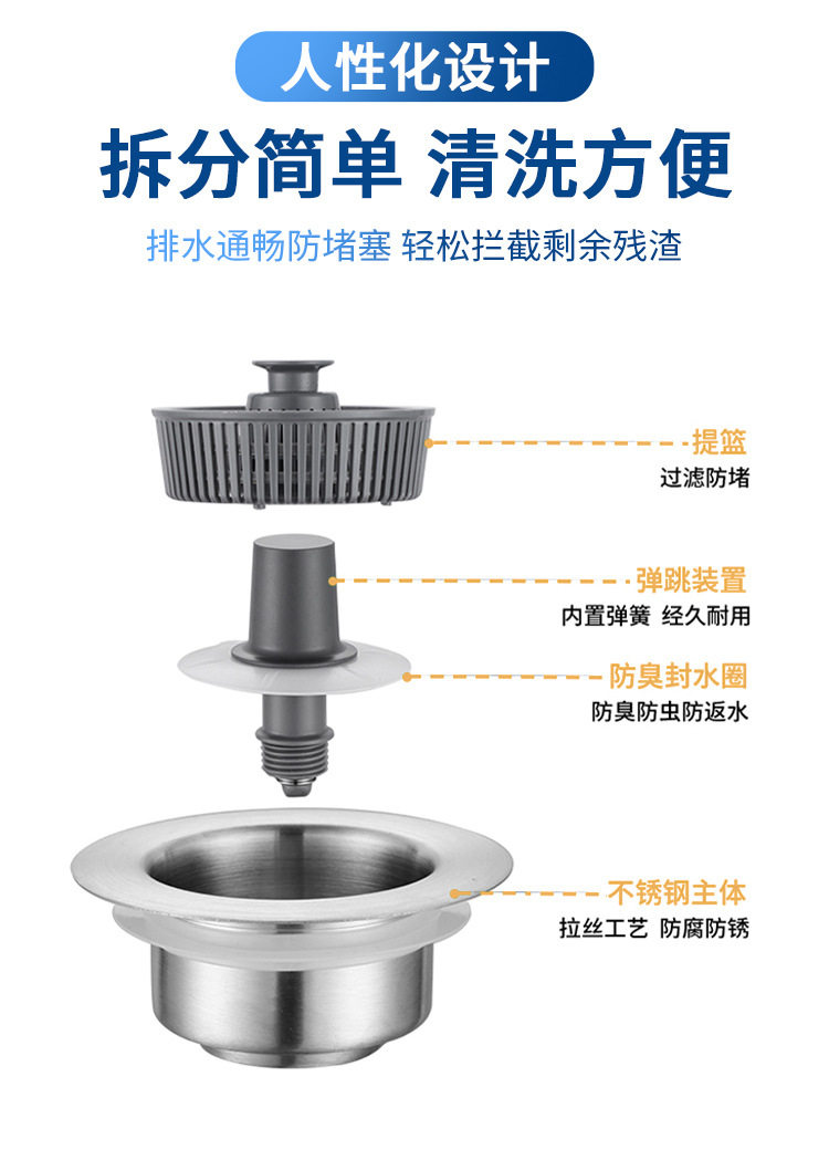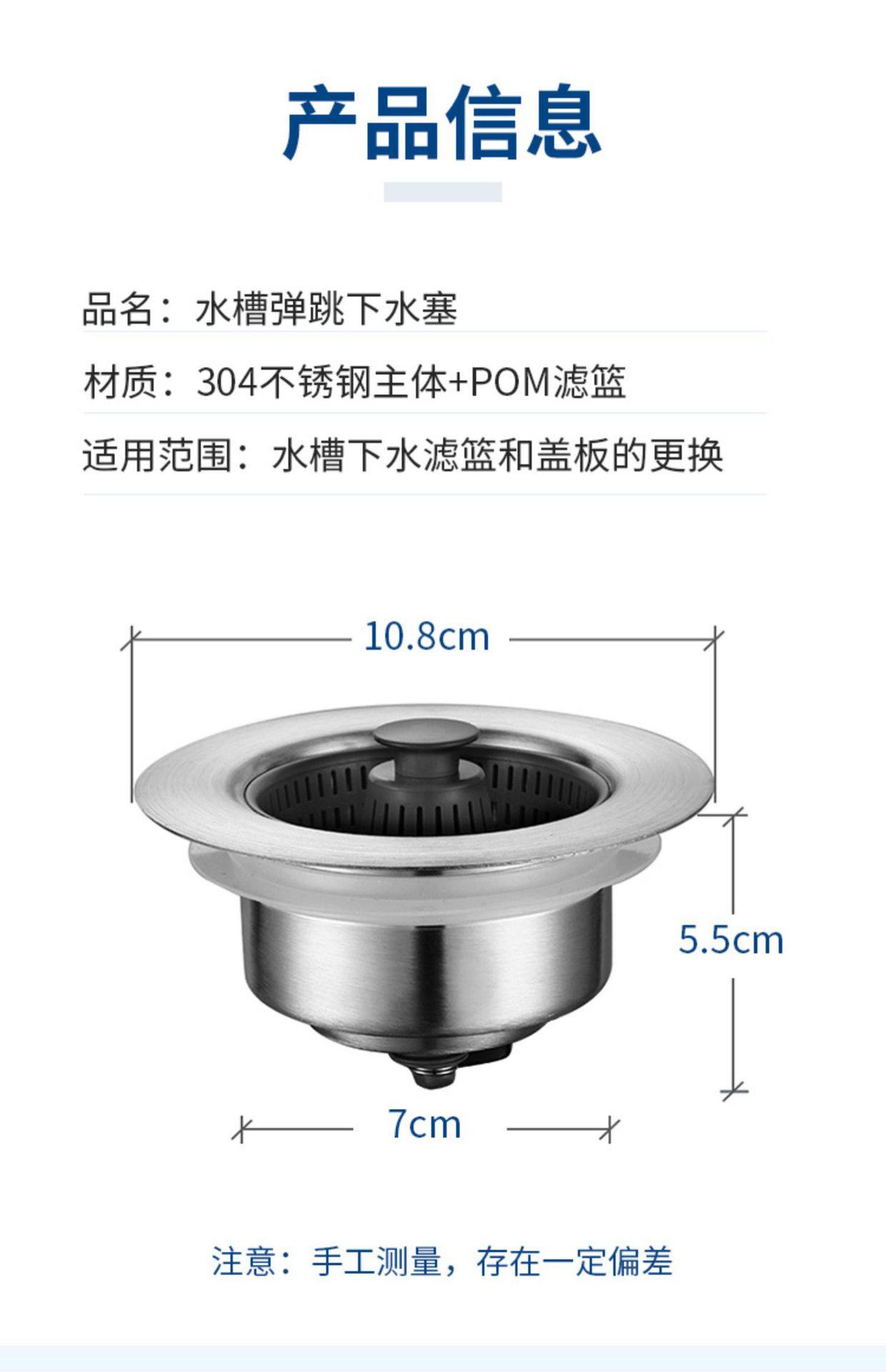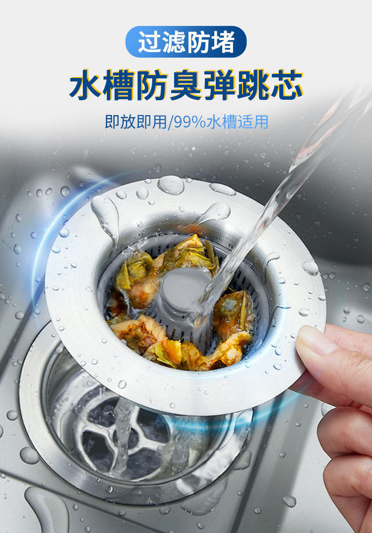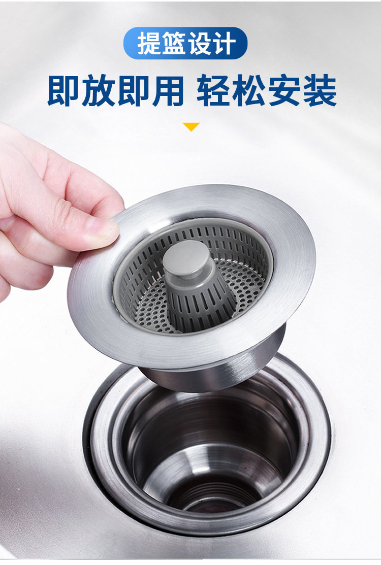 Stainless Steel Kitchen Sink Pop-Up Core Drain Sink Filter Basket Washbasin Water Blocking Cover Leaking Plug