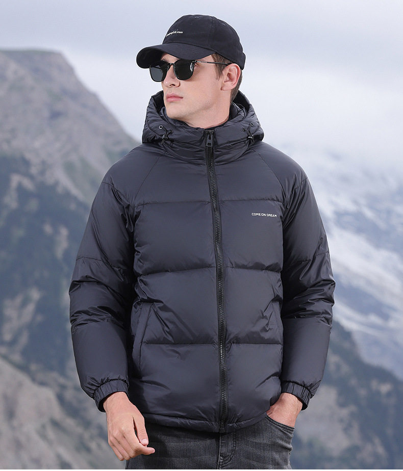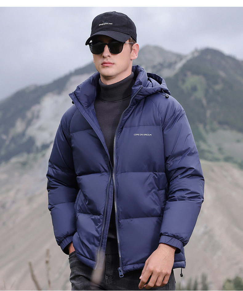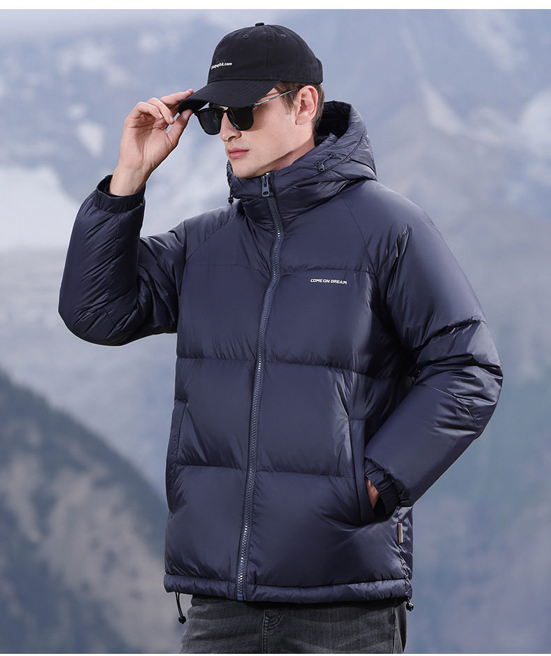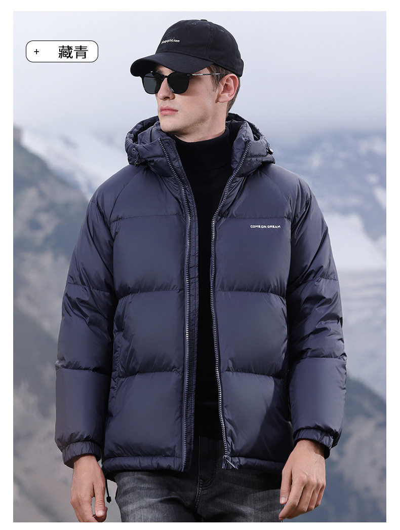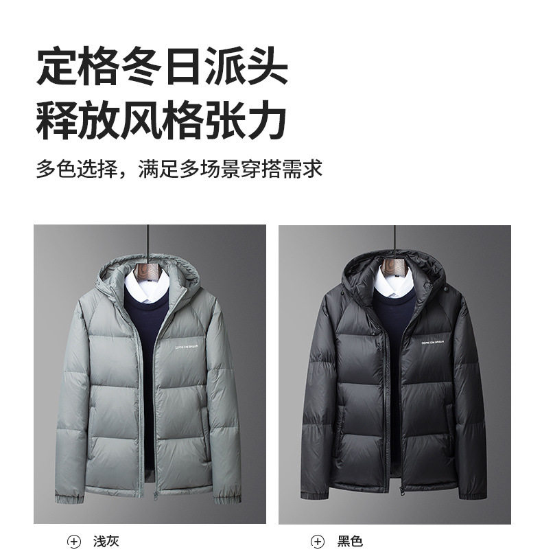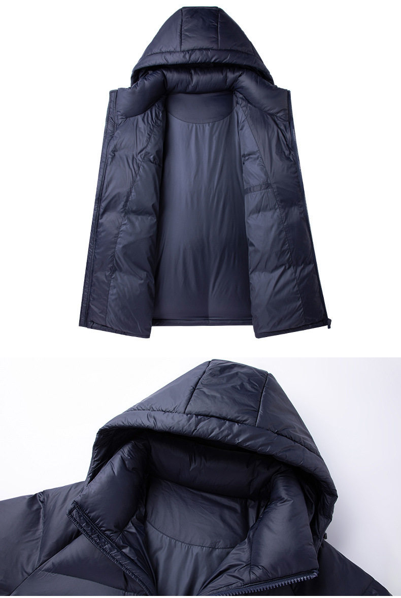Men's Winter down Jacket with Hood, Thickened and Warm, 90% White Duck Down, Trendy Brand, Winter-Proof Casual Men's Coat