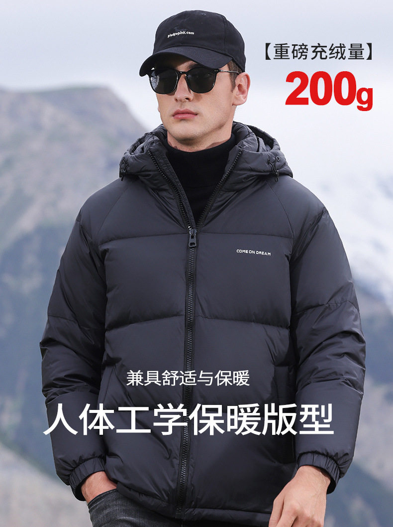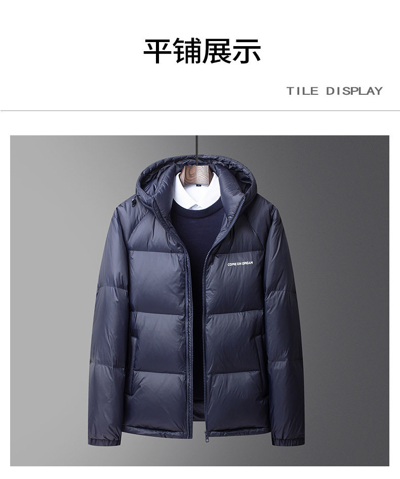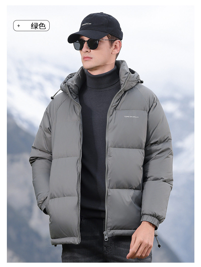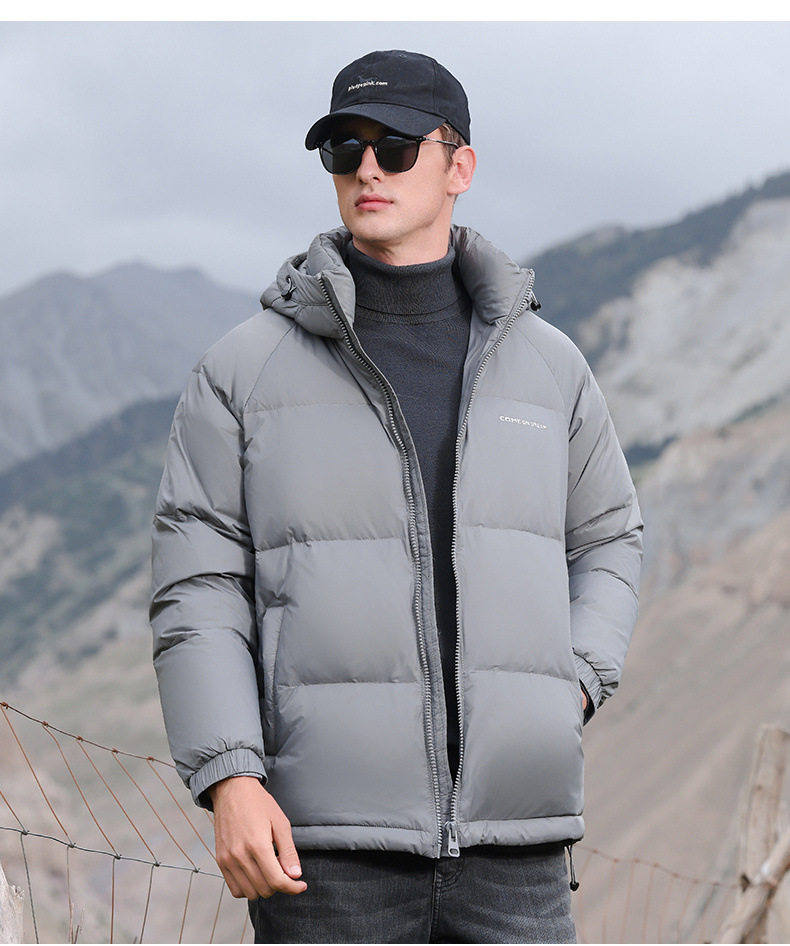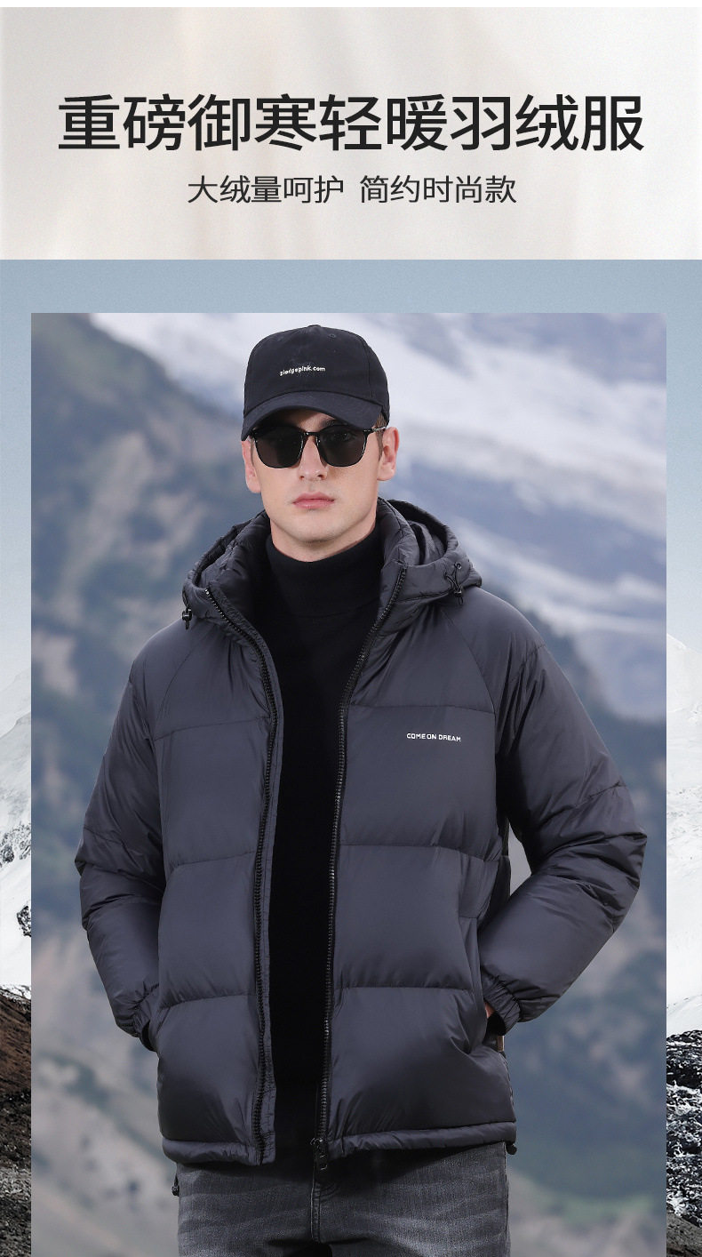 Men's Winter down Jacket with Hood, Thickened and Warm, 90% White Duck Down, Trendy Brand, Winter-Proof Casual Men's Coat