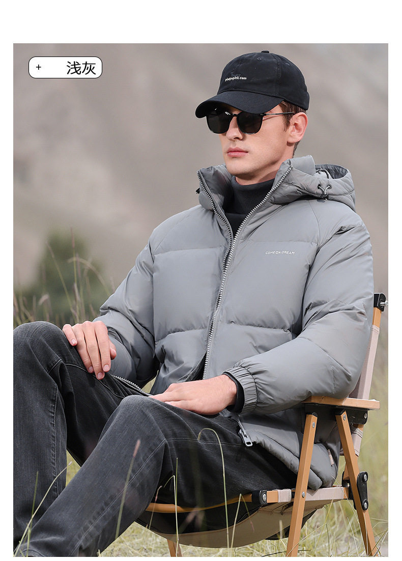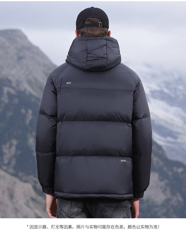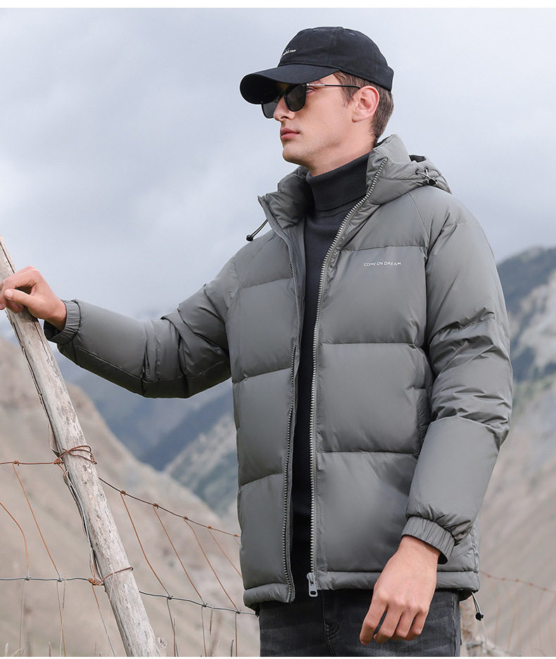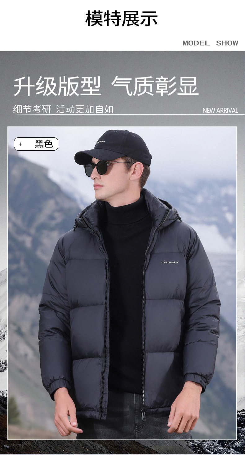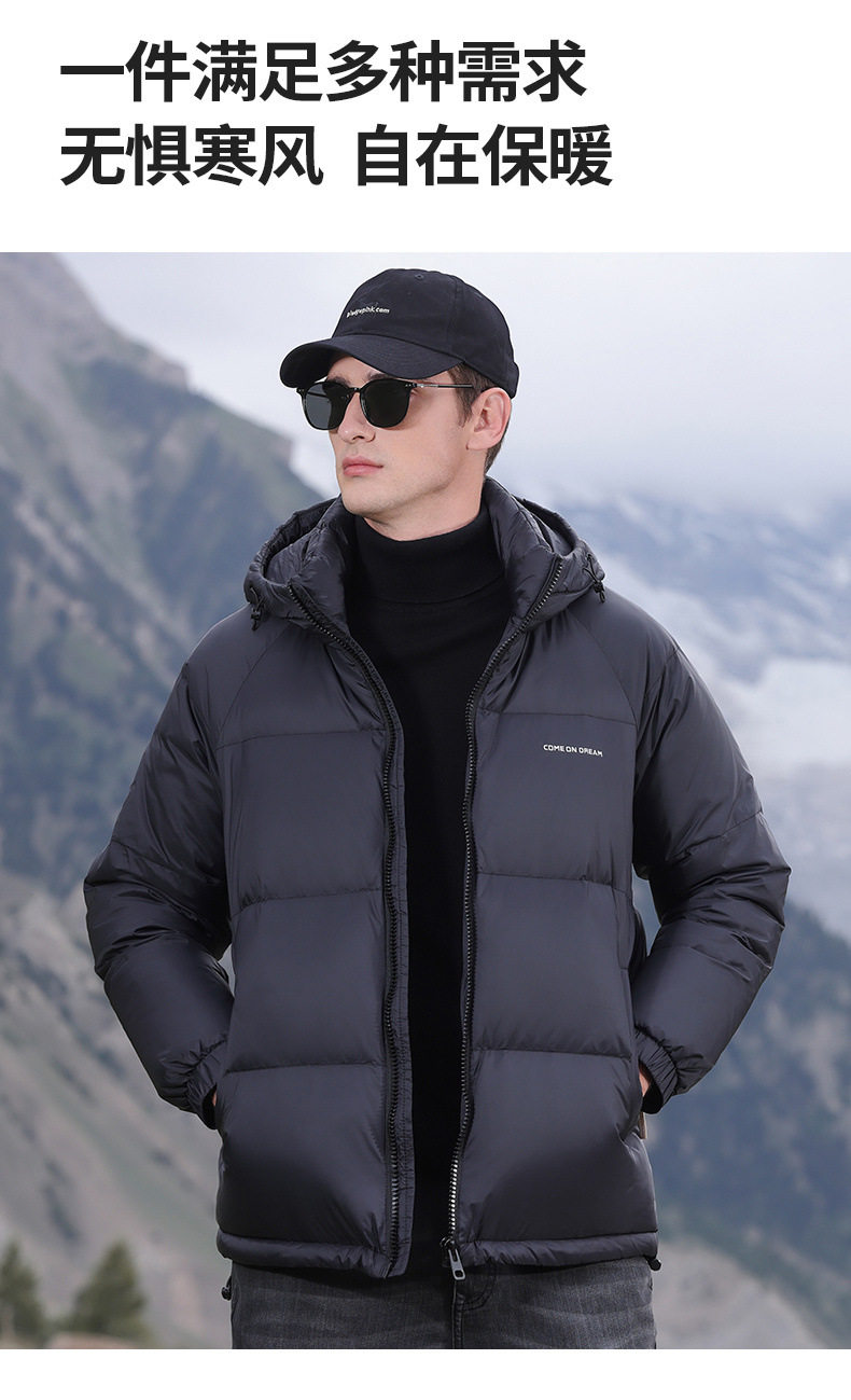 Men's Winter down Jacket with Hood, Thickened and Warm, 90% White Duck Down, Trendy Brand, Winter-Proof Casual Men's Coat