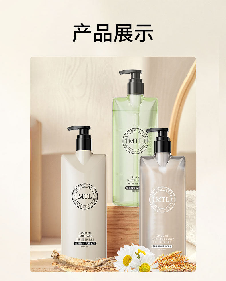 | Type | Amino acid anti-dandruff shampoo 500ml,Amino acid wheat hair cream 500ml,Amino acid fragrance shower gel 500ml |