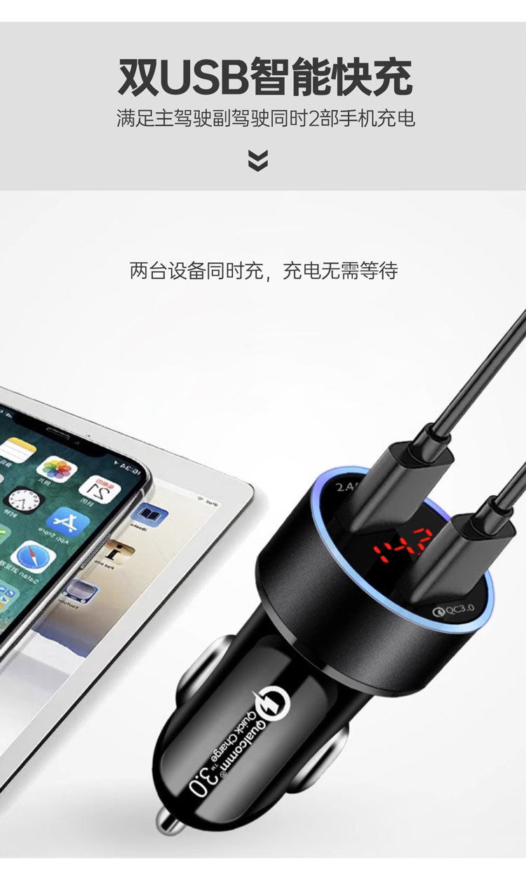 Digital Display car QC3.0 car charger 40W Super Fast Charge Dual USB Display car charger cigarette lighter plug