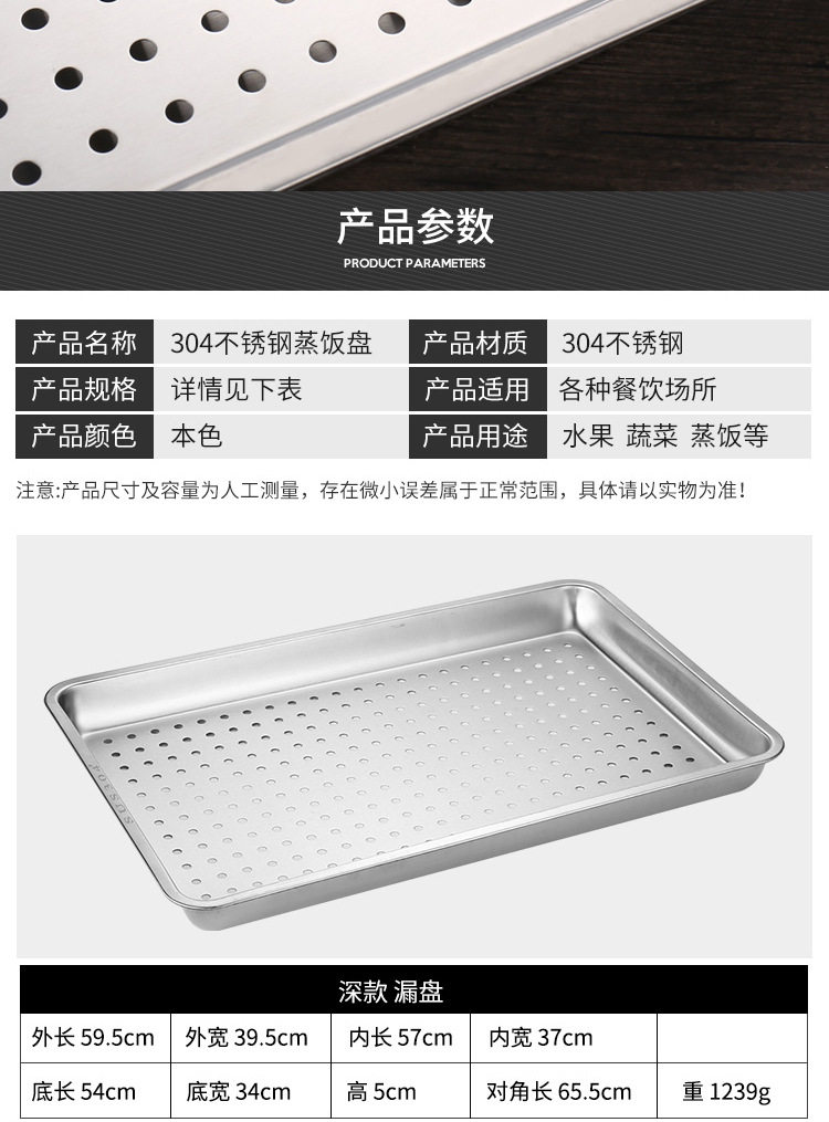 304 stainless steel square basin flat 60*40 steaming plate square plate drain plate extra large Deep Basin steaming box special tray steaming cabinet