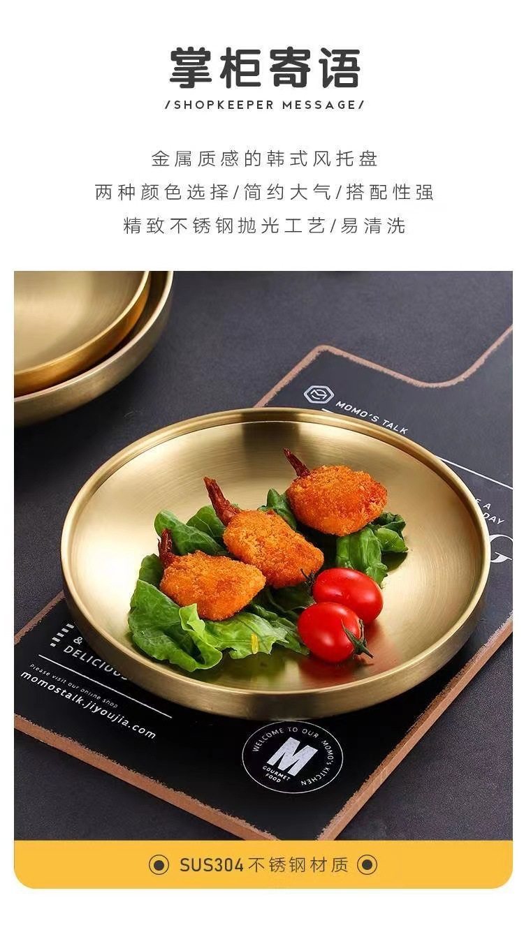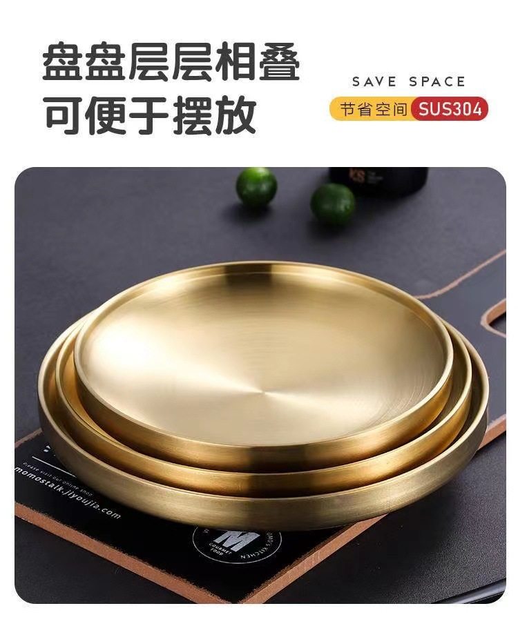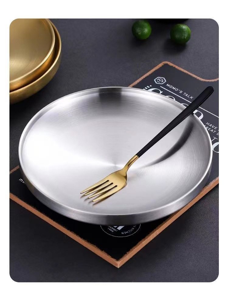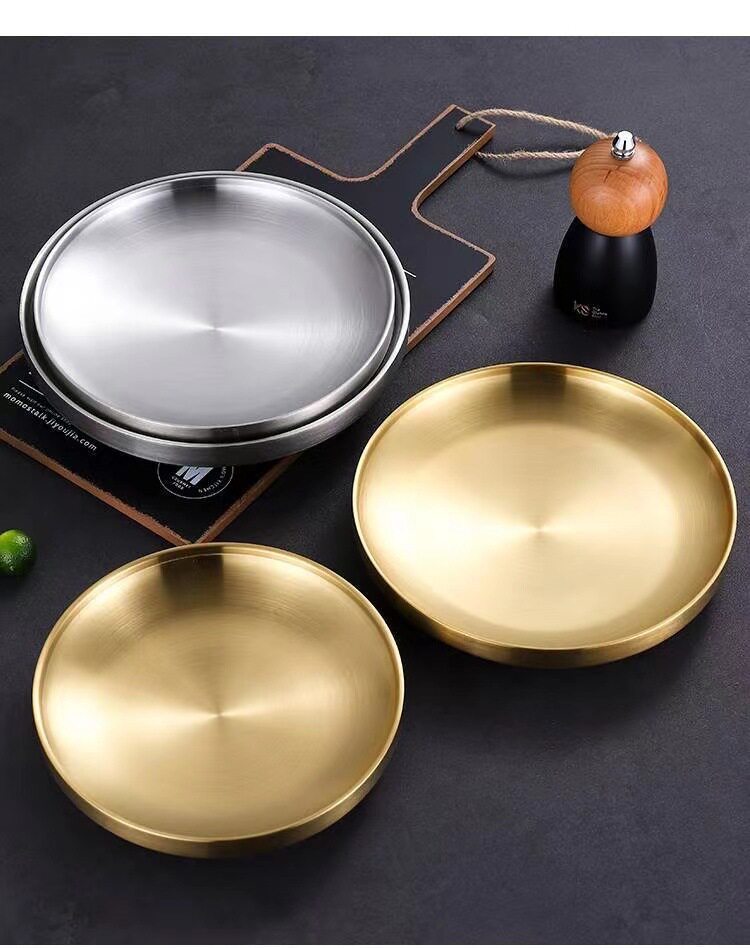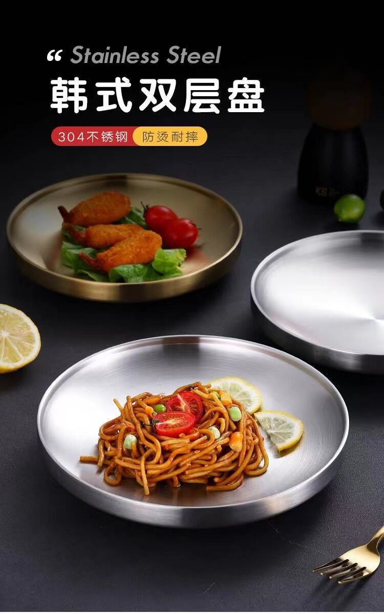 304 Stainless Steel Double Layer Barbecue Plate Korean-style Heat Insulated Western Food Plate Golden Snack Plate Thickened Anti-scalding Disc