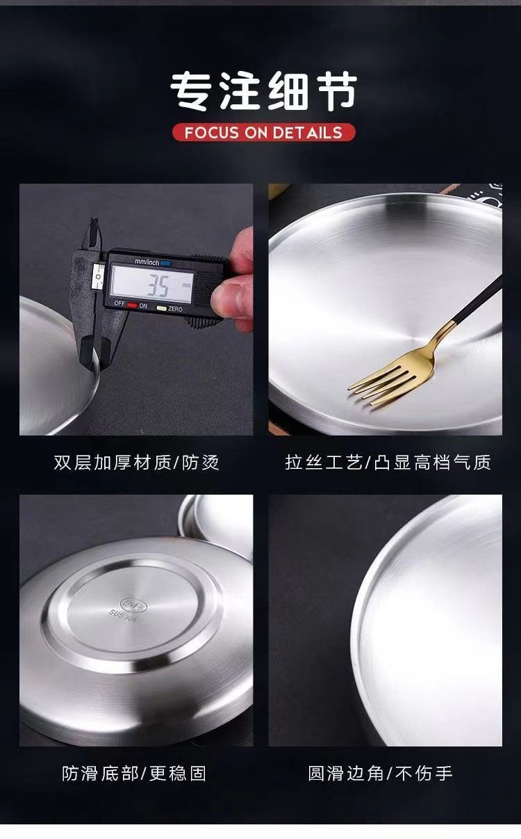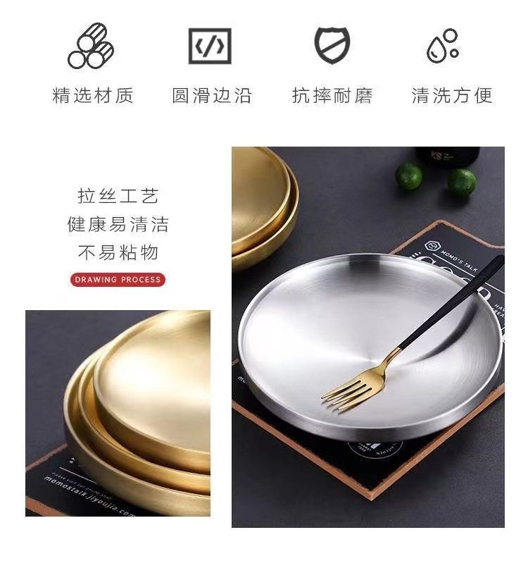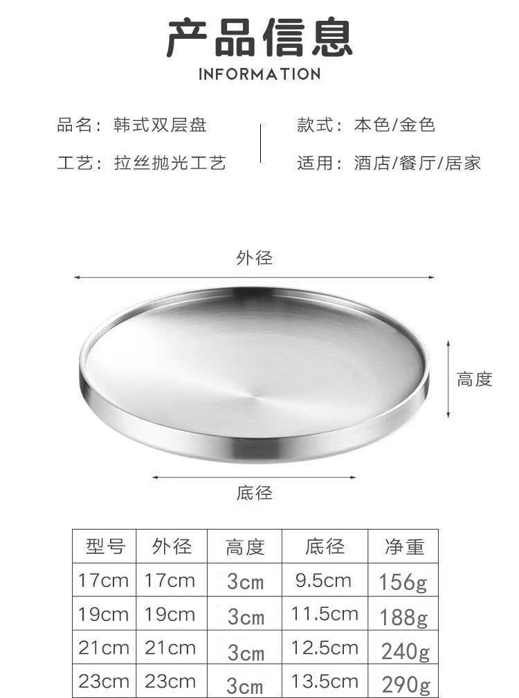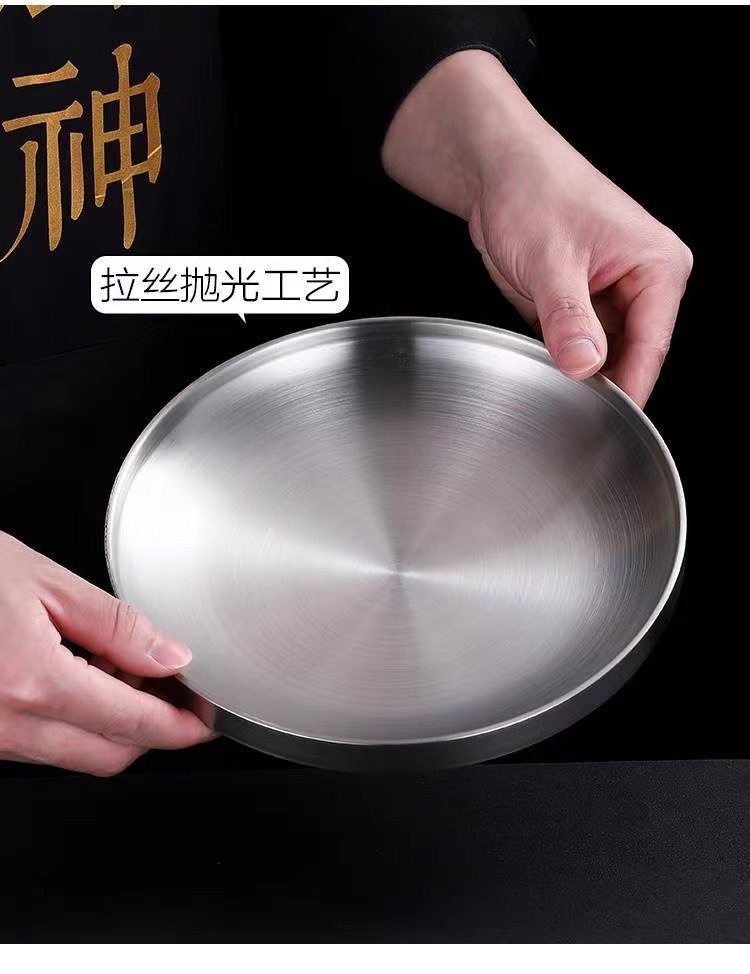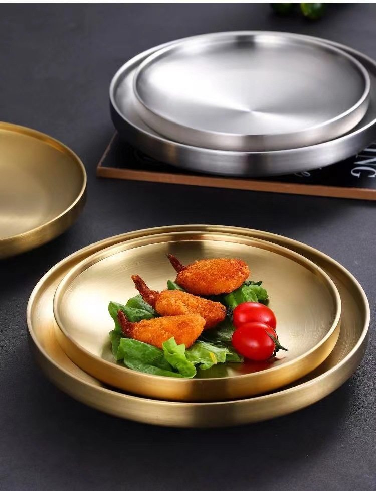 304 Stainless Steel Double Layer Barbecue Plate Korean-style Heat Insulated Western Food Plate Golden Snack Plate Thickened Anti-scalding Disc