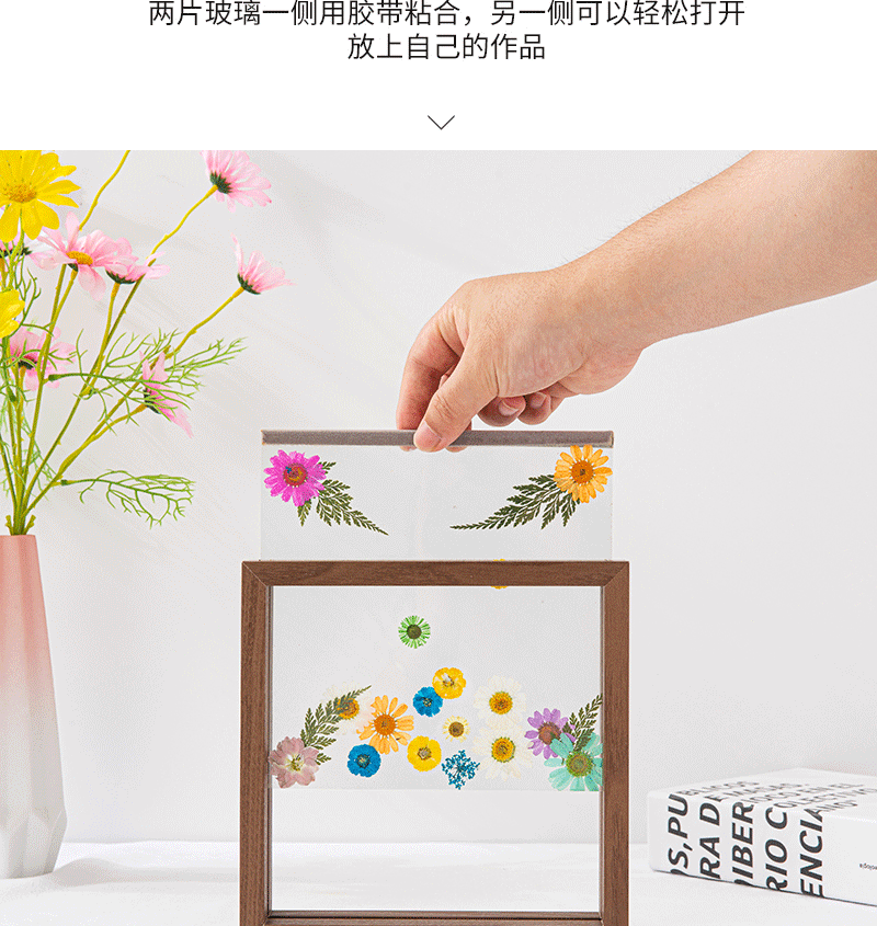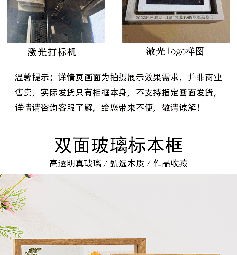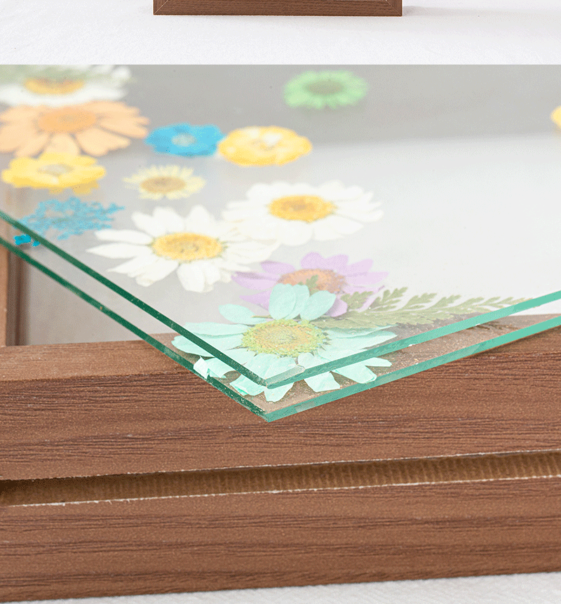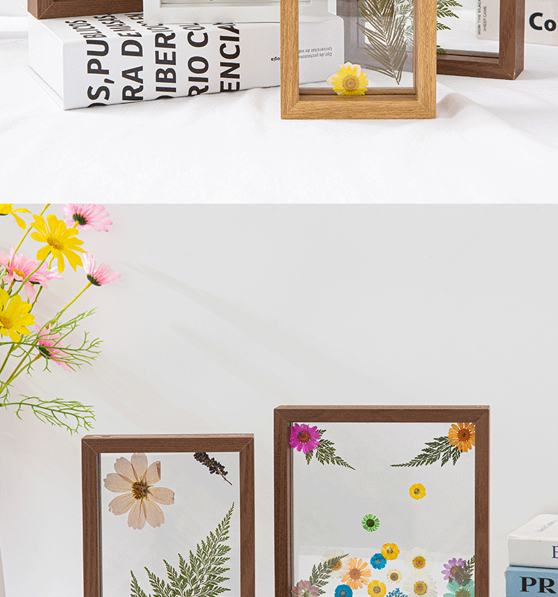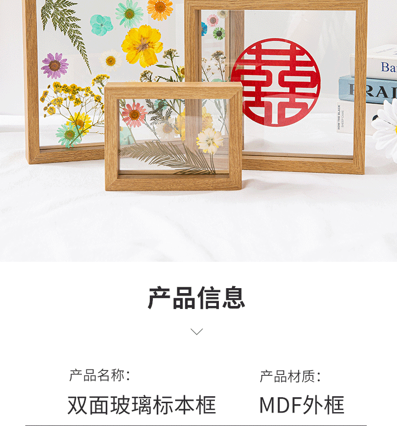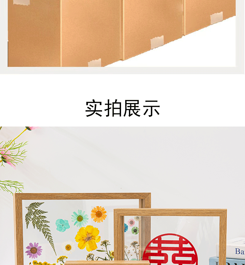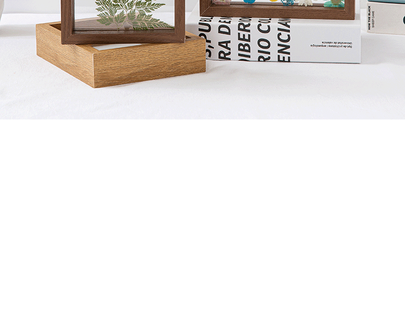 Double-Sided Photo Frame Transparent Glass Happy Word Clip Leaf Carving Ornaments Plant Specimen Embossed Frame Paper-Cut Picture Frame Table