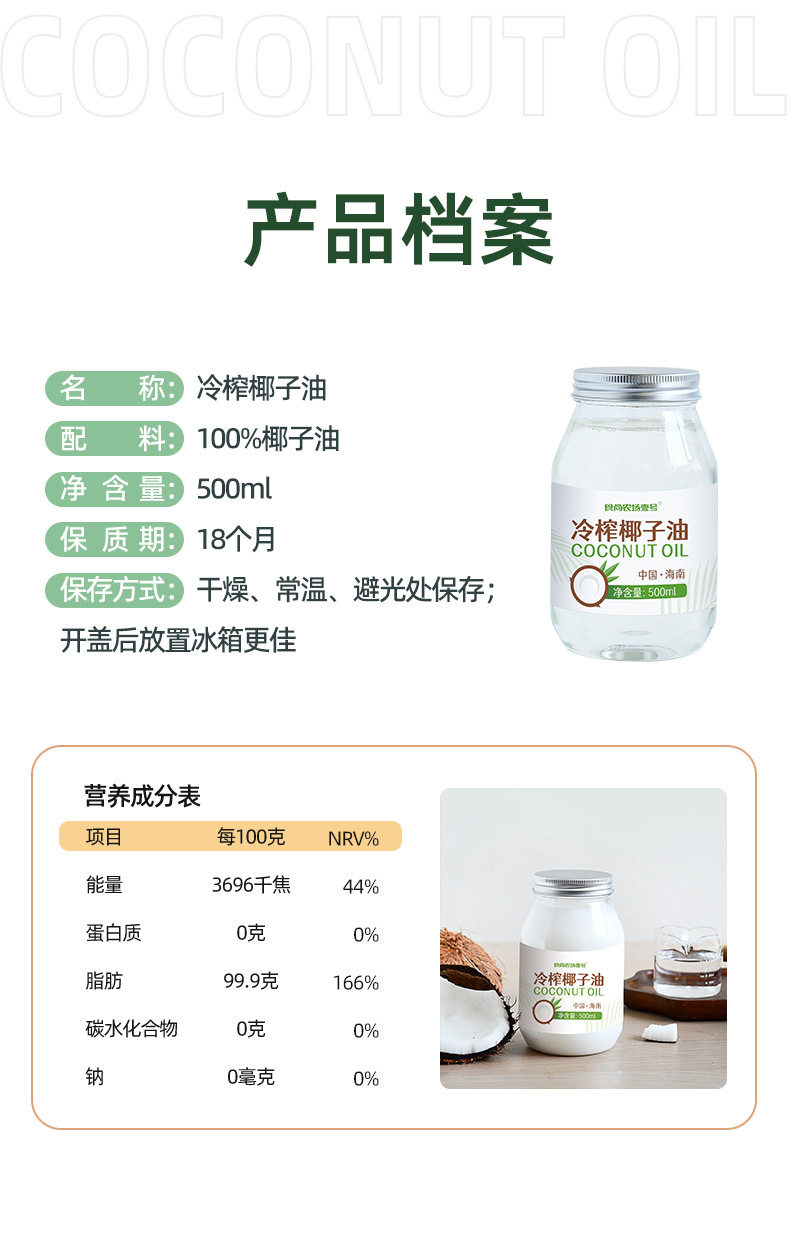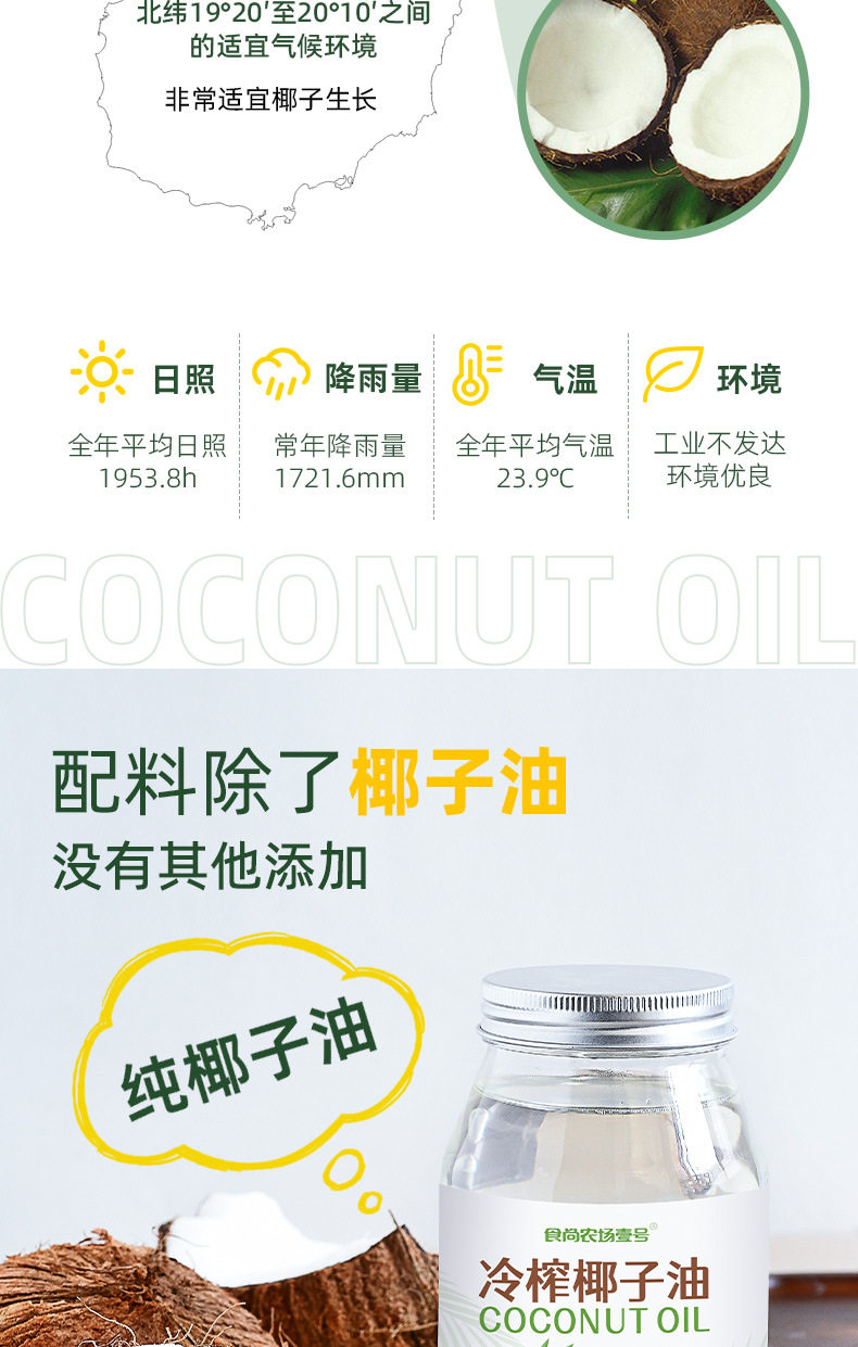 Shishang Farm No. 1 natural cold pressed coconut oil coconut oil virgin oil hair care MCT ketogenic