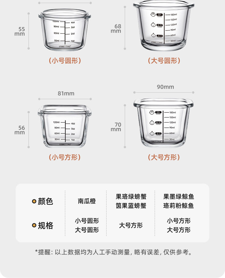 | Color | [can be steamed with lid] pumpkin orange 140ml,[can be steamed with lid] bol green bear 140ml,[can be steamed with lid] carrot green 140ml,[can be steamed with lid] taro purple bear 140ml,[can be steamed with lid] fruit dark green whale 160ml,[can be steamed with lid] twilight blue dinosaur 160ml,[can be steamed with lid] mint green dinosaur 160ml,[can be steamed with lid] luoli pink whale 160ml,[can be steamed with lid] mint green dinosaur 230ml,[can be steamed with lid] pumpkin orange 230ml,[can be steamed with lid] pudding powder small octopus 230ml,[can be steamed with lid] twilight blue dinosaur 230ml,[can be steamed with lid] taro purple bear 230ml,[can be steamed with lid] carrot green 230ml,[can be steamed with lid] high beam blue octopus 230ml,[can be steamed with lid] bol green bear 230ml,[can be steamed with lid] fruit dark green whale 230ml,[can be steamed and cooked with lid] fruit blue crab 230ml,[can be steamed with lid] luoli pink whale 230ml,[can be steamed with lid] guo luo green crab 230ml,[2-piece set of steaming and cooking with lid] pumpkin orange 140ml*2,[2-piece set of steaming and cooking with lid] pumpkin orange 140ml + pumpkin orange 230ml,[2-piece set of steaming and cooking with lid] fruit dark green whale 160ml*2,[2-piece set of steaming and cooking with lid] luoli pink whale 160ml*2,[2-piece set that can be steamed and cooked with lid] yingguo blue crab 230ml + fruit dark green whale 160ml,[2-piece set of steaming and cooking with lid] luoli pink whale 160ml + luoli pink whale 230ml,[2-piece set of steaming and cooking with lid] guo luo green crab 230ml + fruit dark green whale 160ml,[2-piece set that can be steamed and cooked with lid] guo luo green crab 230ml + piguo blue crab 230ml,[2-piece set of steaming and cooking with lid] fruit dark green whale 160ml + fruit dark green whale 230ml,[2-piece set of steaming and cooking with lid] pumpkin orange 230ml*2,[2-piece set of steaming and cooking with lid] guo luo green crab 230ml*2,[2-piece set that can be steamed and cooked with lid] fruit dark green whale 230ml*2,[2-piece set that can be steamed and cooked with lid] sui guo blue crab 230ml*2,[2-piece set of steaming and cooking with lid] luoli pink whale 230ml*2,[2-piece set of steaming and cooking with lid] fruit dark green whale 230ml + luoli pink whale 230ml,[4-piece set of steaming and cooking with lid] pumpkin orange 140ml*2+pumpkin orange 230ml*2,[4-piece set of steaming and cooking with lid] fruit dark green whale 160ml*2 + luoli pink whale 160ml*2,[4-piece set of steaming and cooking with lid] fruit dark green whale 230ml + luoli pink whale 230ml + fruity green crab 230ml + fruit blue crab 2 |
