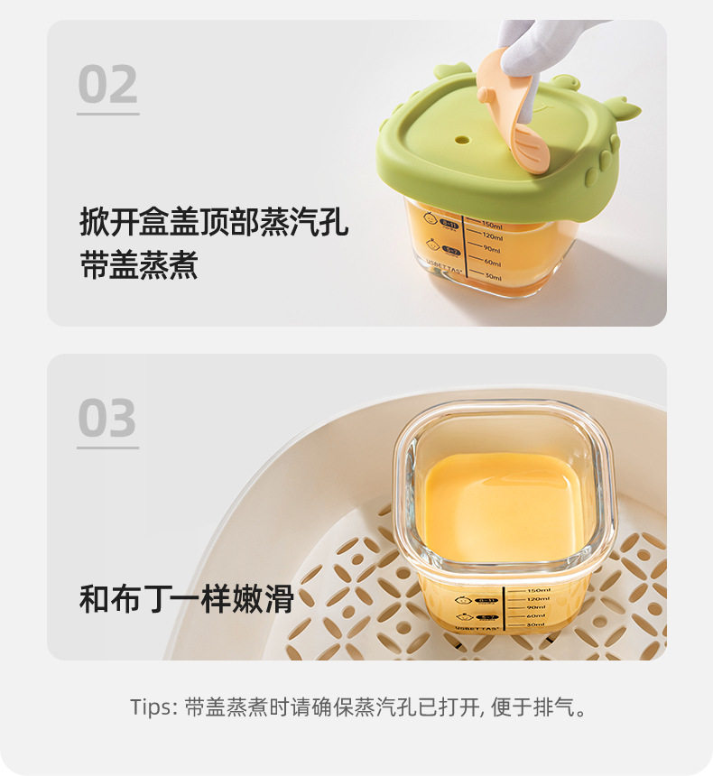Baby Glass Food Supplement Box, Fresh Storage, Steamable Custard Bowl, Special Baby Food Supplement Bowl, Cup Mold Tool Set