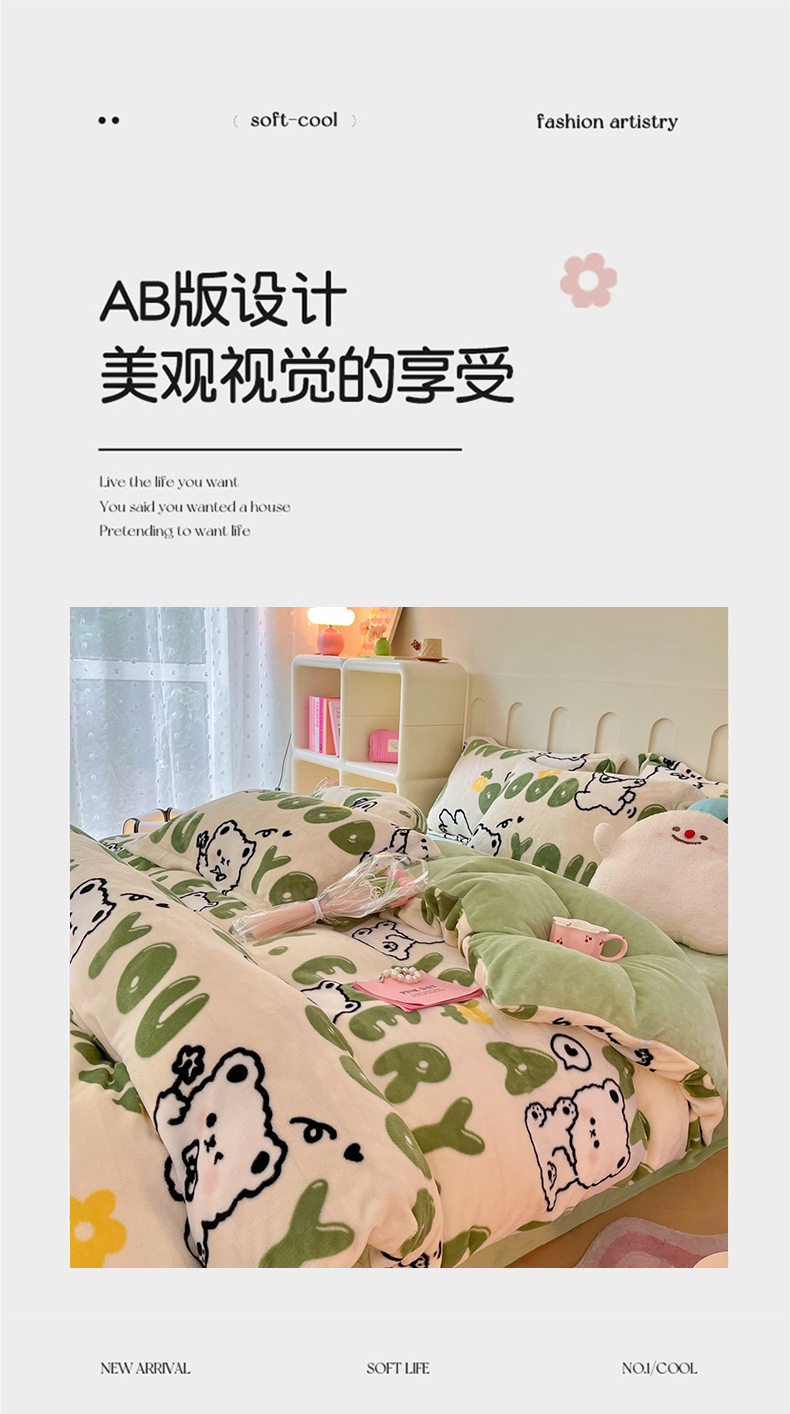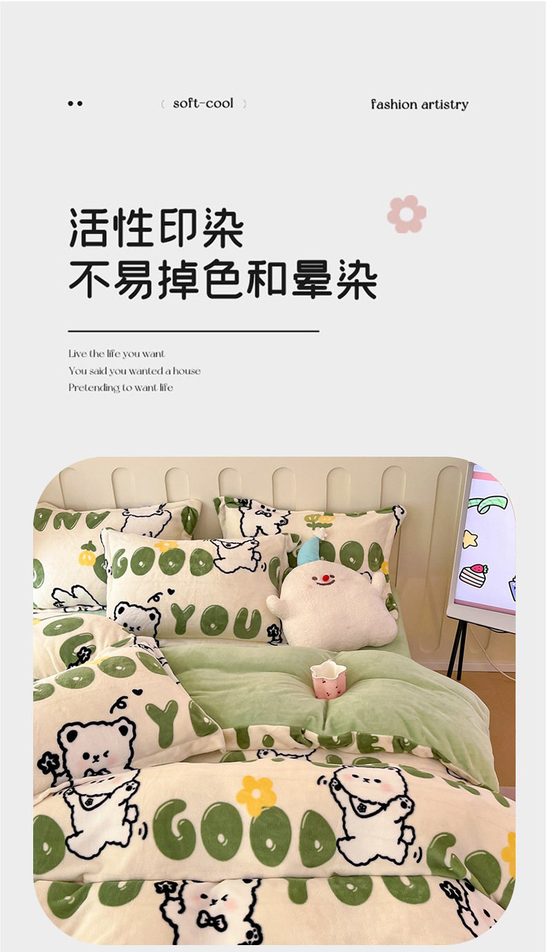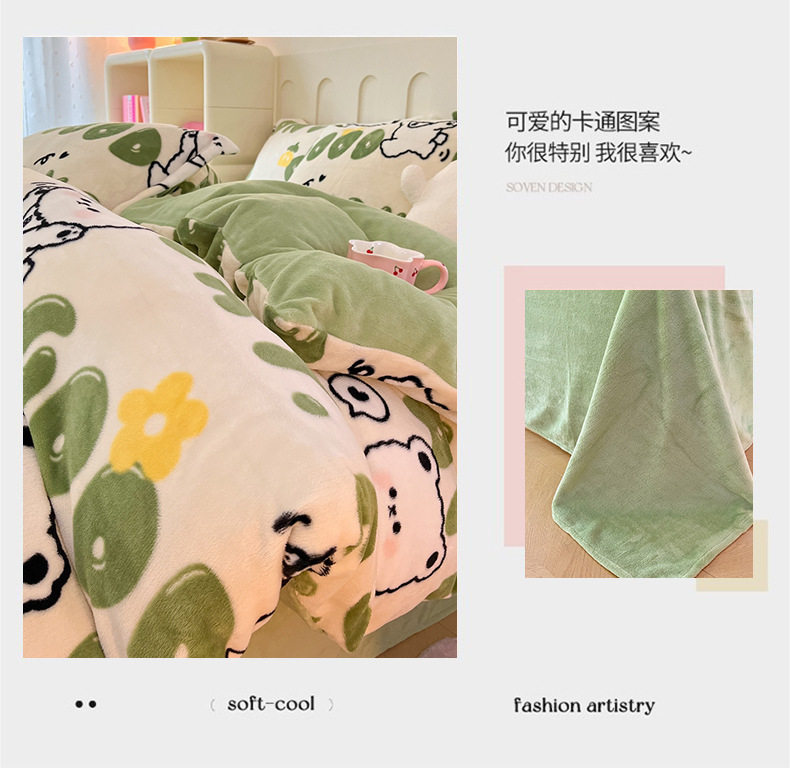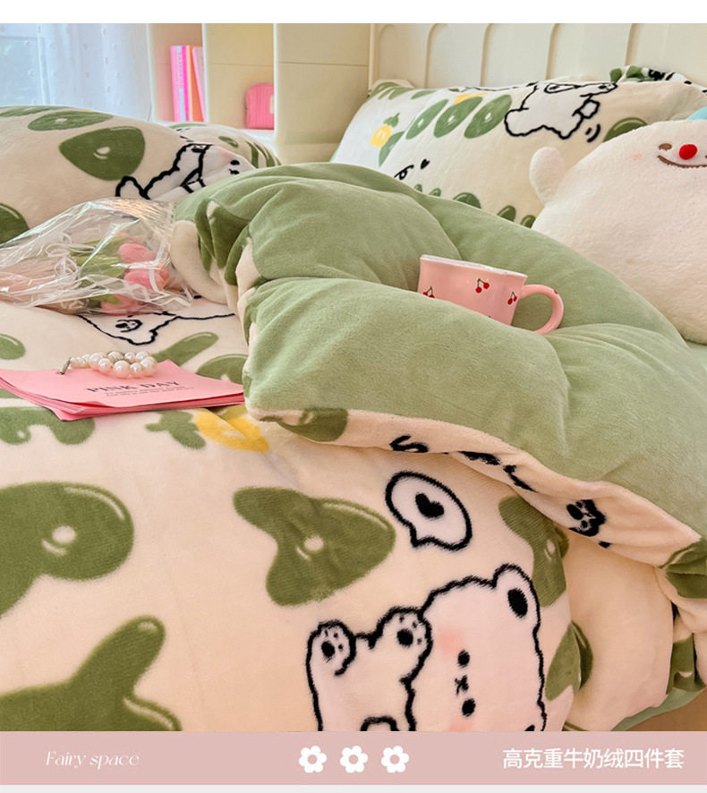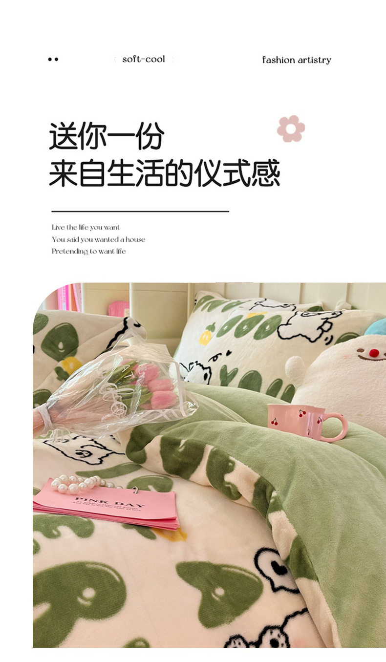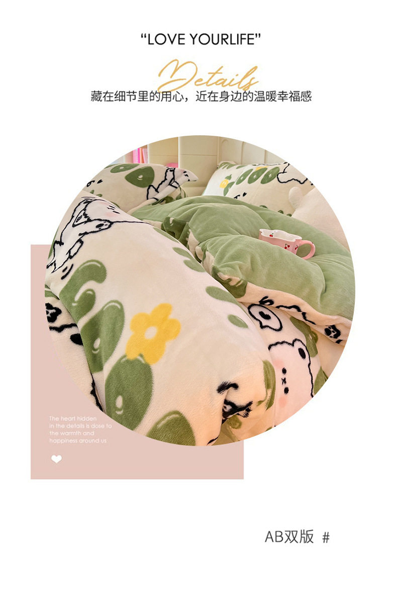Class A autumn and winter fleece-lined thickened milk velvet four-piece set household warm quilt cover bed sheet bedding three-piece set