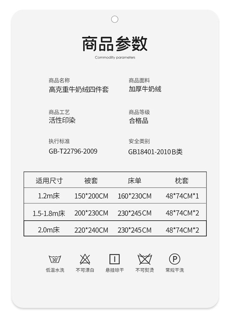 | Size specifications | 1.5m bed sheet four-piece set [quilt cover 200*230cm],1.8m bed sheet four-piece set [quilt cover 200*230cm],2.0m bed sheet four-piece set [quilt cover 220*240cm],1.5m fitted sheet set of four [quilt cover 200*230cm],1.8m fitted sheet set of four [quilt cover 200*230cm] |