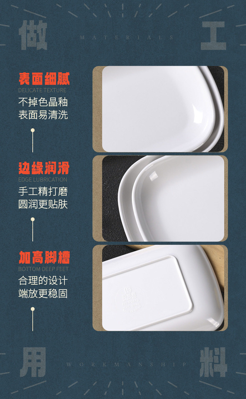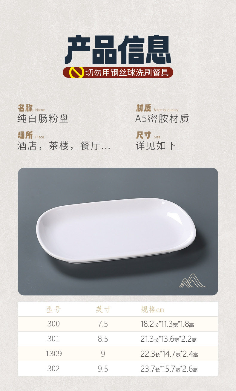 a5 white melamine rectangular dish plate hot pot buffet commercial plastic breakfast sausage powder special dish plate