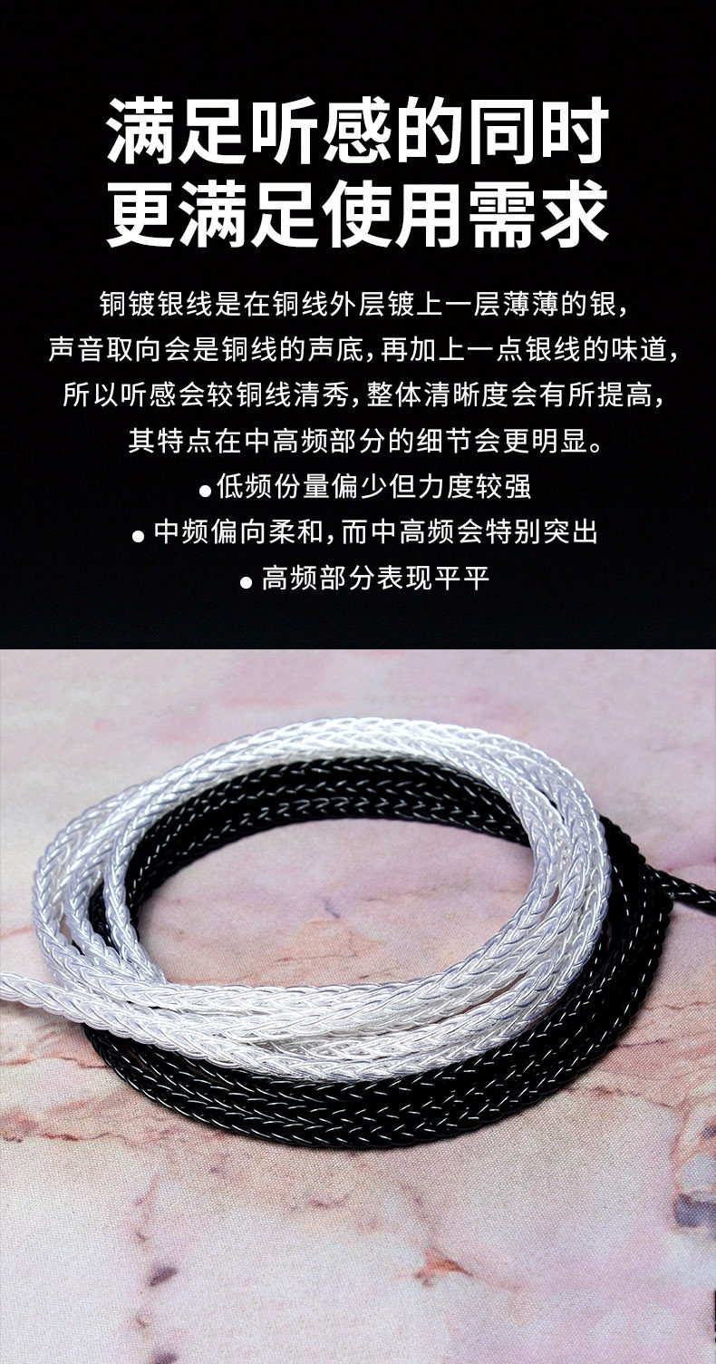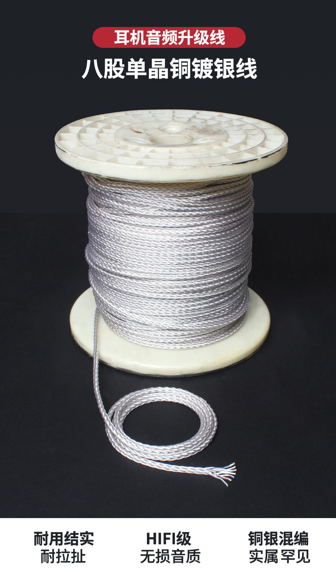 Headphone DIY Upgrade Audio Extension Cable Hifi Accessories Eight-Strand Silver-Plated Wire Black Audiophile Grade