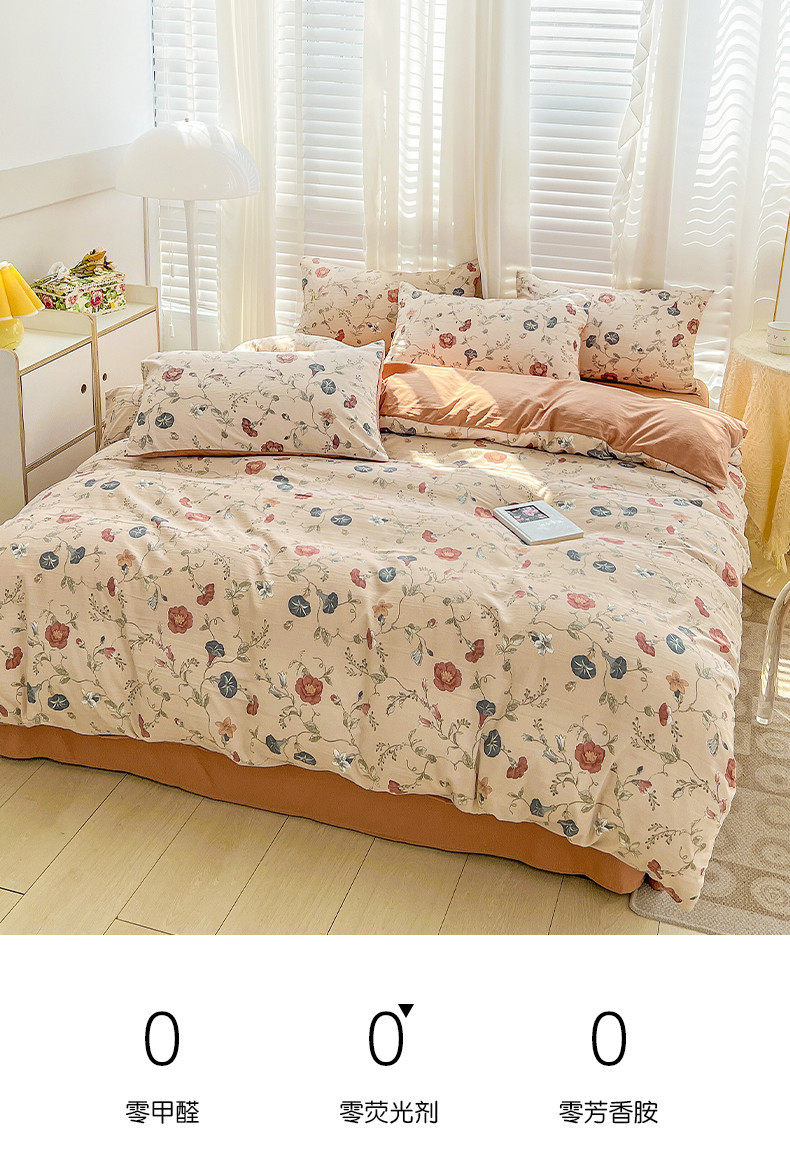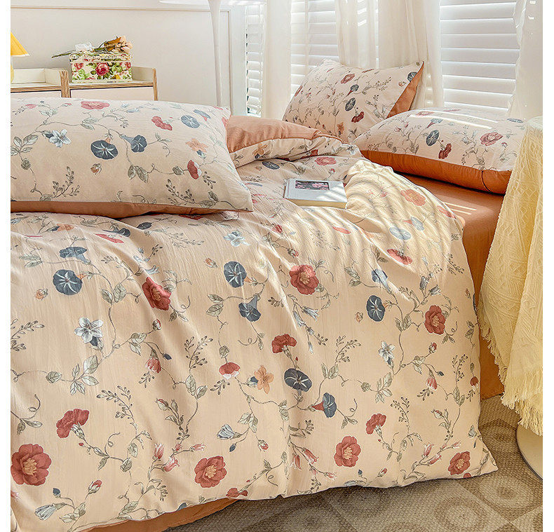 Double-Layer Gauze Four-Piece Set Washed Cotton and Linen Dormitory Three-Piece Set Single and Double Quilt Cover Sheet Brushed Bedding Set Wholesale