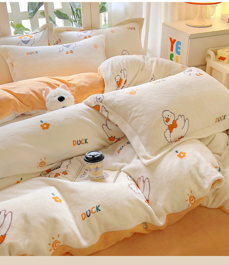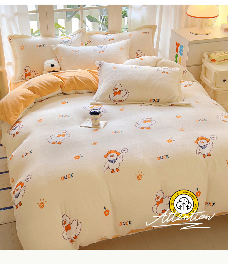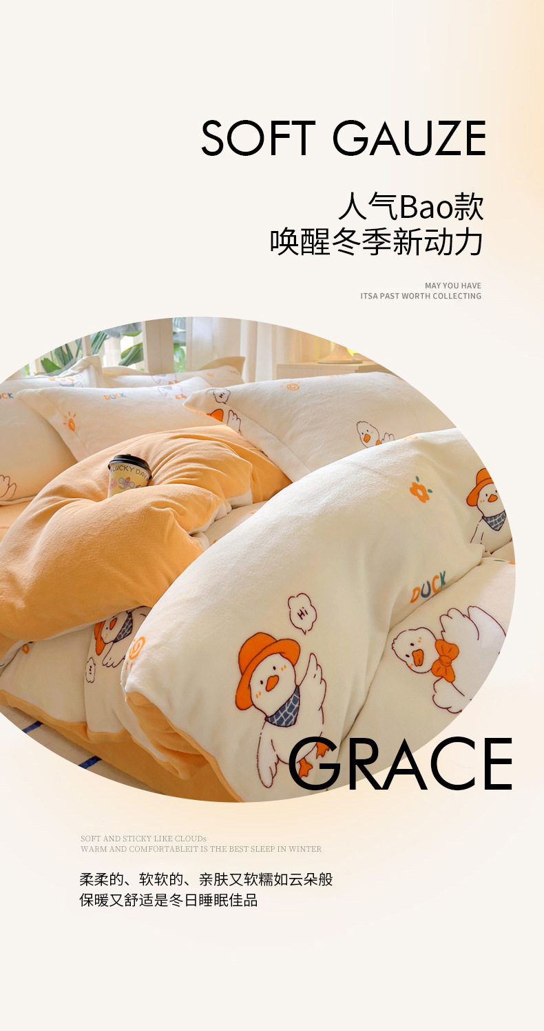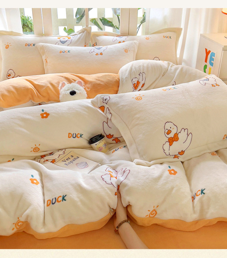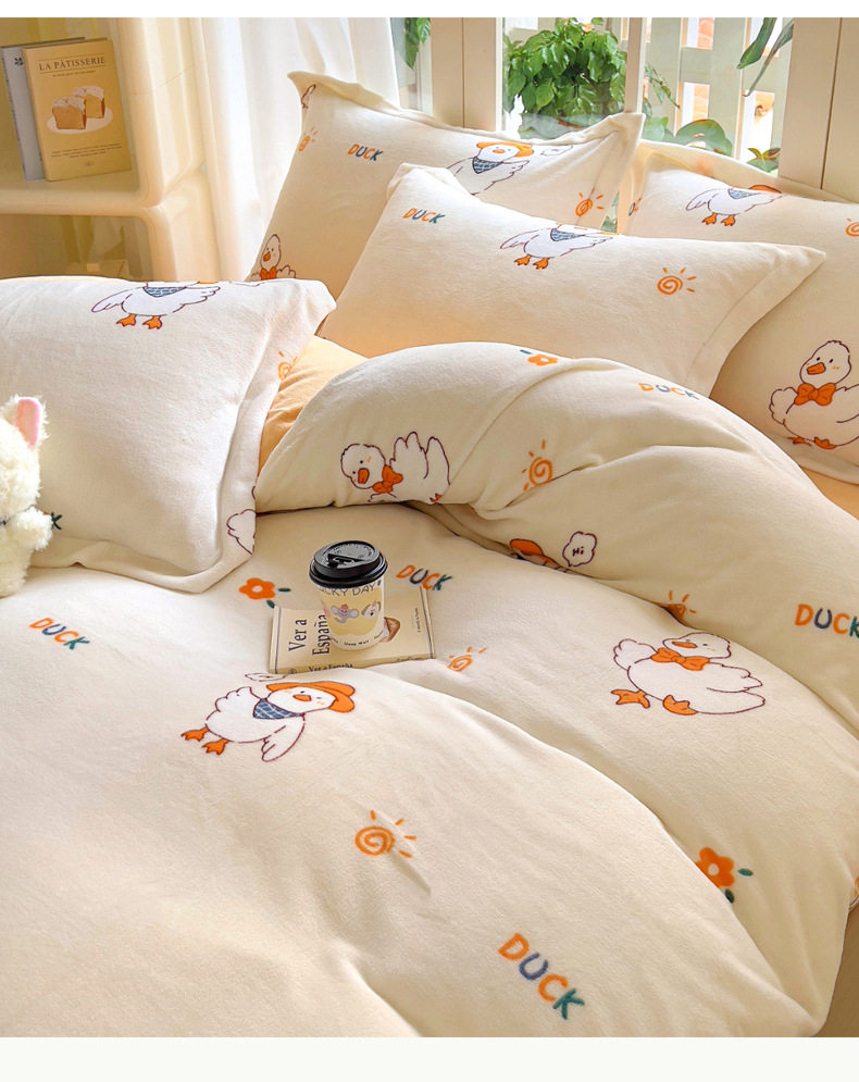 Class a Fresh and Simple Thickened Milk Velvet Four-Piece Set Winter Cartoon Velvet Duvet Cover Warm Coral Velvet Dormitory Three-Piece Set