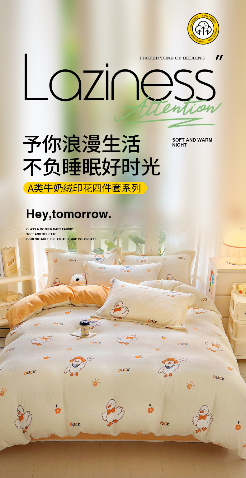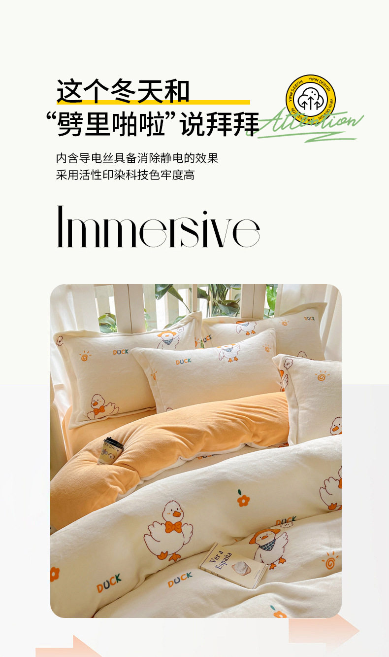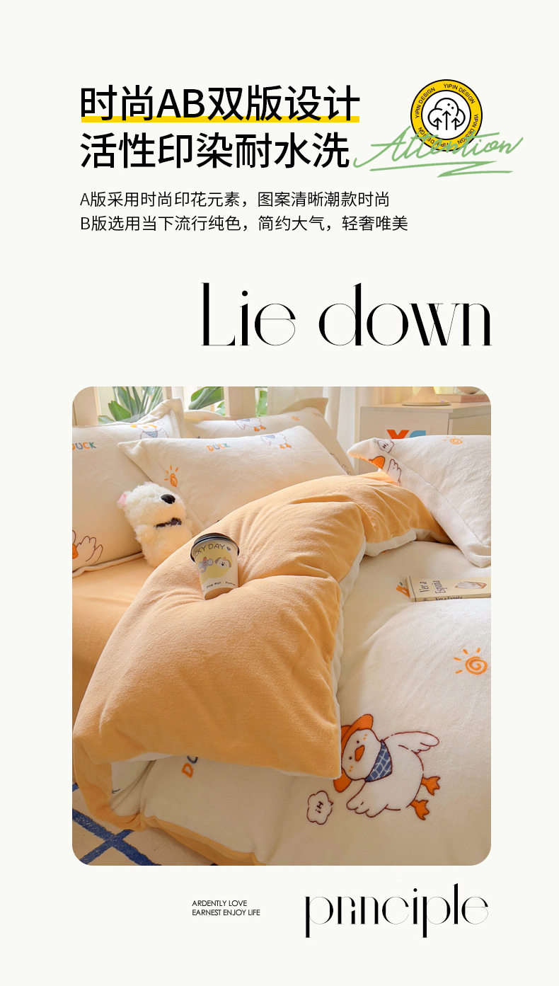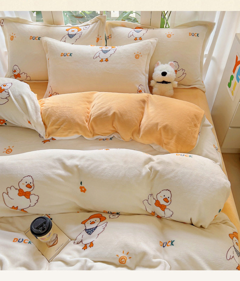 Class a Fresh and Simple Thickened Milk Velvet Four-Piece Set Winter Cartoon Velvet Duvet Cover Warm Coral Velvet Dormitory Three-Piece Set