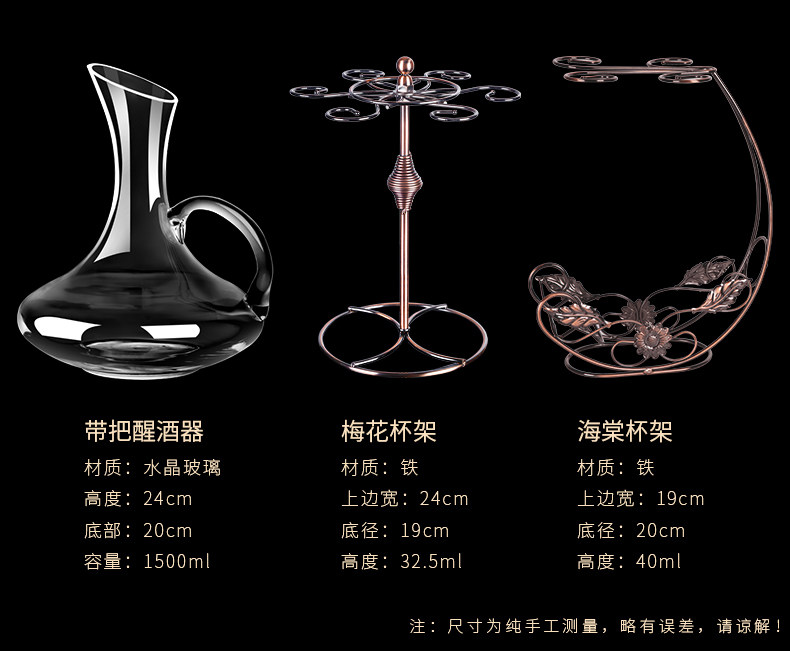 | Color | A medium size 2 only,A medium 6 only,With a wine decanter 1500ml,Large U decanter 1500ml,Plum blossom cup holder [can hang 6 wine glasses]],Begonia cup holder [can put 4 cups of red wine]],A medium 4 with a wine decanter,A medium 4 large U decanter,A medium 6 with a decanter,A medium 6 large U decanter |