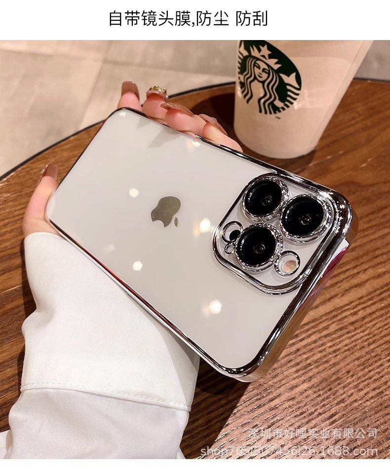 Suitable for Iphone17 Electroplated Mobile Phone Case with Lens Film Apple 16Promax All-Inclusive Protection 15 Transparent Soft Case