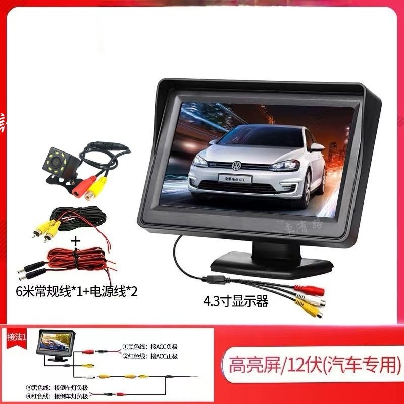4.3 inch desktop car monitor 12v HD night vision real-time recording reversing image simple installation package