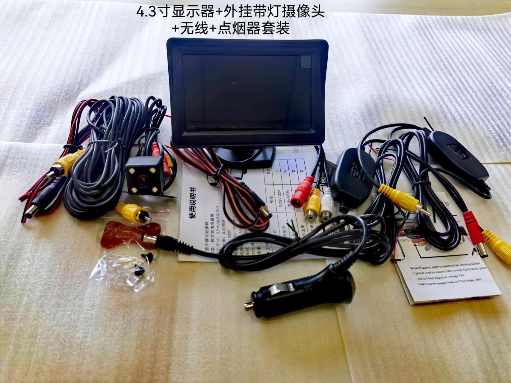 | Specifications | 4.3 desktop single display AV cable,4.3 inch desktop plug-in camera suit with lights,4.3 inch desktop punch camera suit,4.3 inch desktop double bracket small butterfly camera cigarette lighter,4.3 desktop plug-in AV line cigarette lighter suit,5 inch desktop plug-in camera with light,5 inch desktop punch camera suit,5 inch desktop plug-in AV line cigarette lighter suit,4.3 inch desktop plug-in camera with light 2.4G wireless cigarette lighter,4.3 inch desktop punch camera 2.4G wireless cigarette lighter,5 inch desktop plug-in camera with light 2.4G wireless cigarette lighter,5 inch desktop punch camera 2.4G wireless cigarette lighter |
