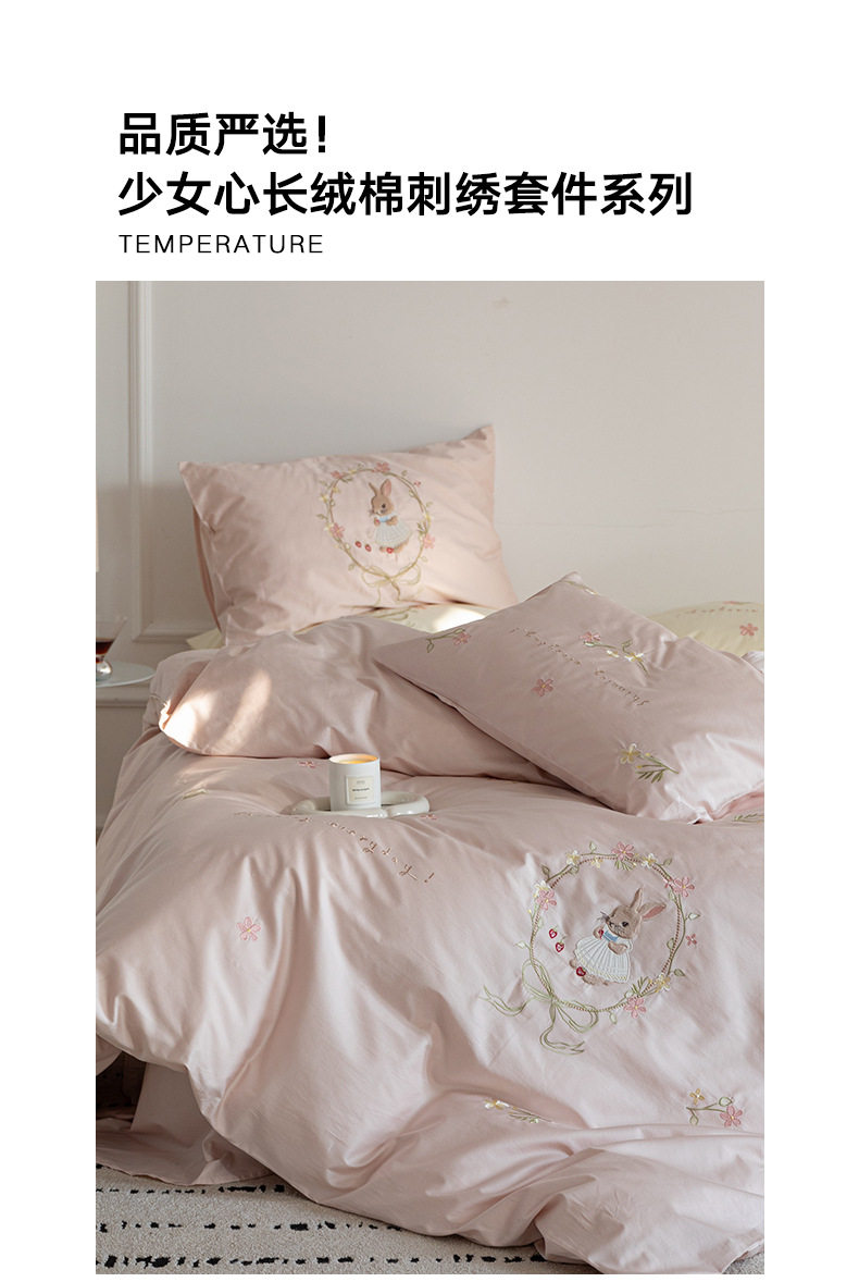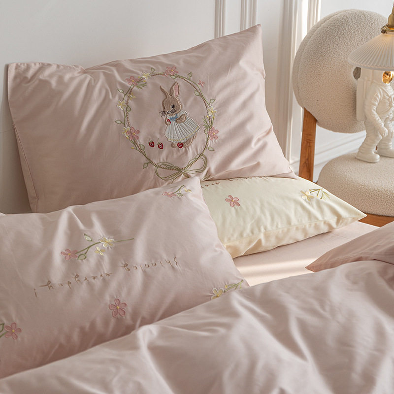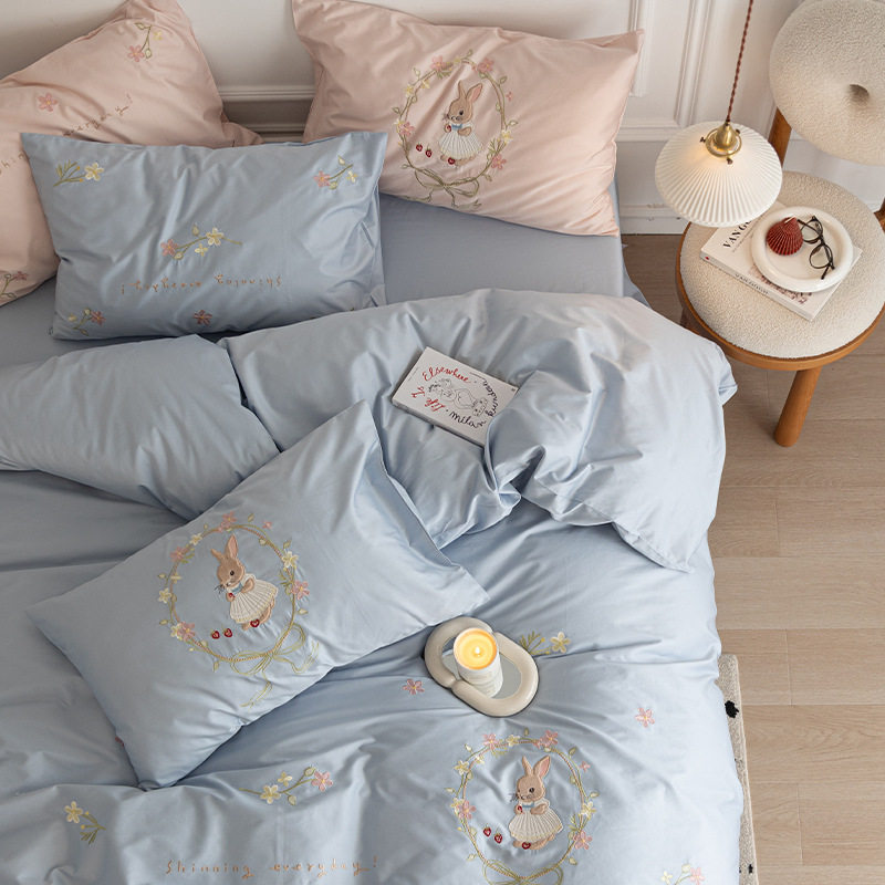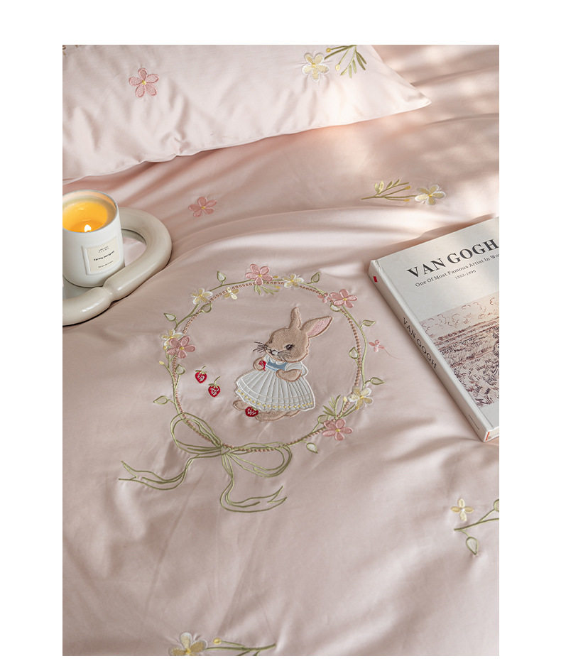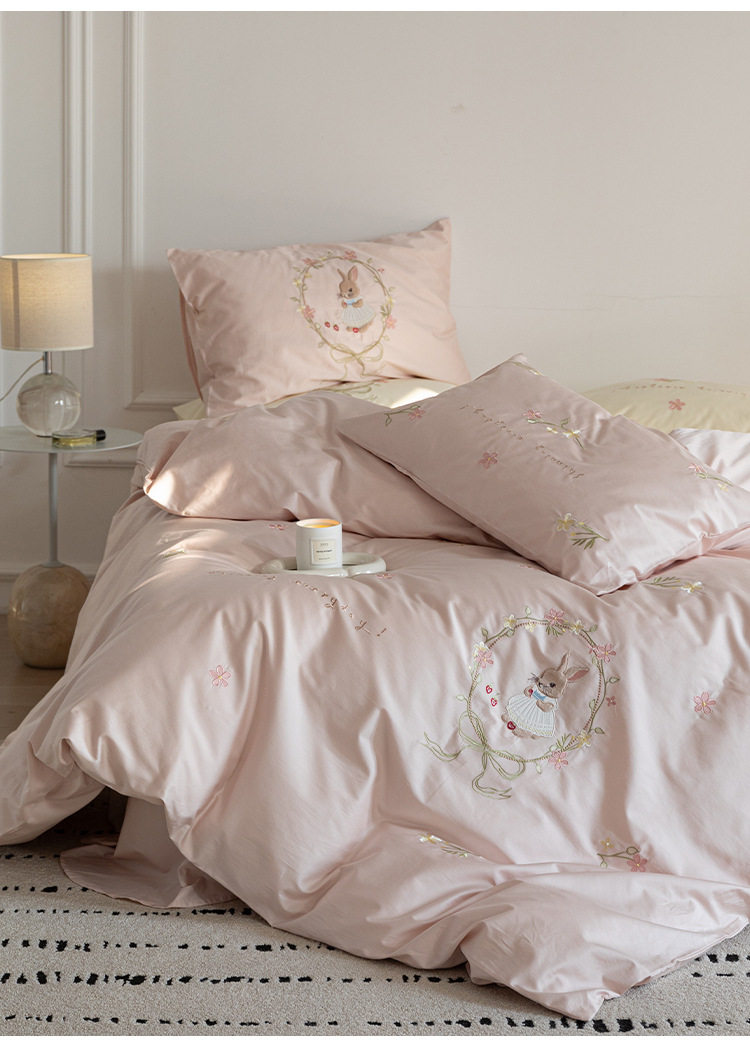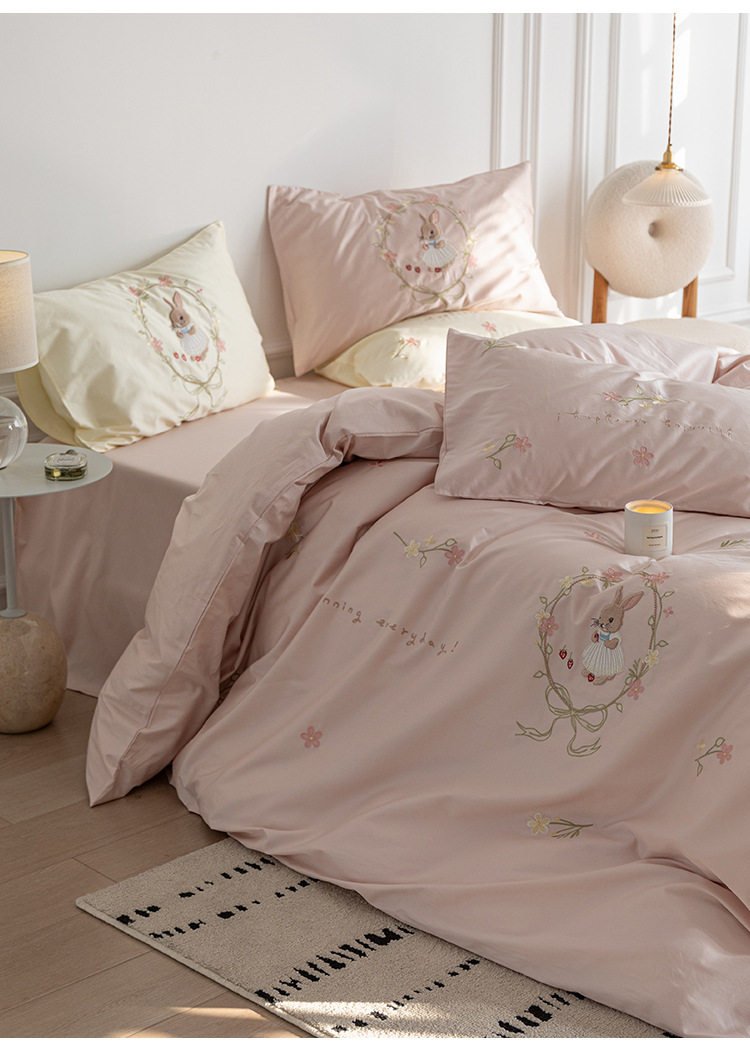 Back-To-School Girl's Heart 100-Count Long-Staple Cotton Embroider Three- or Four-Piece Set Cute Rabbit Cotton Bed Bed Sheets Quilt Cover Bedding 9
