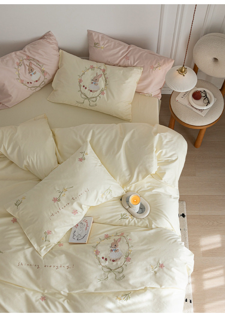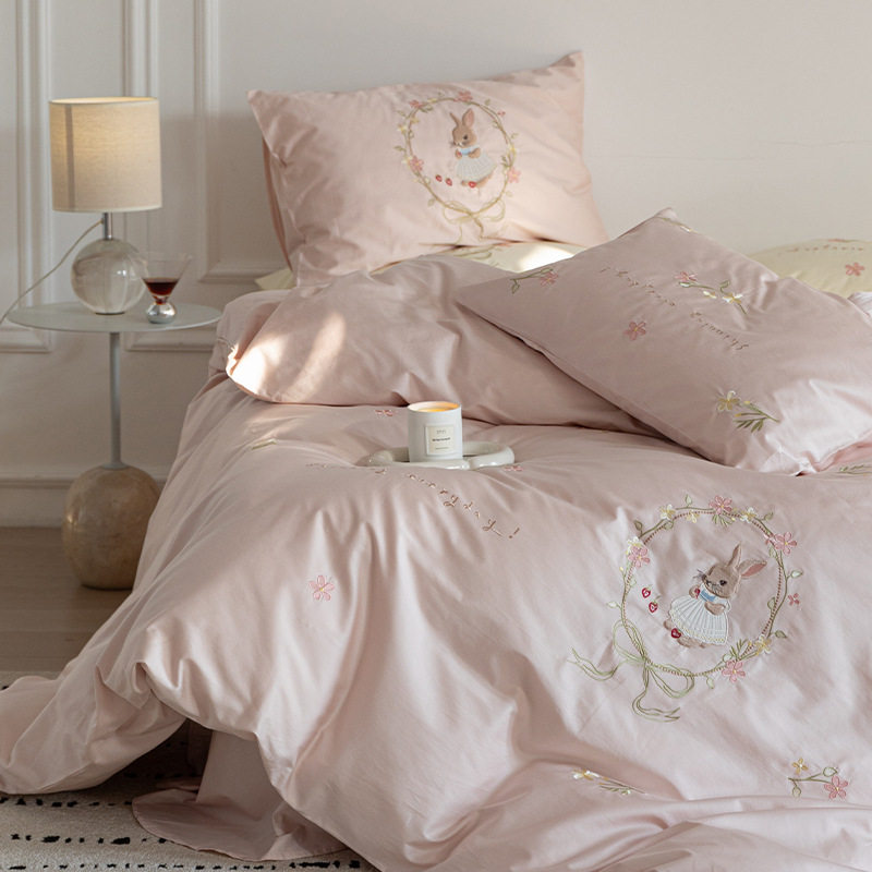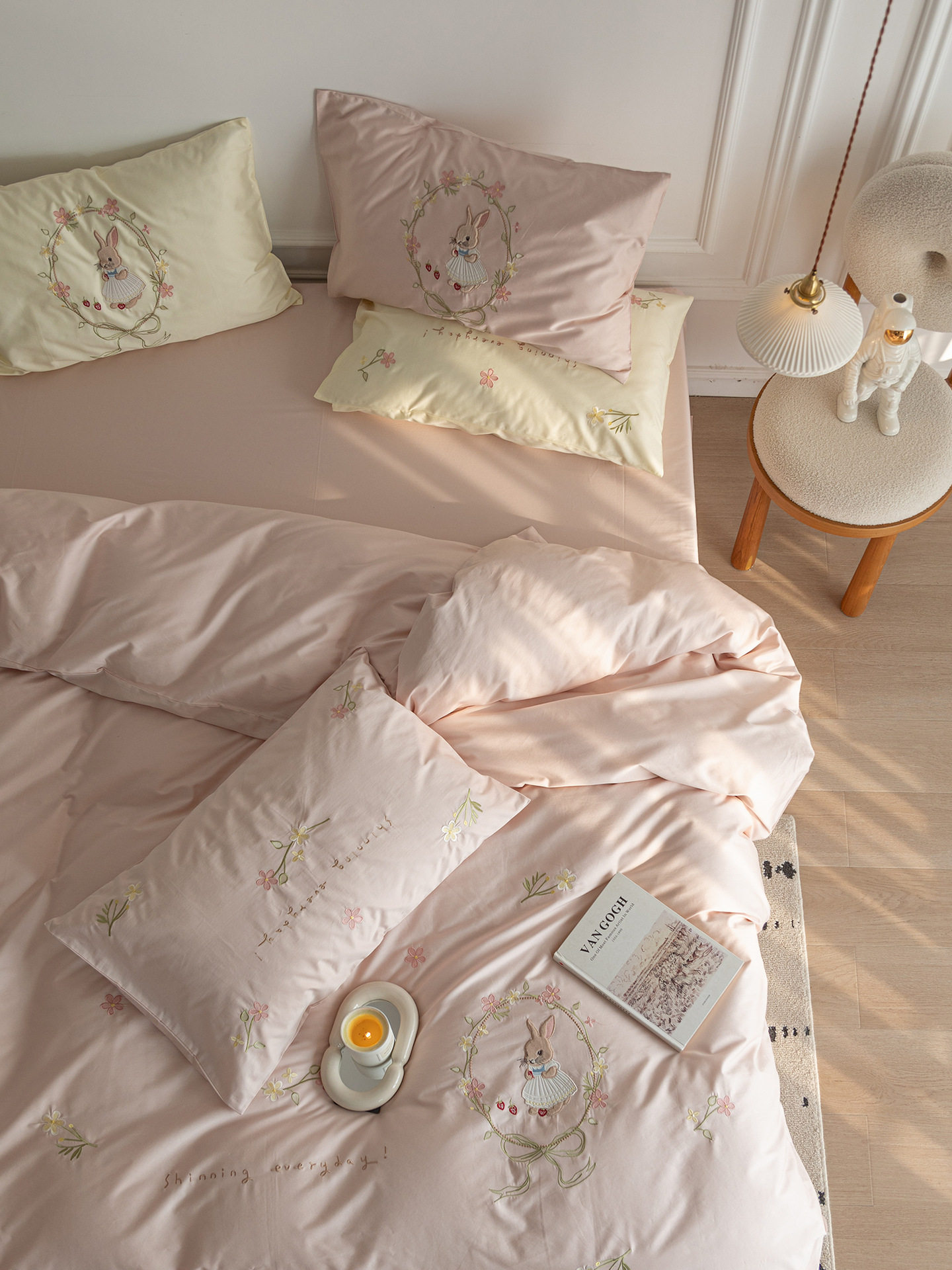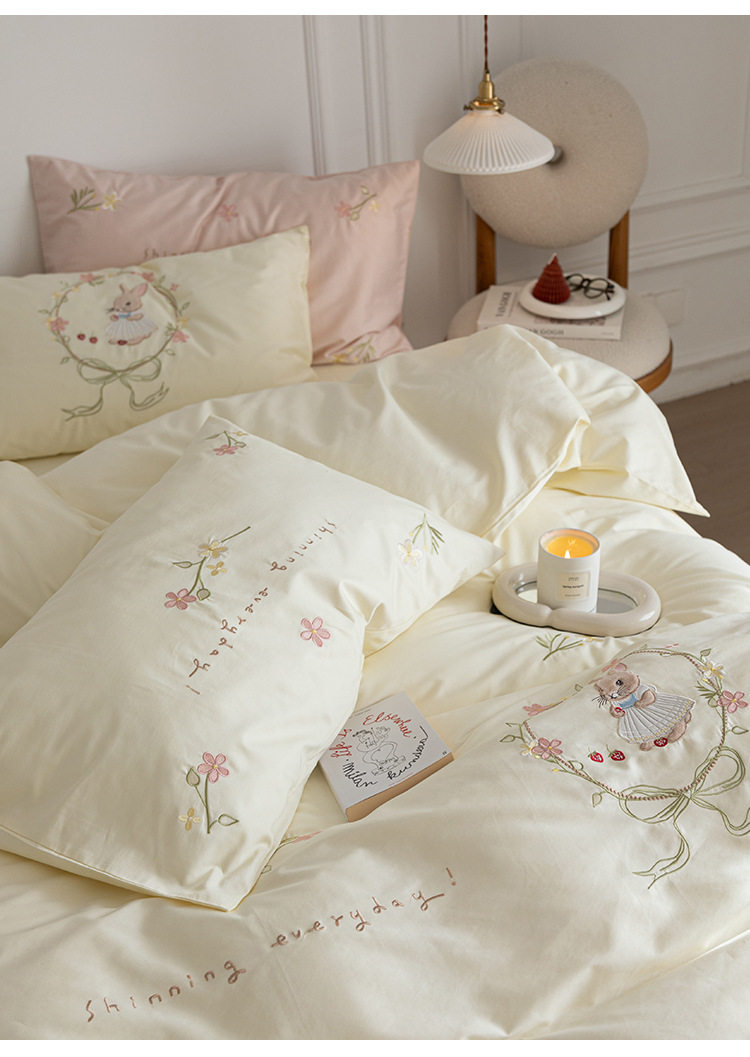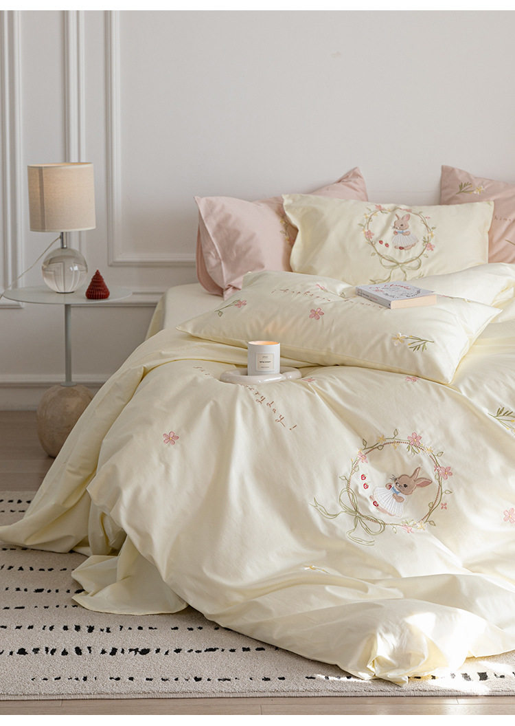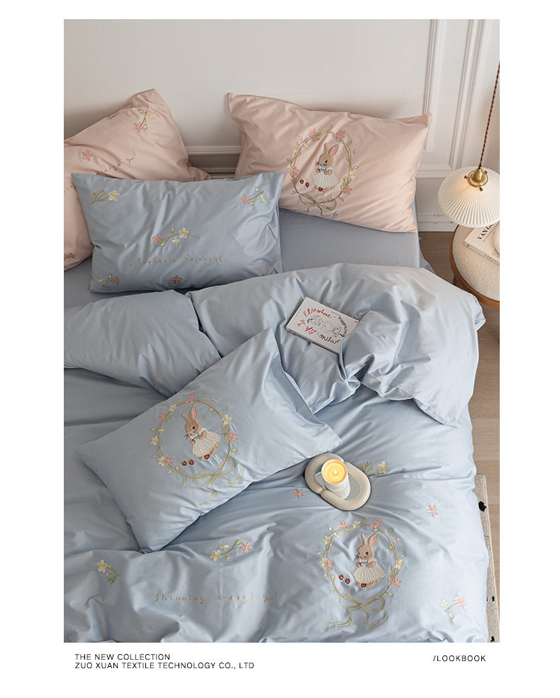 Back-To-School Girl's Heart 100-Count Long-Staple Cotton Embroider Three- or Four-Piece Set Cute Rabbit Cotton Bed Bed Sheets Quilt Cover Bedding 9