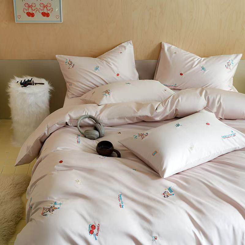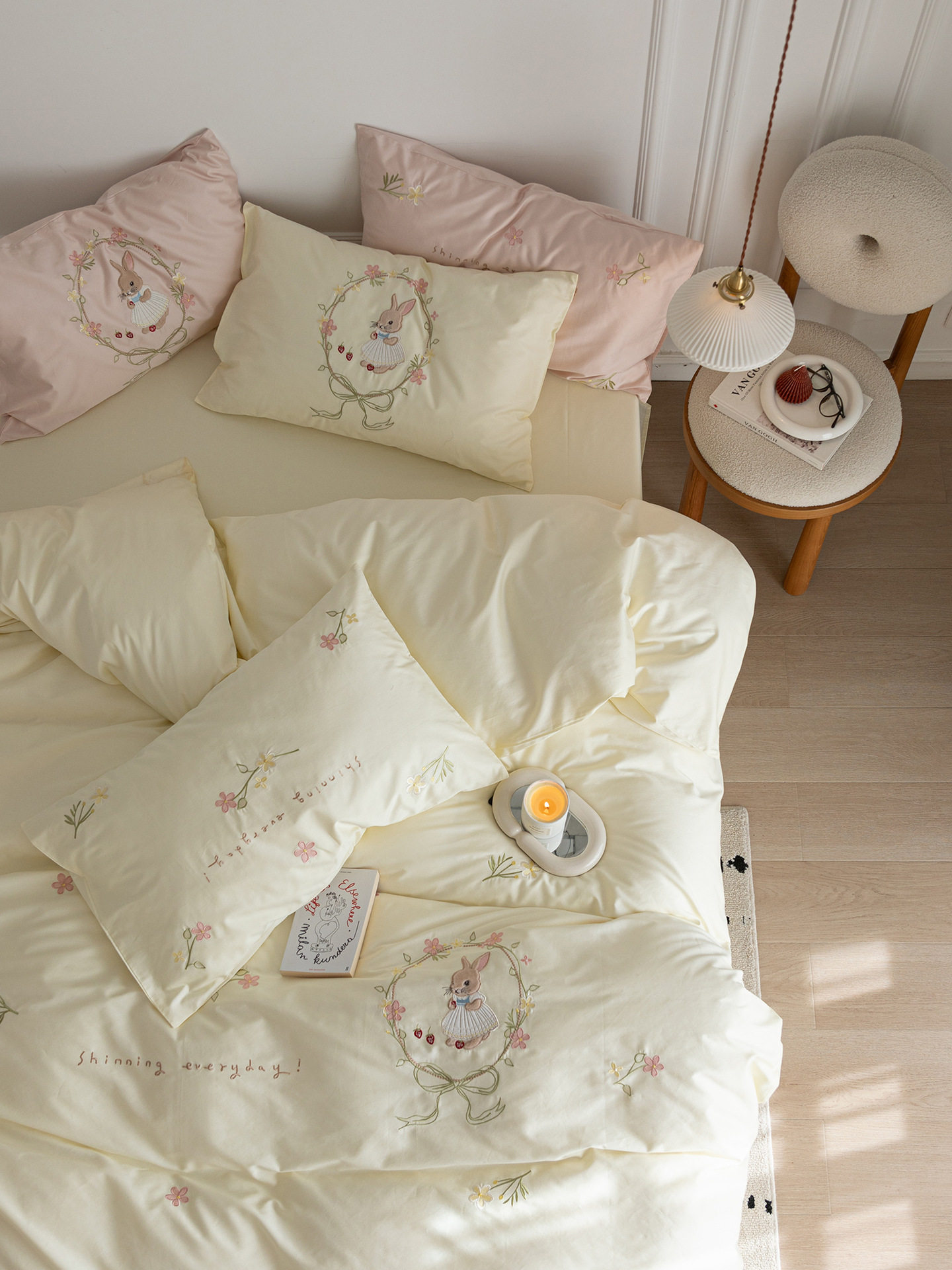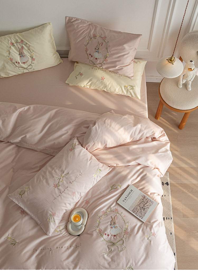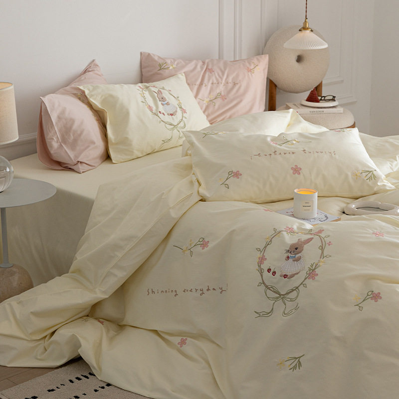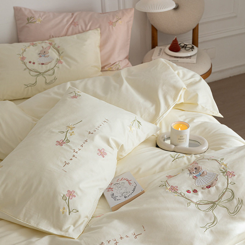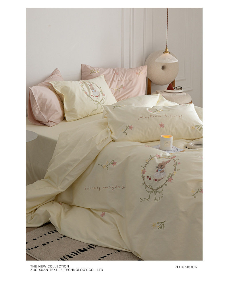 Back-To-School Girl's Heart 100-Count Long-Staple Cotton Embroider Three- or Four-Piece Set Cute Rabbit Cotton Bed Bed Sheets Quilt Cover Bedding 9