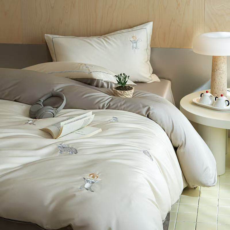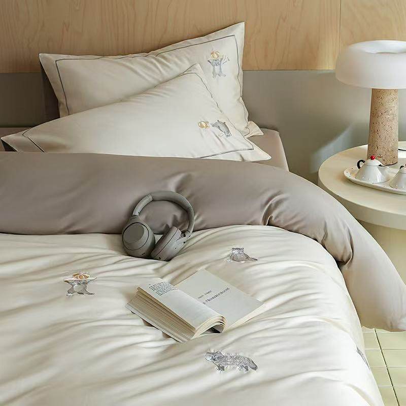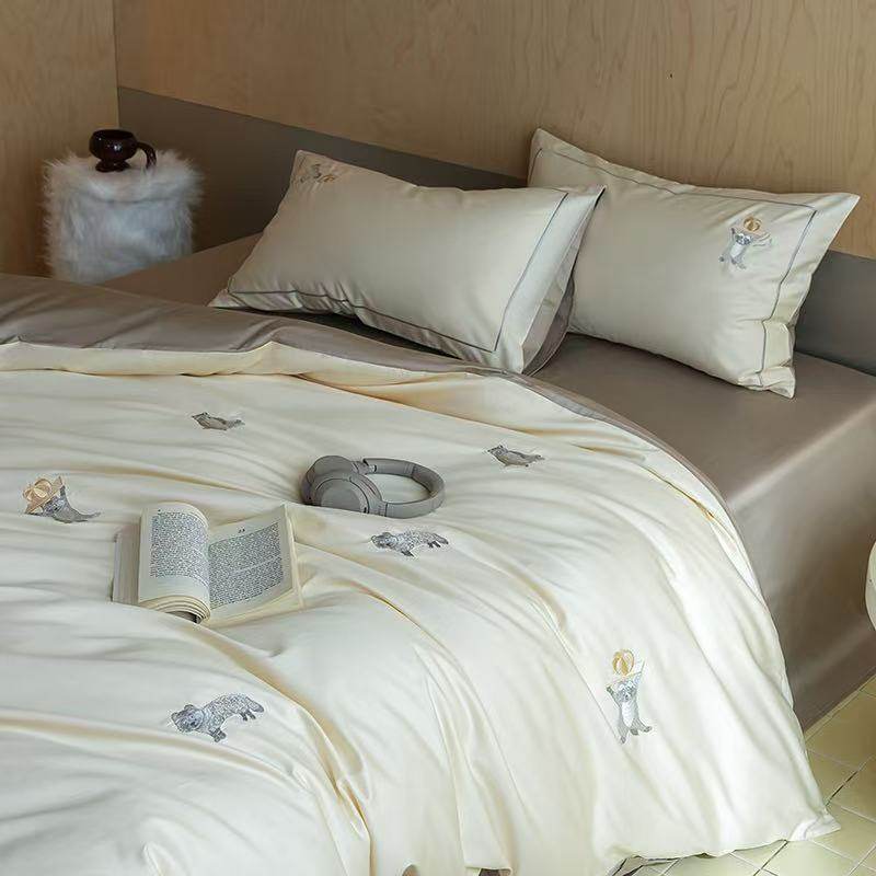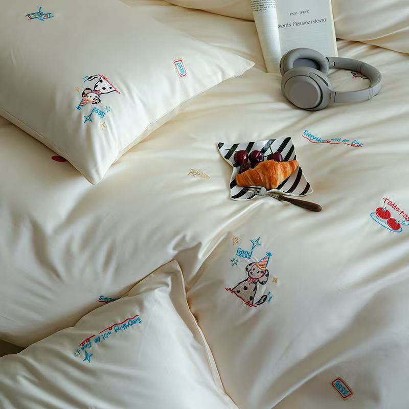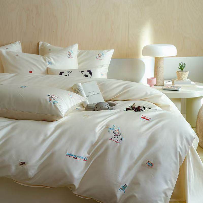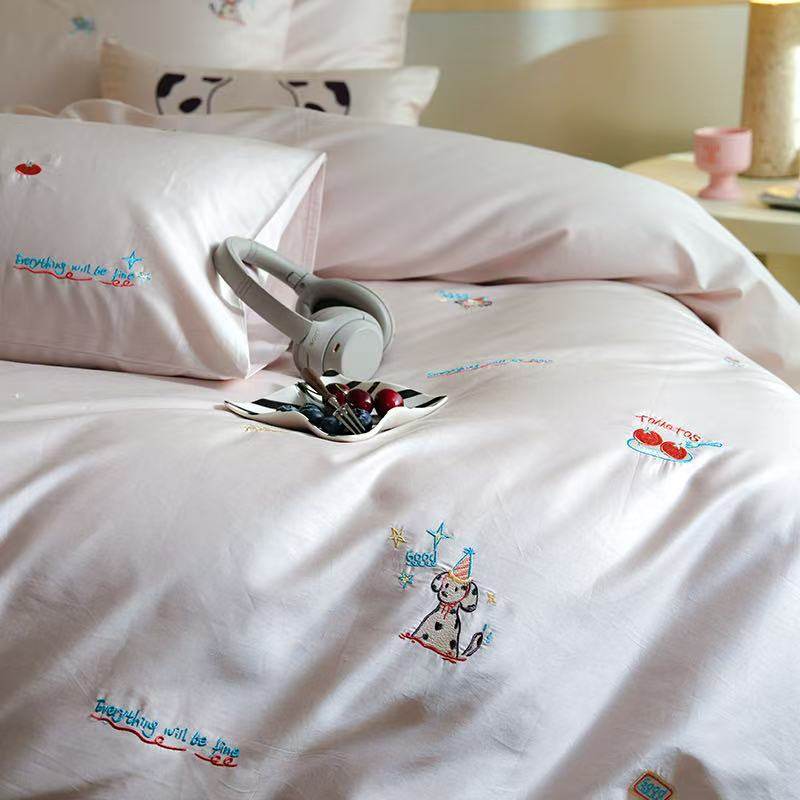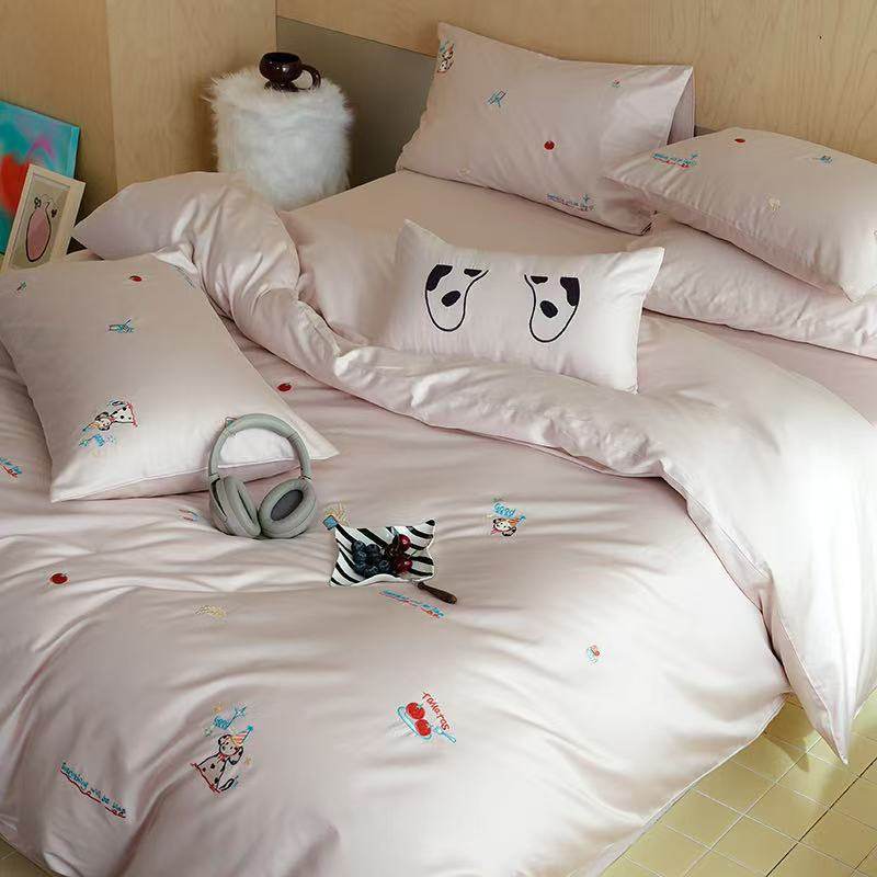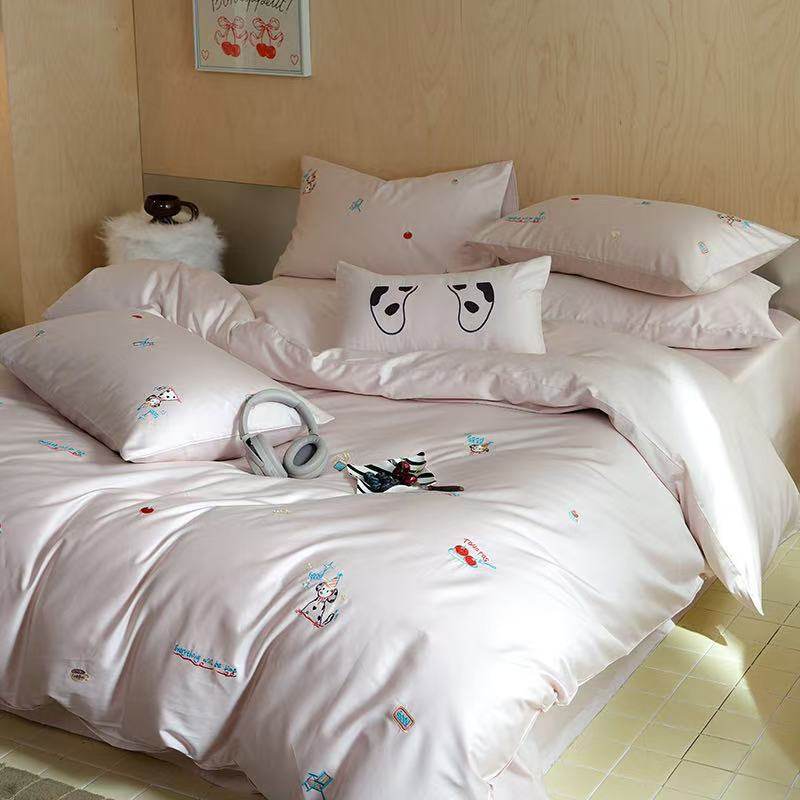 Back-To-School Girl's Heart 100-Count Long-Staple Cotton Embroider Three- or Four-Piece Set Cute Rabbit Cotton Bed Bed Sheets Quilt Cover Bedding 9