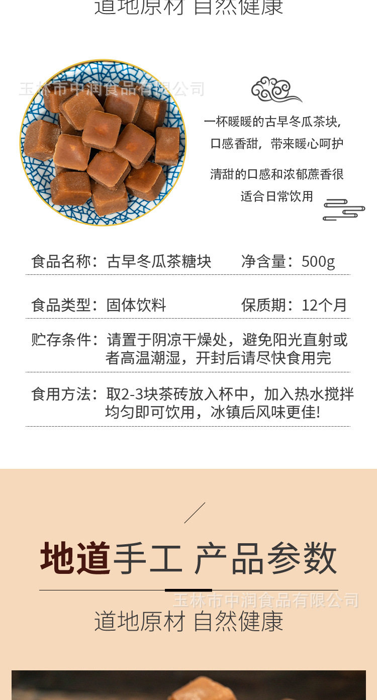 | Flavor | Ancient early winter melon tea sugar block |