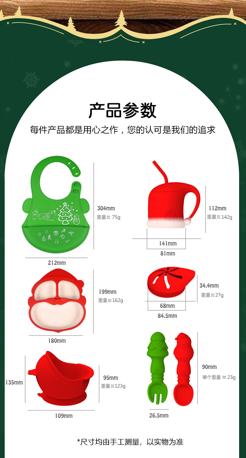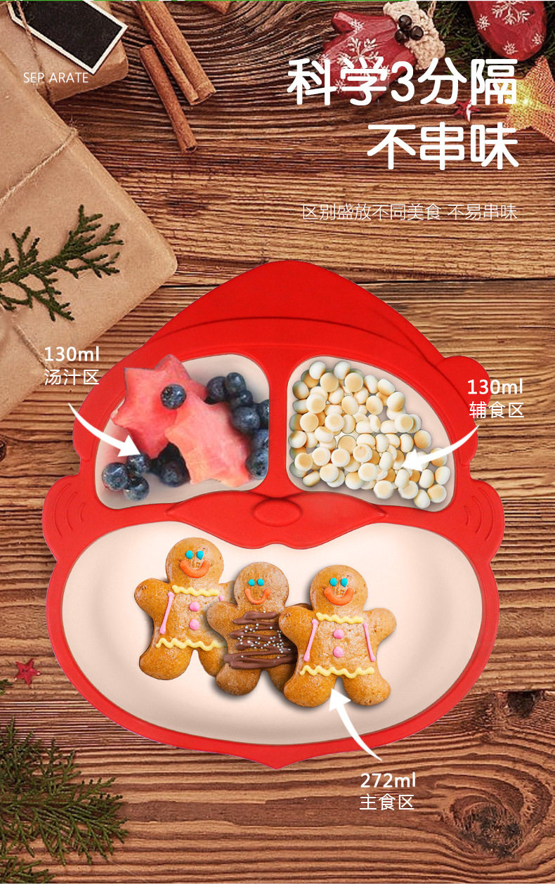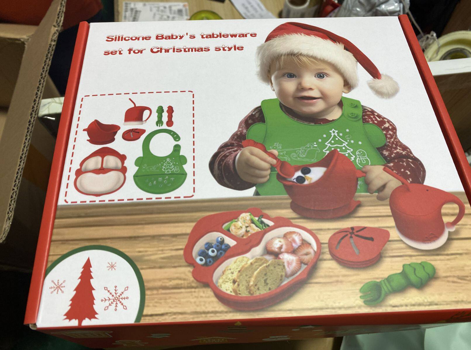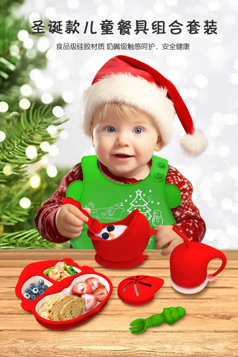 Cross-border Christmas Gifts Silicone Children's Dinner Plate Christmas Tableware Drinking Cup Fork Spoon Silicone Bowl Bib Dinner Plate