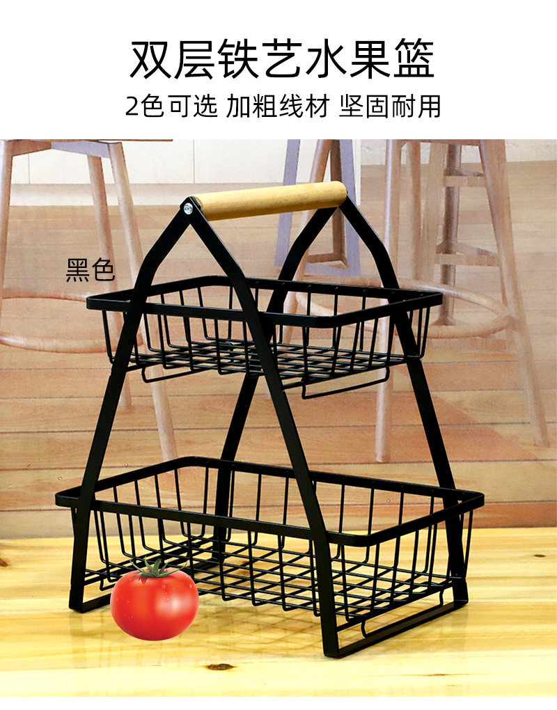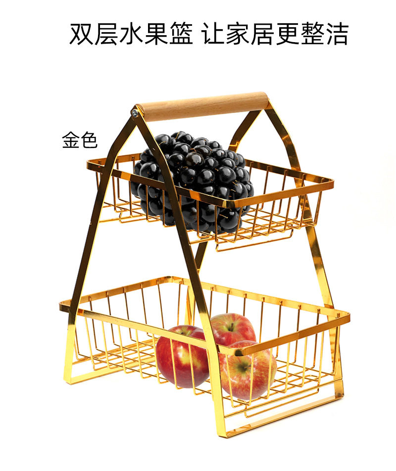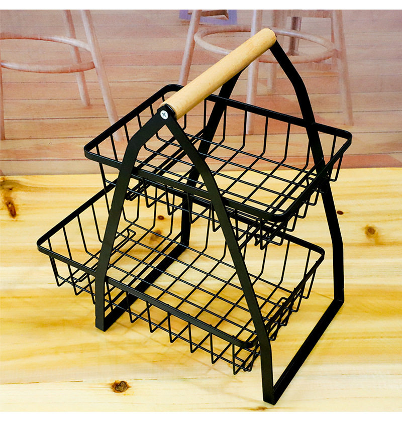 Spot Double-Layer Basket Satchel Iron Fruit Blue Living Room Kitchen Bread Storage Storage Rack Storage Basket