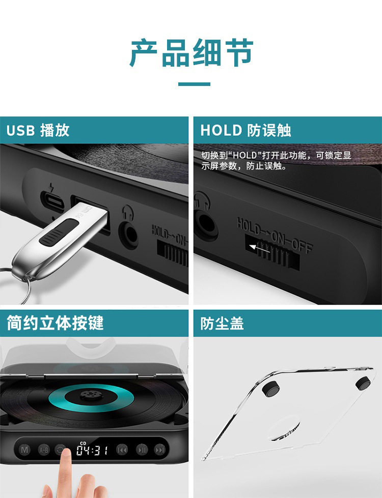 New Portable Audiophile Cd Player Student English Listening Repeater Cd Disc Player Light and Thin Walkman