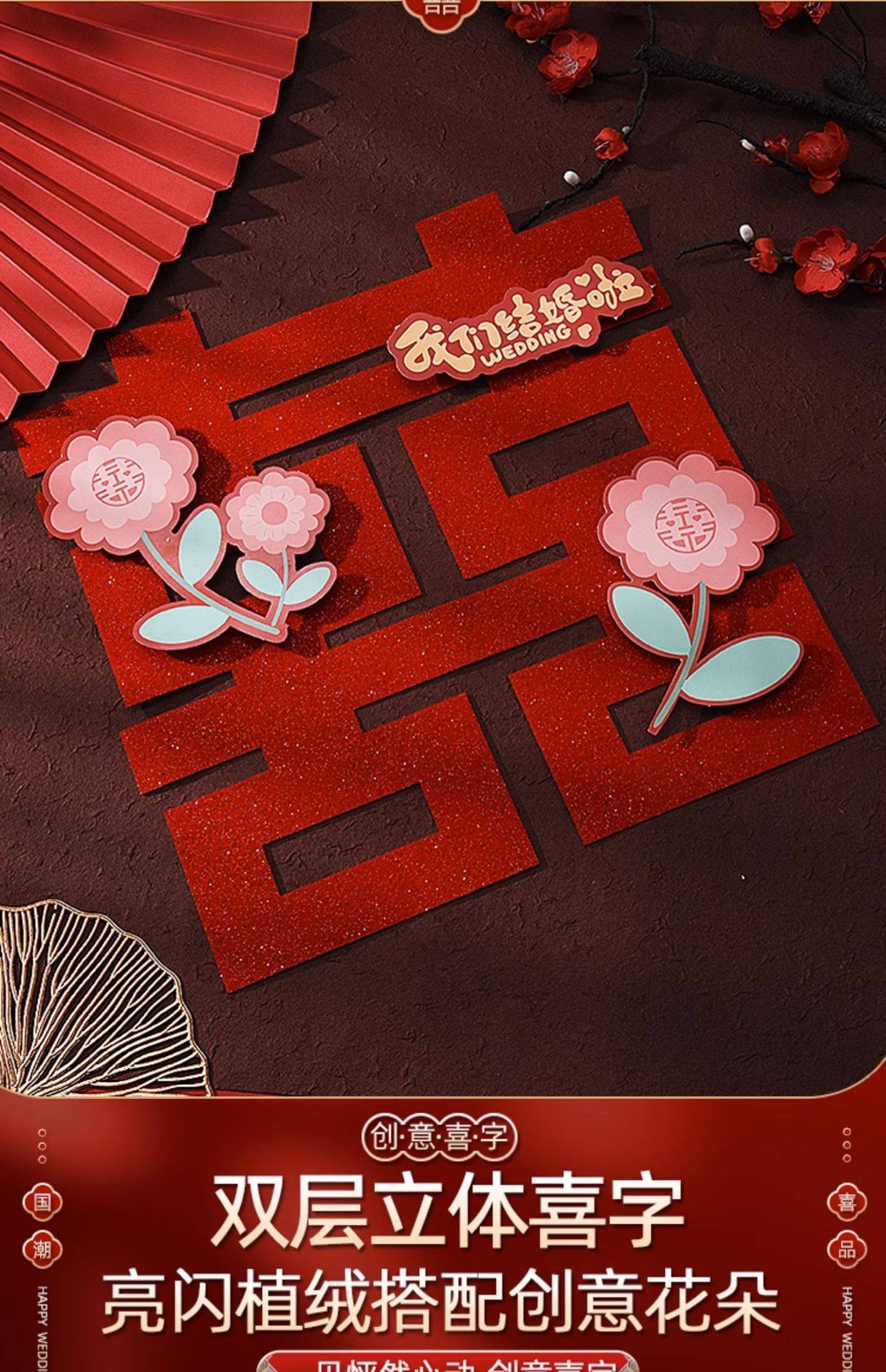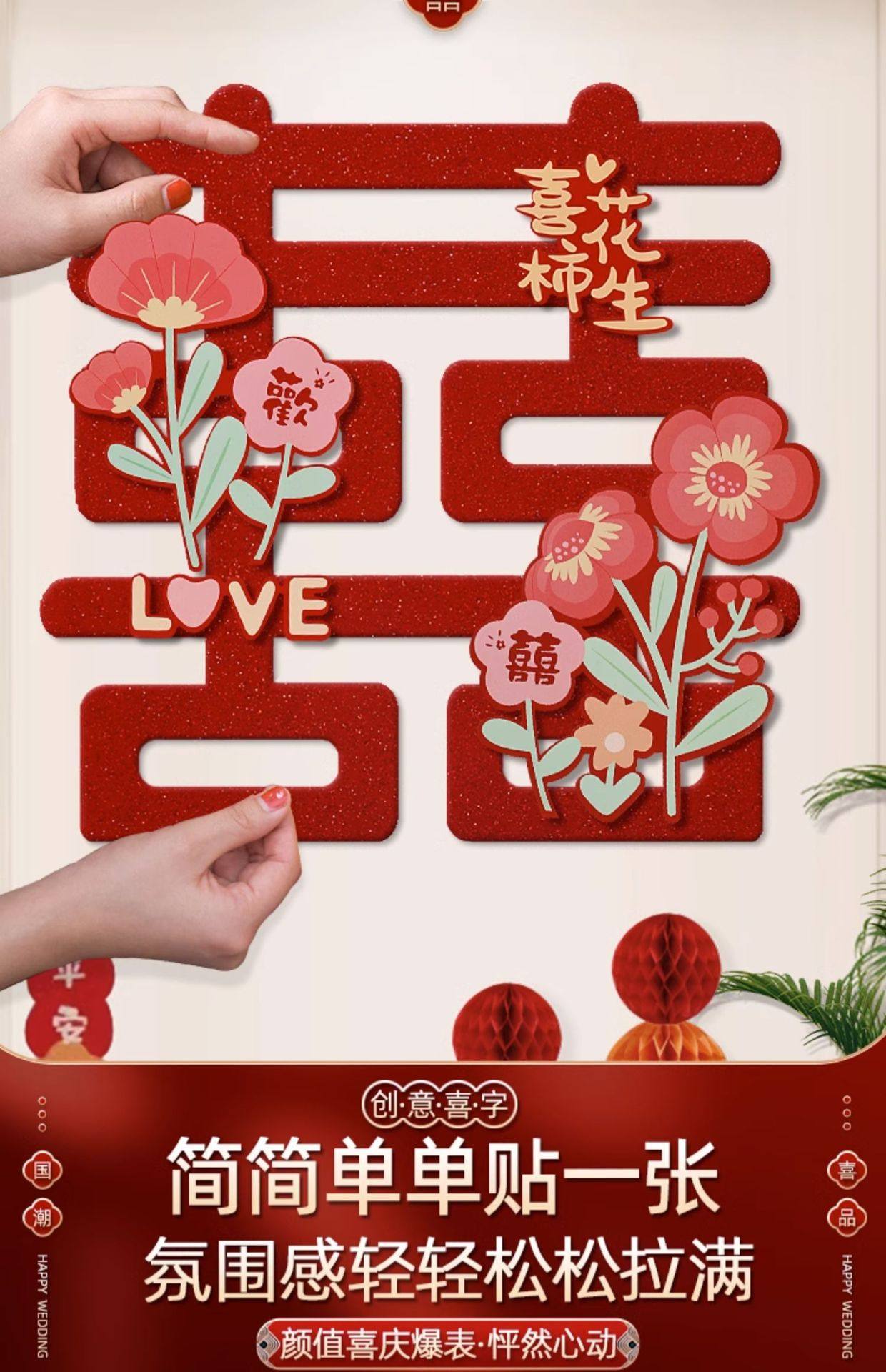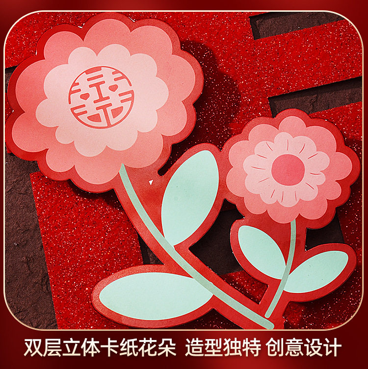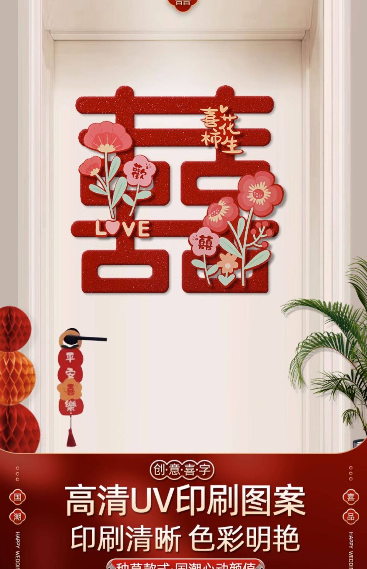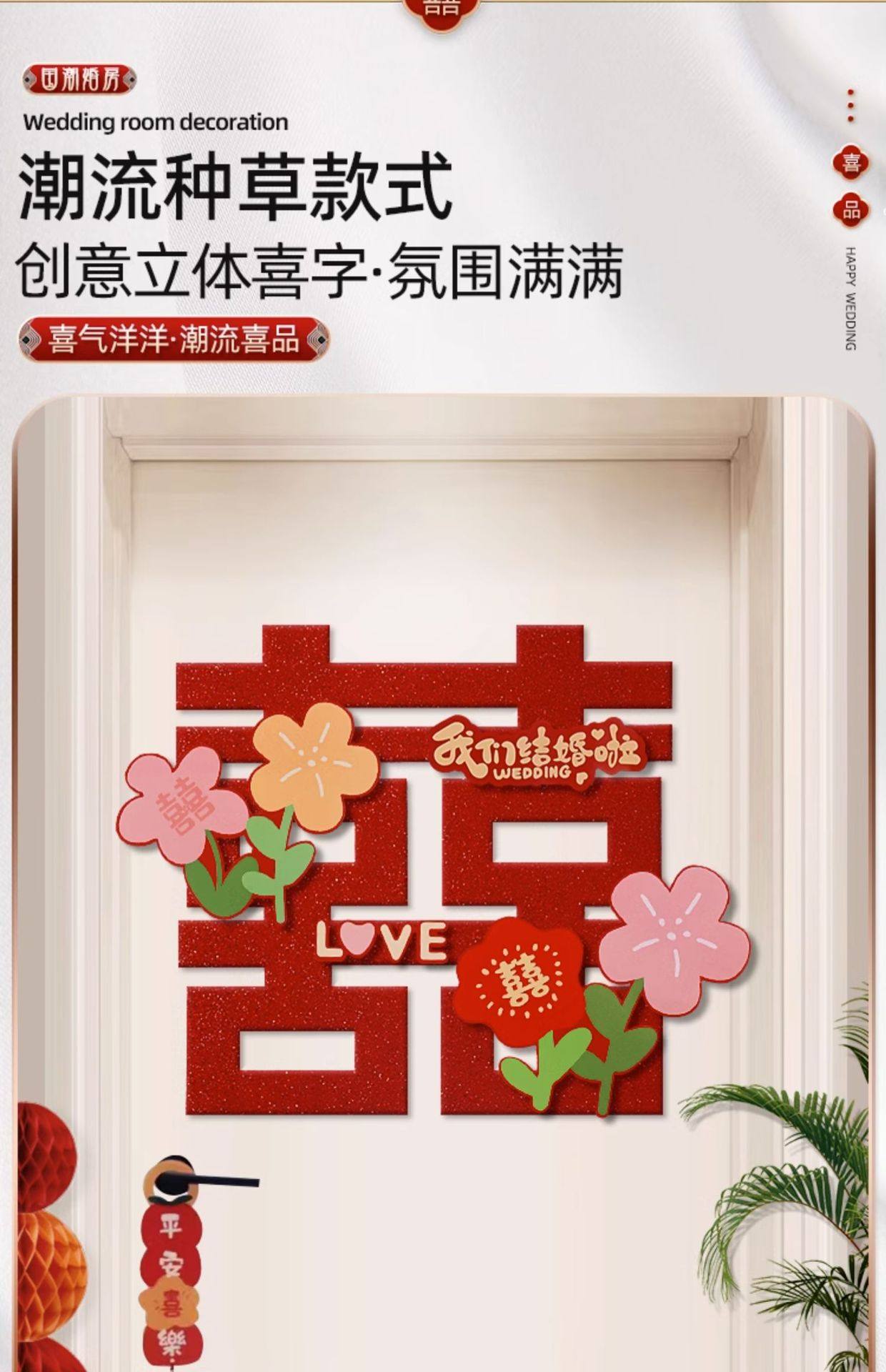 Flower happy word wedding room bedroom door decoration Xiaohongshu creative new 2025 entrance door wedding special door