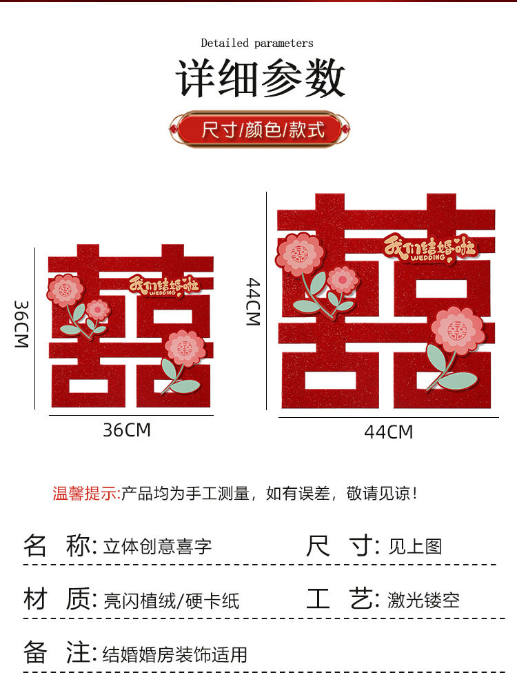 | Specifications | Flower Xi character A [Pearl cloth material]],Flower Xi character B [Pearl cloth material]],Flower Xi character C [Pearl cloth material]] |