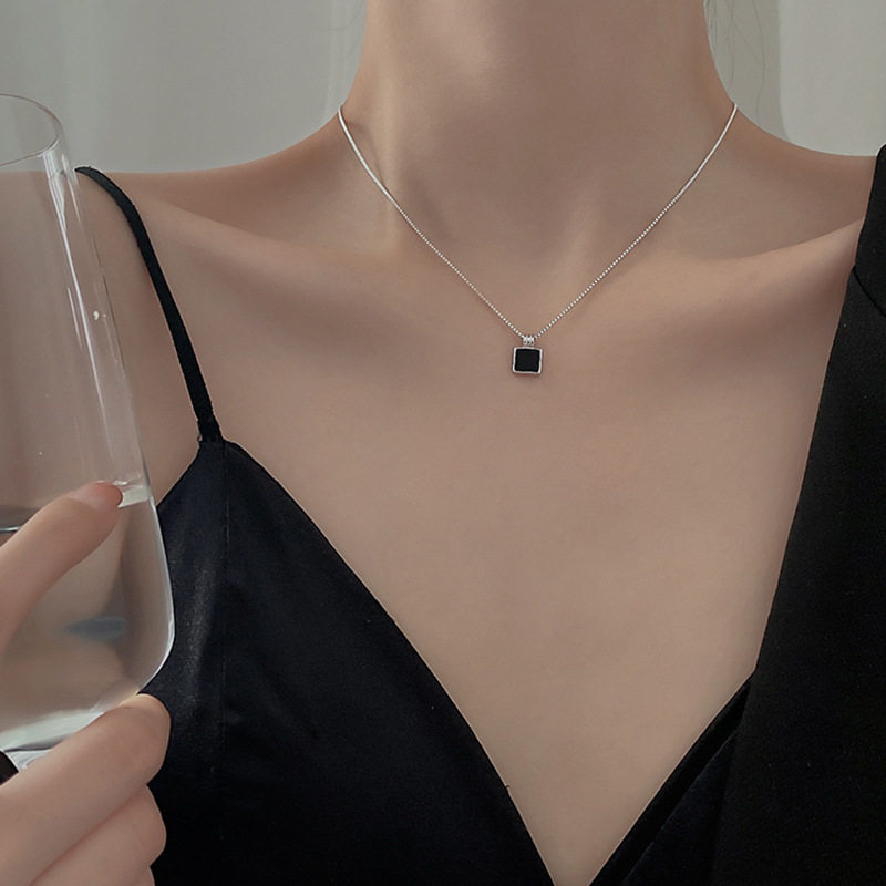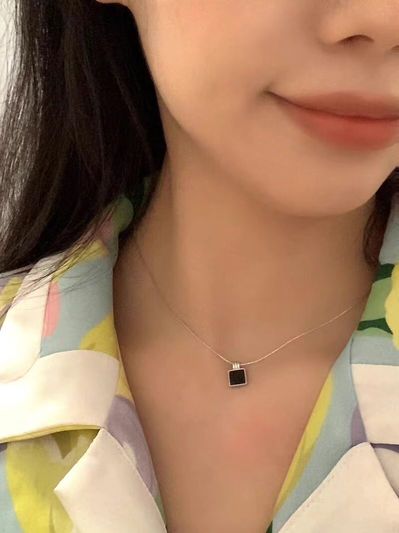 Black Square necklace for women 2023 Summer new retro light luxury geometric clavicle chain ins style wholesale