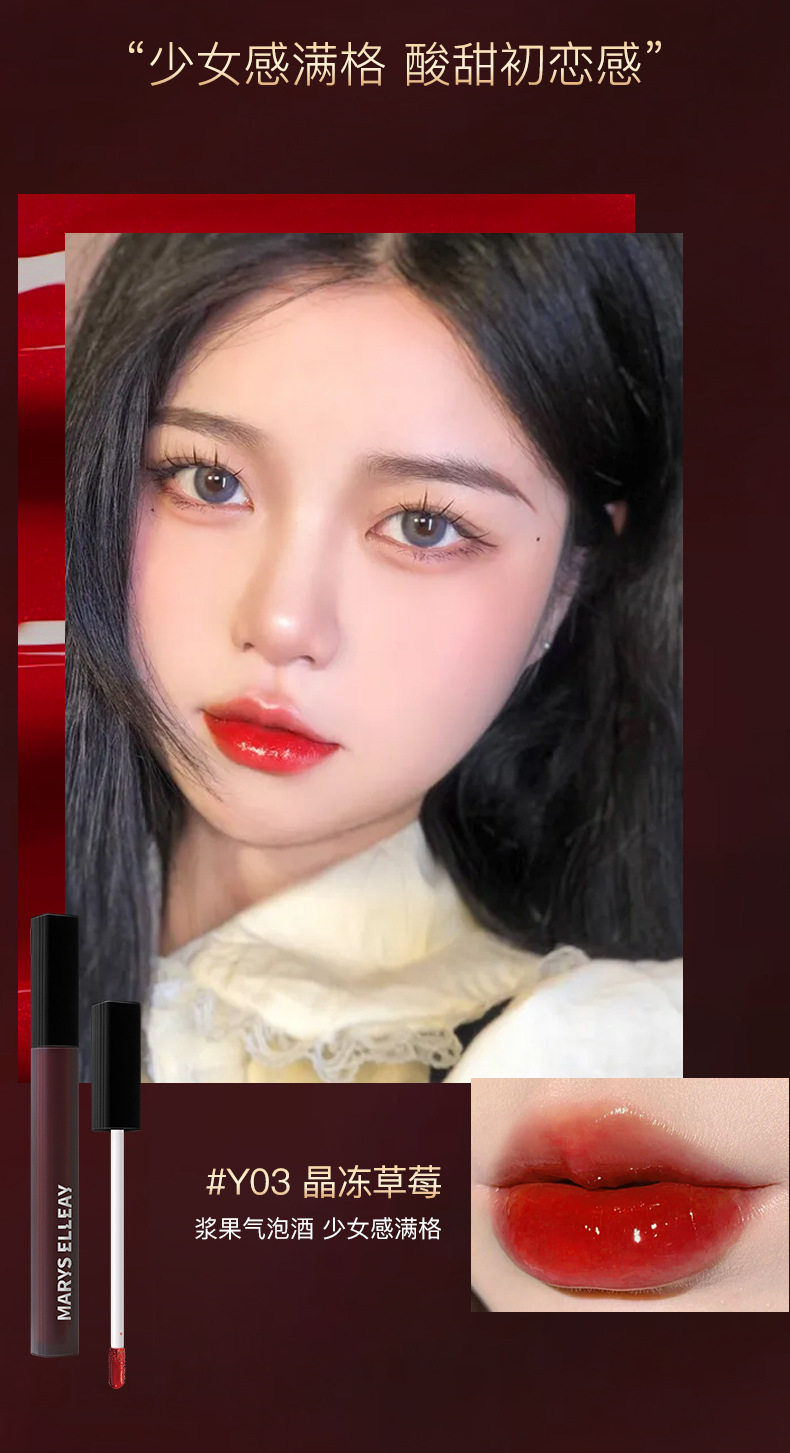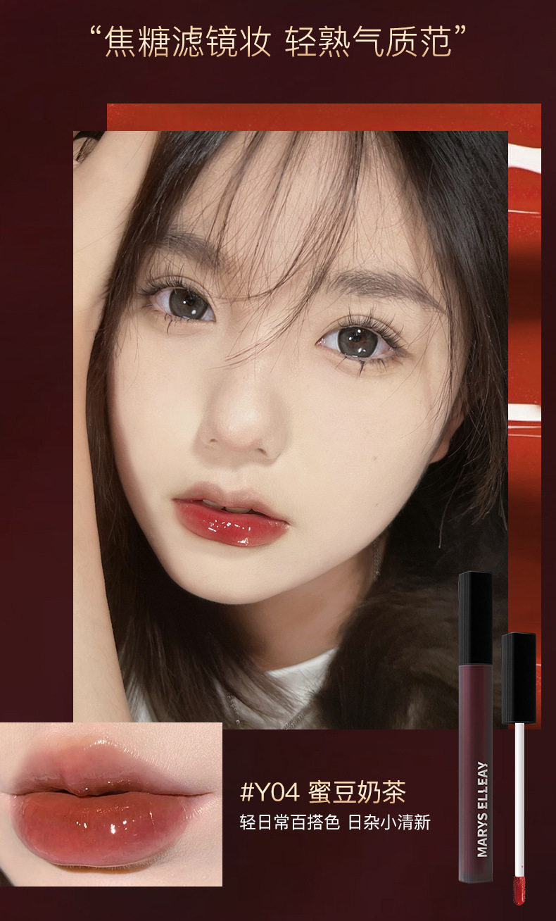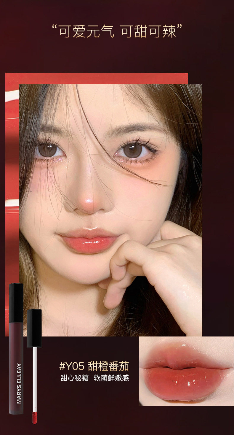 Mary Yili black square tube lip glaze non-stick cup non-fading mirror Water Light lasting white glass lip gloss
