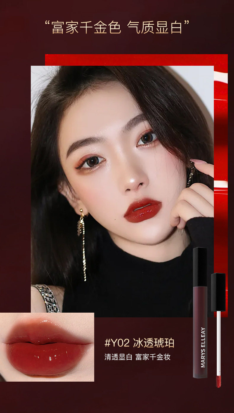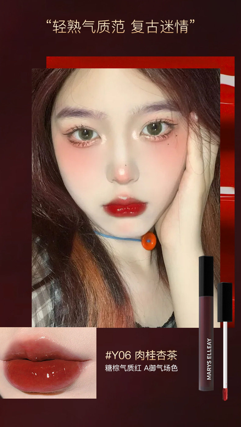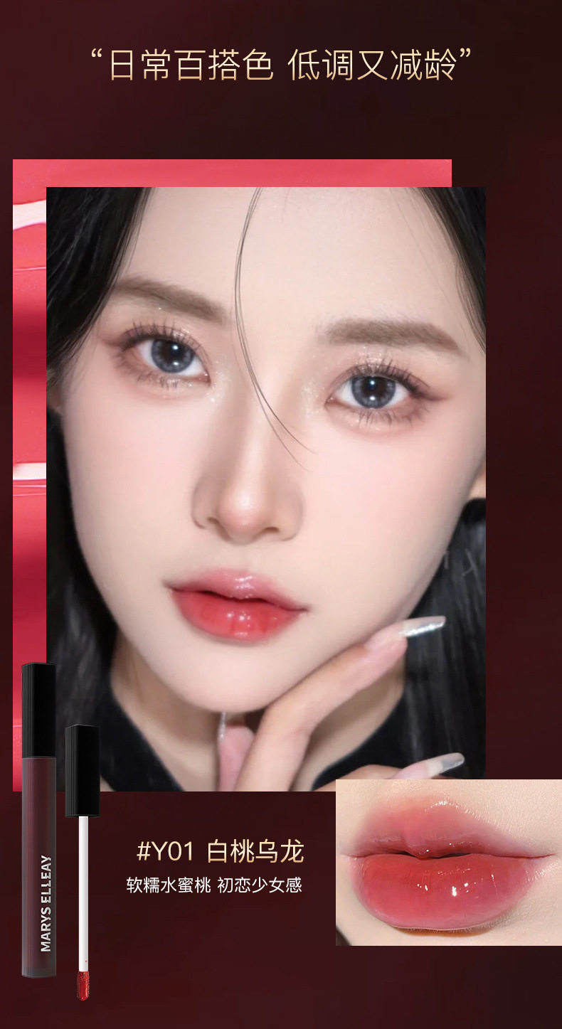 Mary Yili black square tube lip glaze non-stick cup non-fading mirror Water Light lasting white glass lip gloss